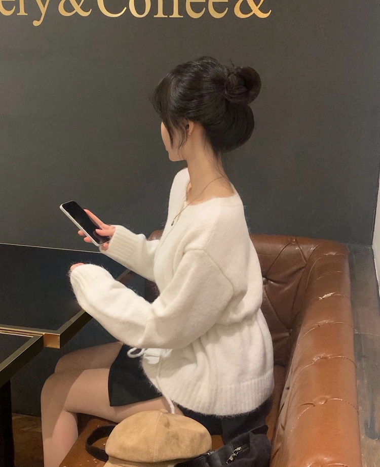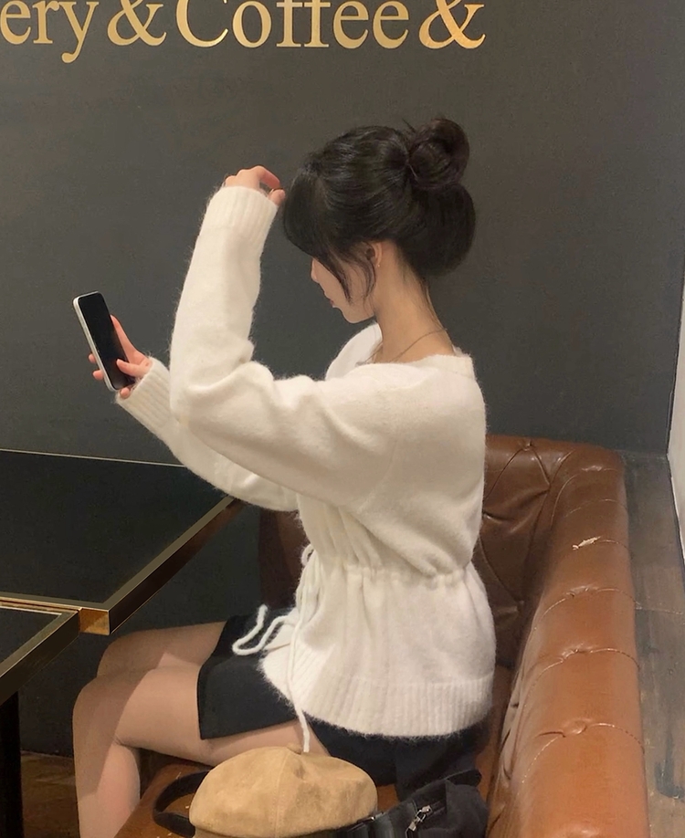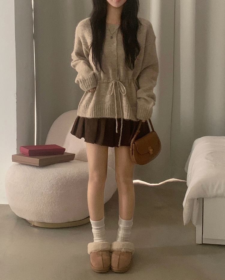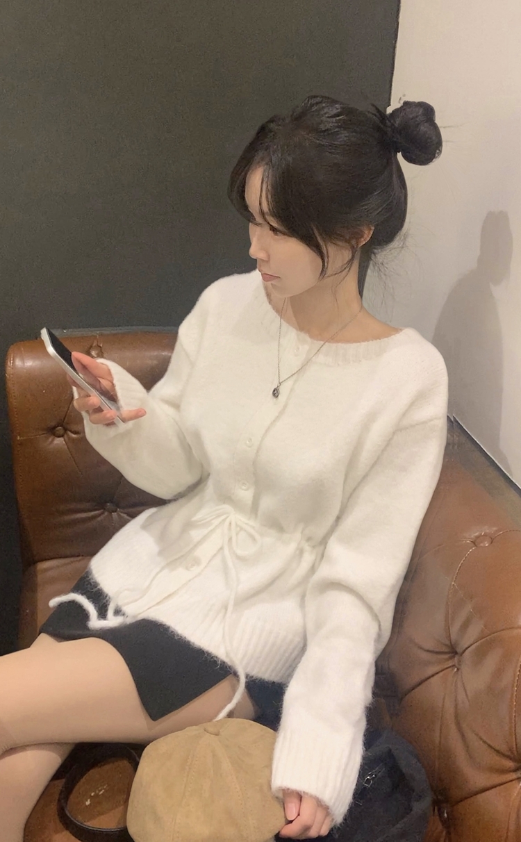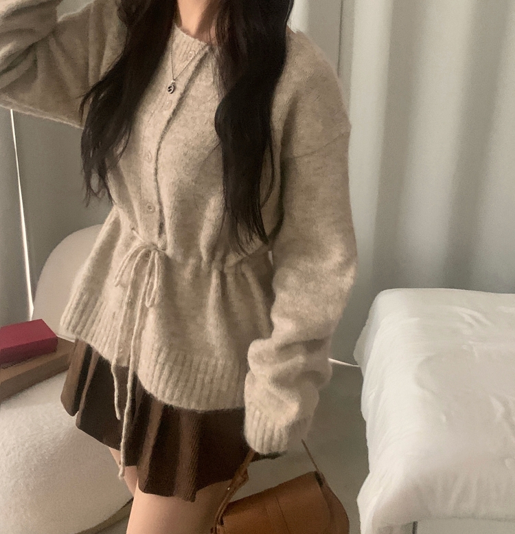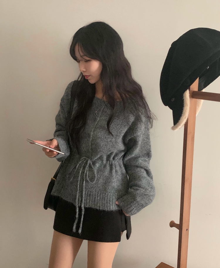 SGD30006 메리 리본 울 보트넥 스트링 루즈핏 니트가디건