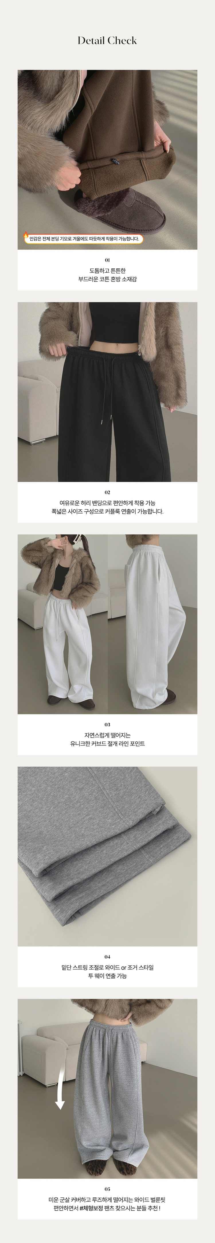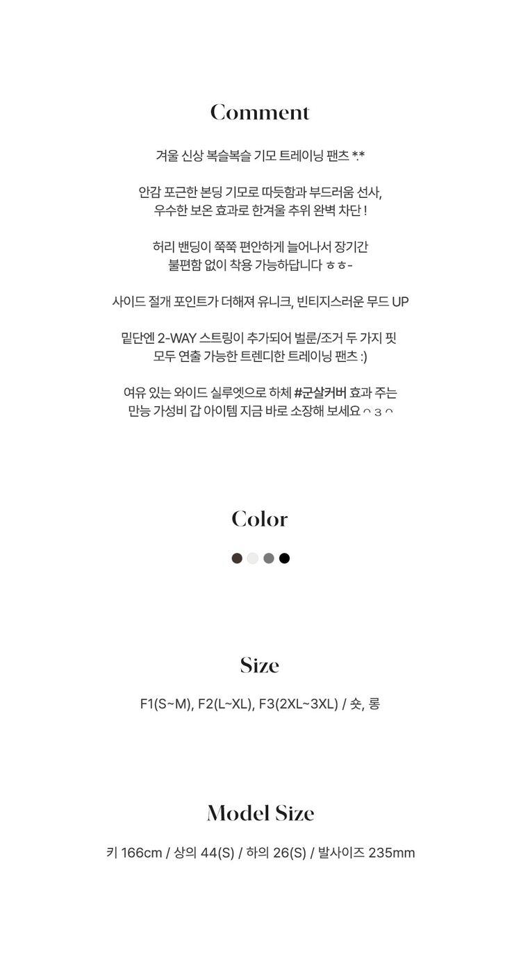 SPS37617 3XL투웨이 도톰 기모 절개 조거 통 와이드 밴딩 팬츠