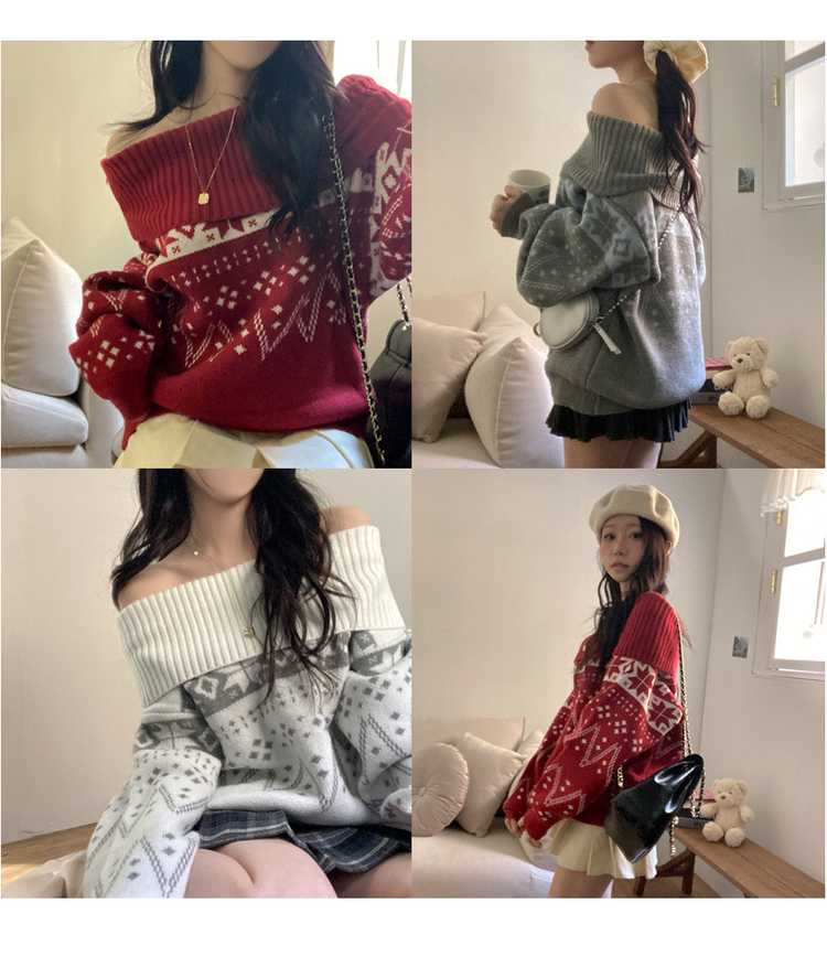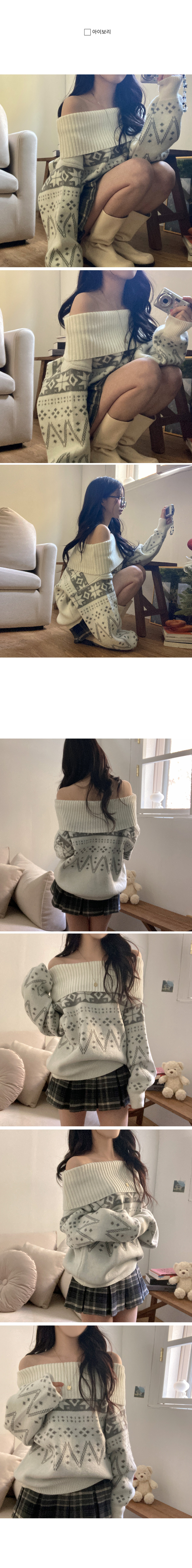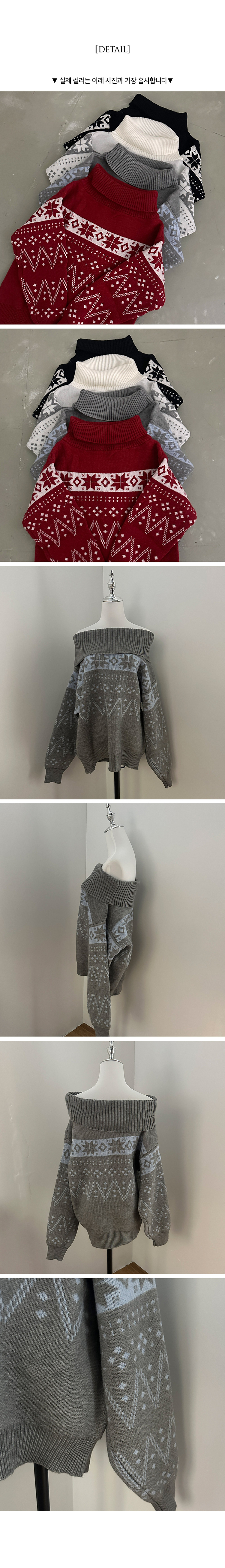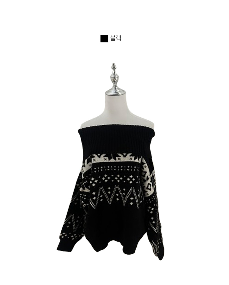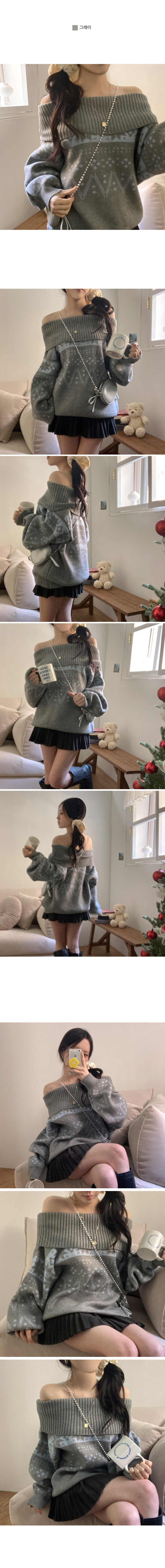 SNT33898 스노우 플레이크 눈꽃 벌룬 오프숄더 니트