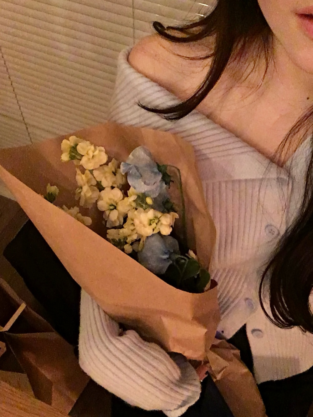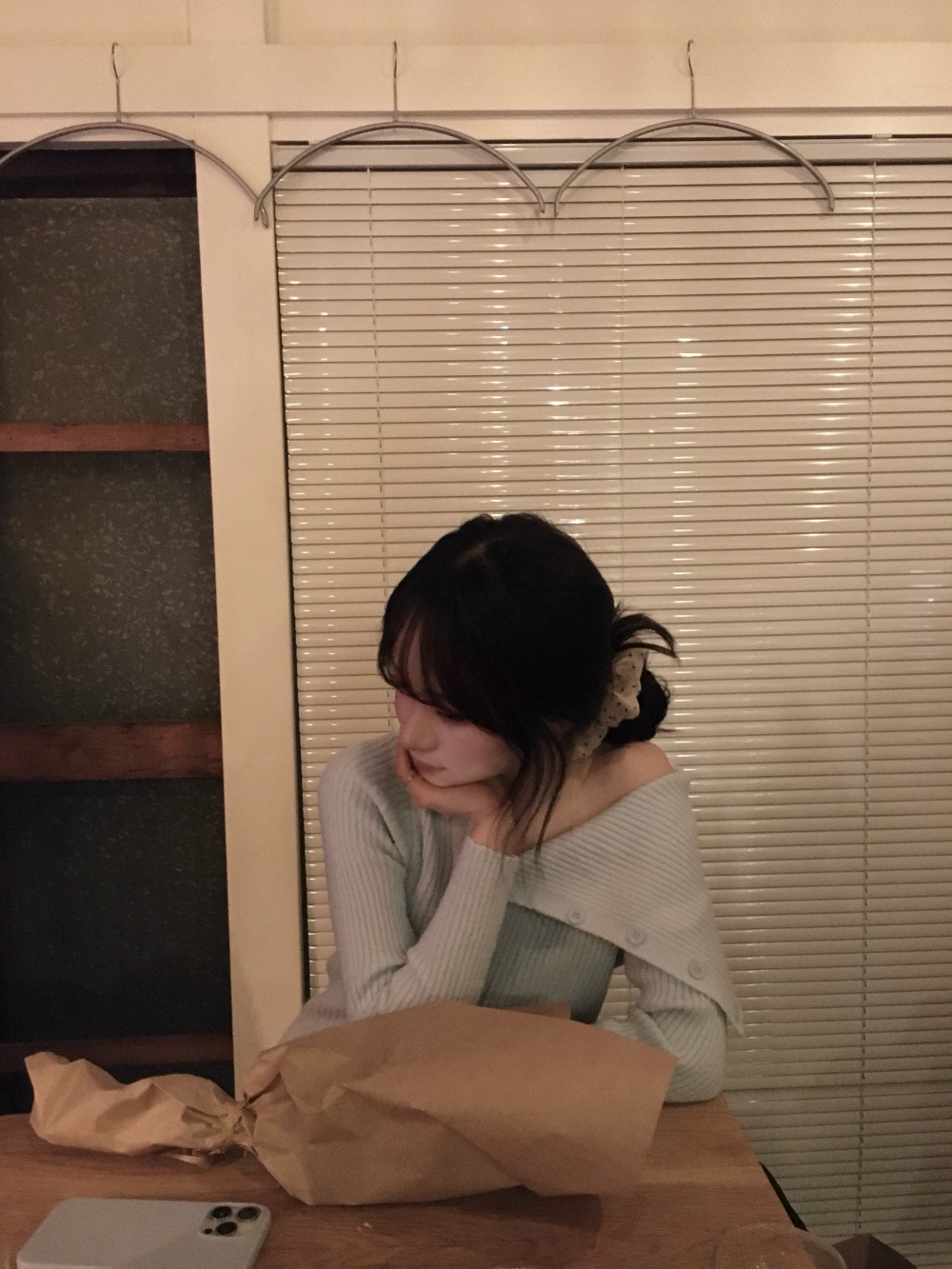SNT33824 오프숄더 언발 골지 니트