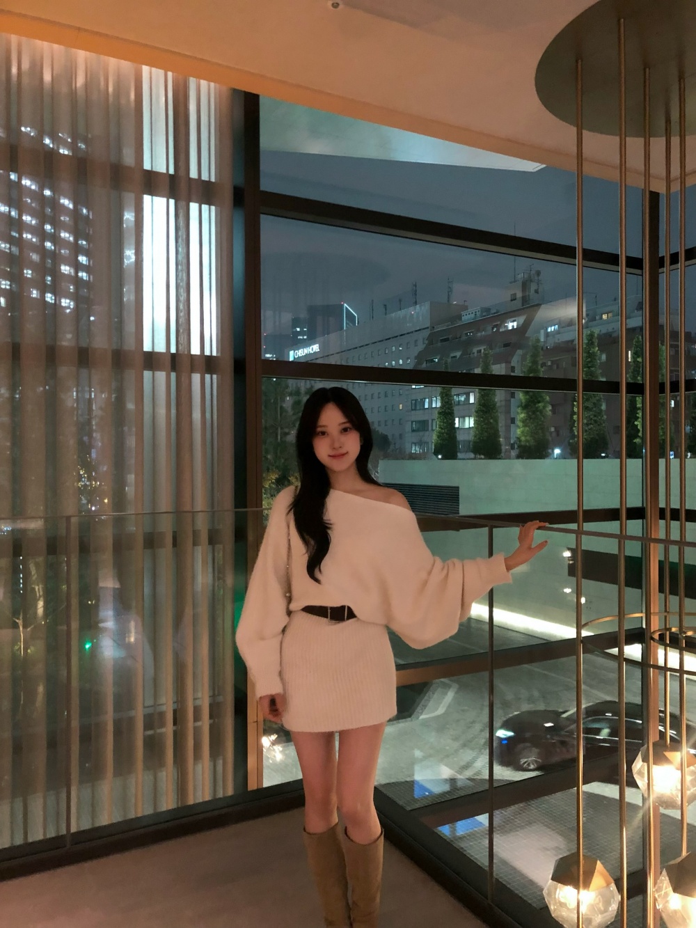 SOP30402 숄더 니트 미니 니트 원피스 벨트포함