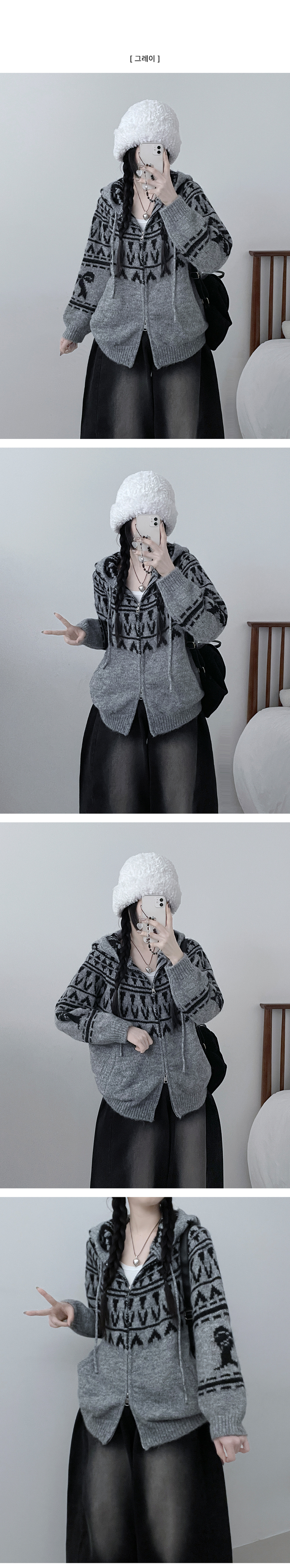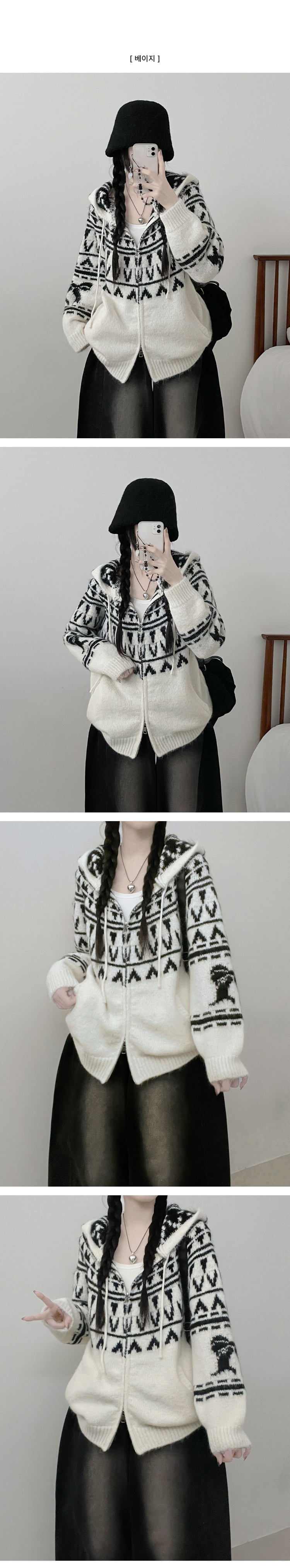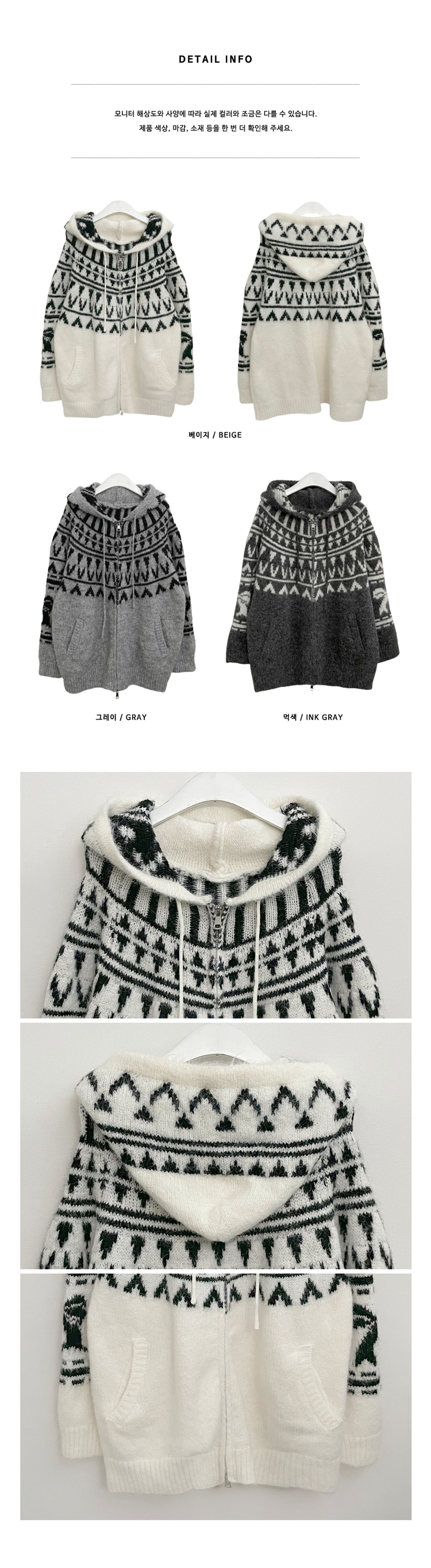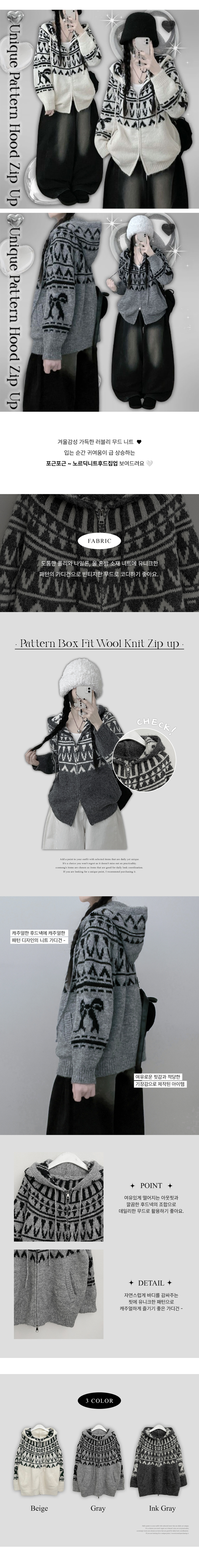 SJP19334 폴딩브이노르딕패턴투웨이박스핏울니트후드집업