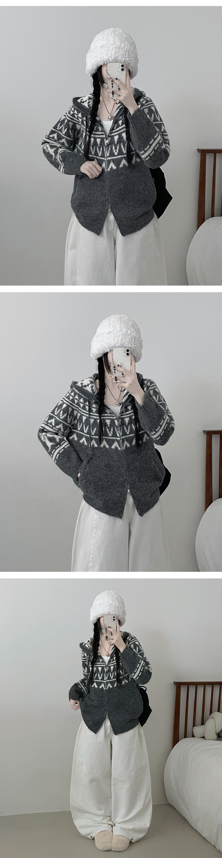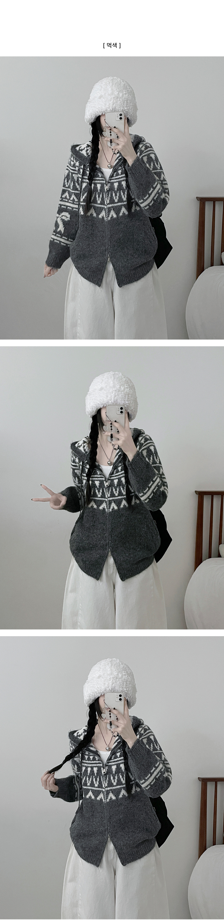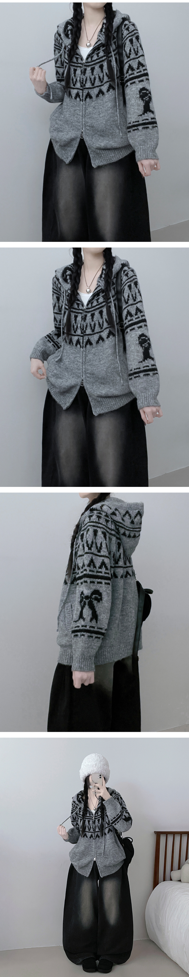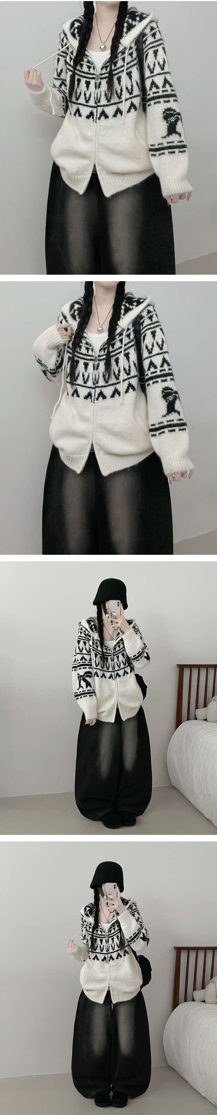 SJP19334 폴딩브이노르딕패턴투웨이박스핏울니트후드집업