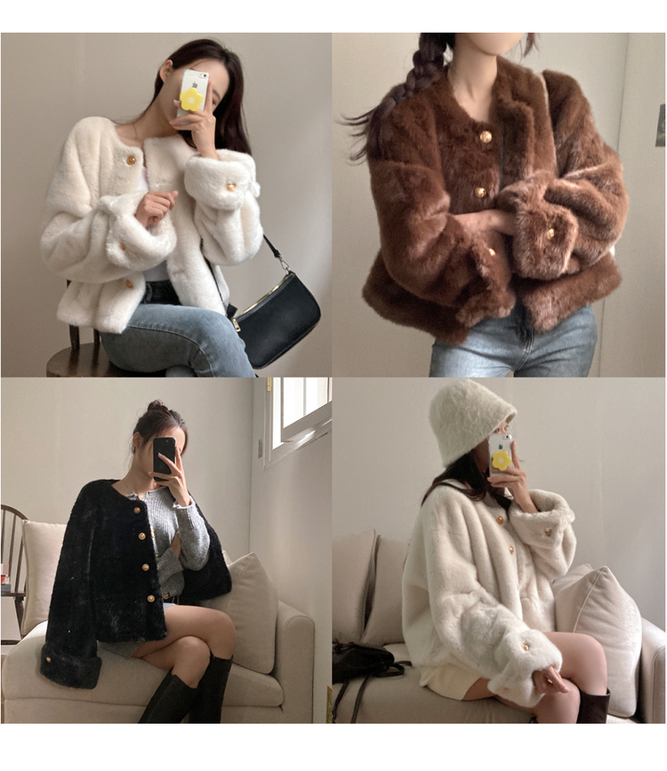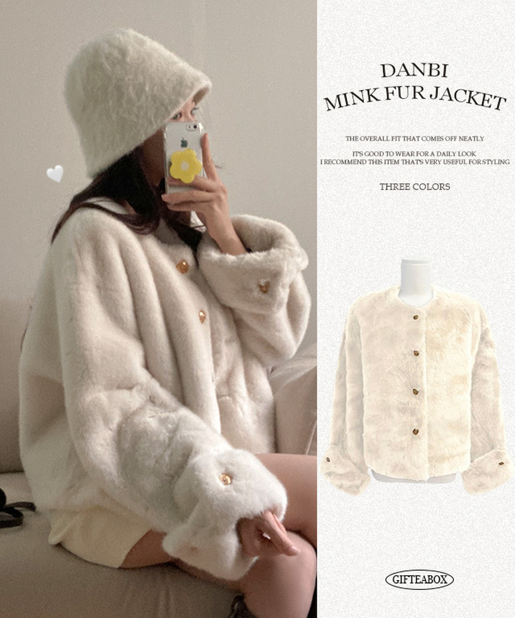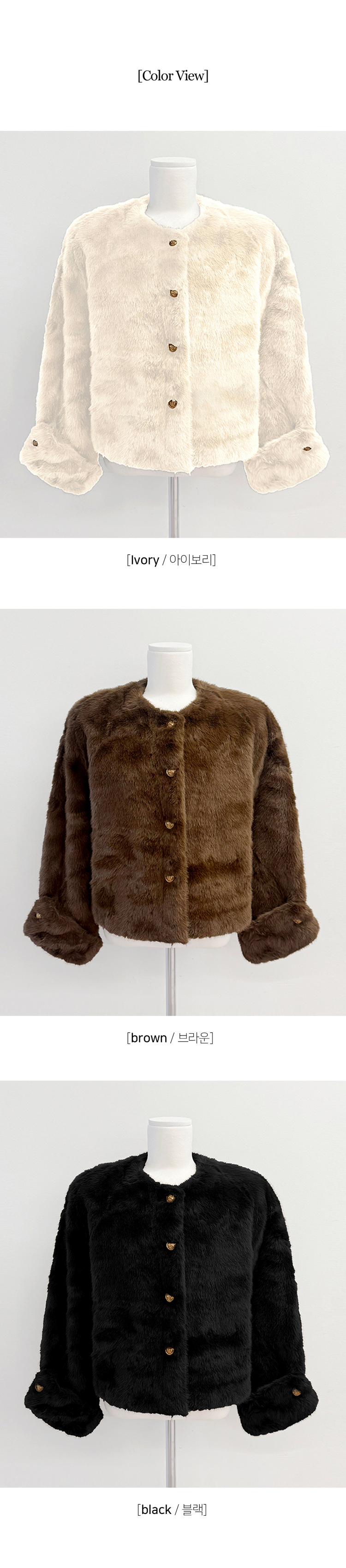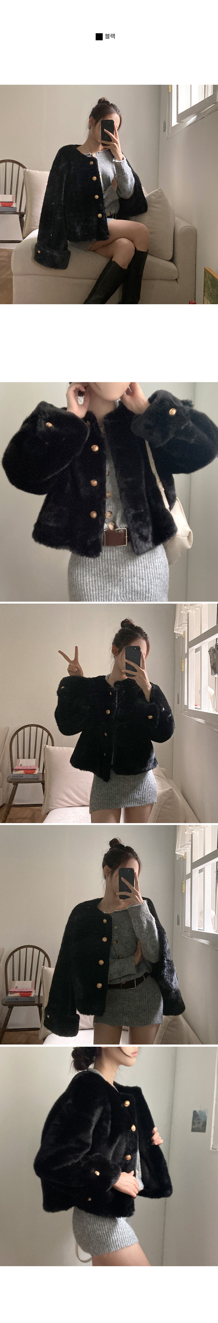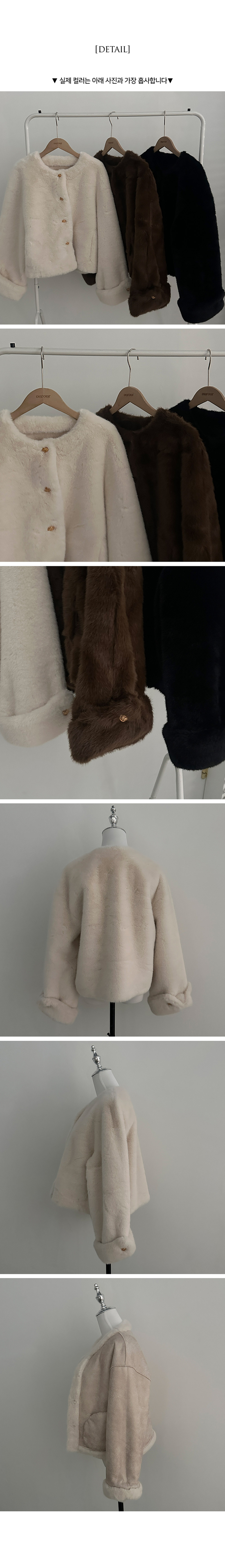 SJK15073 단비 페이크 퍼 금장 밍크 노카라 자켓