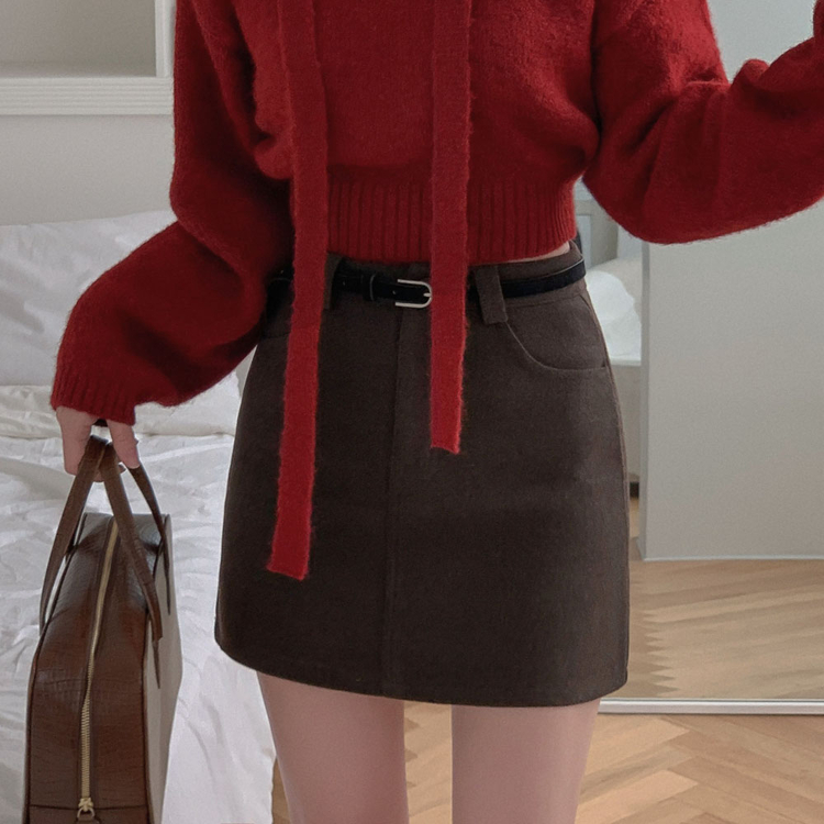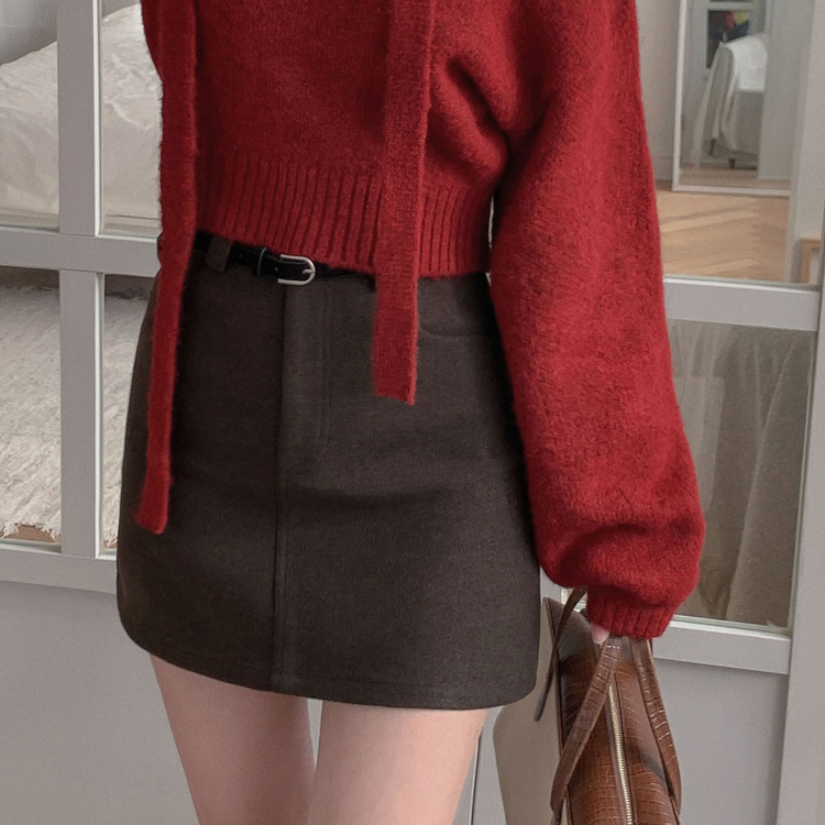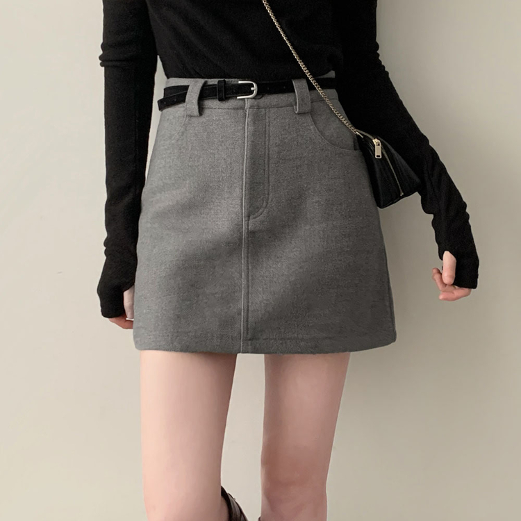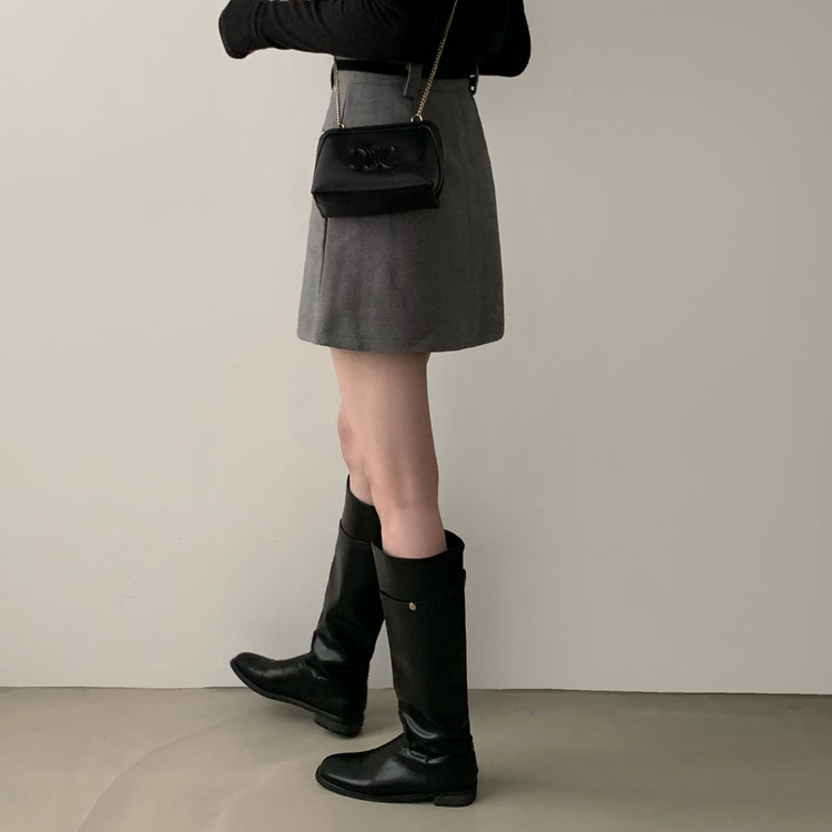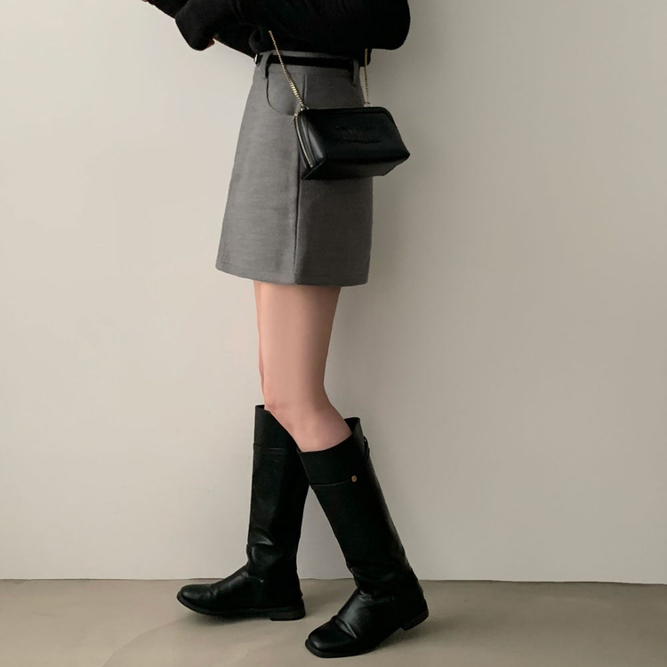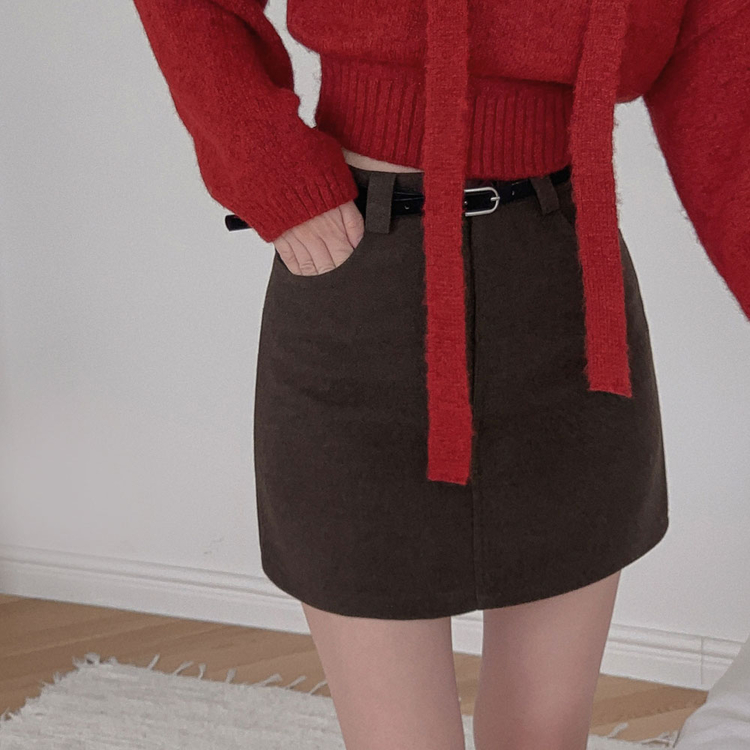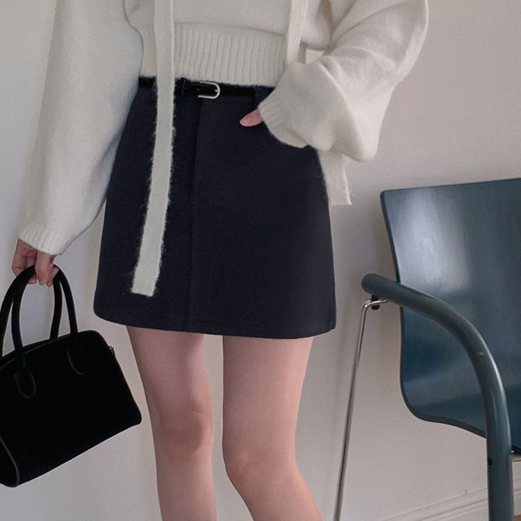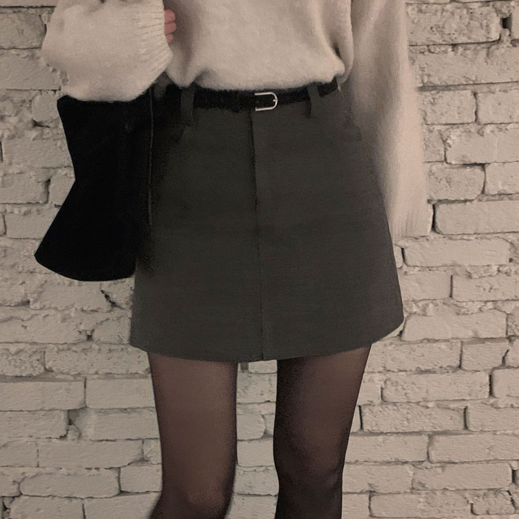 SSK25290 겨울내내 입어질 기본스커트데몬 모직 하이웨이스트 미니 기본 스커트