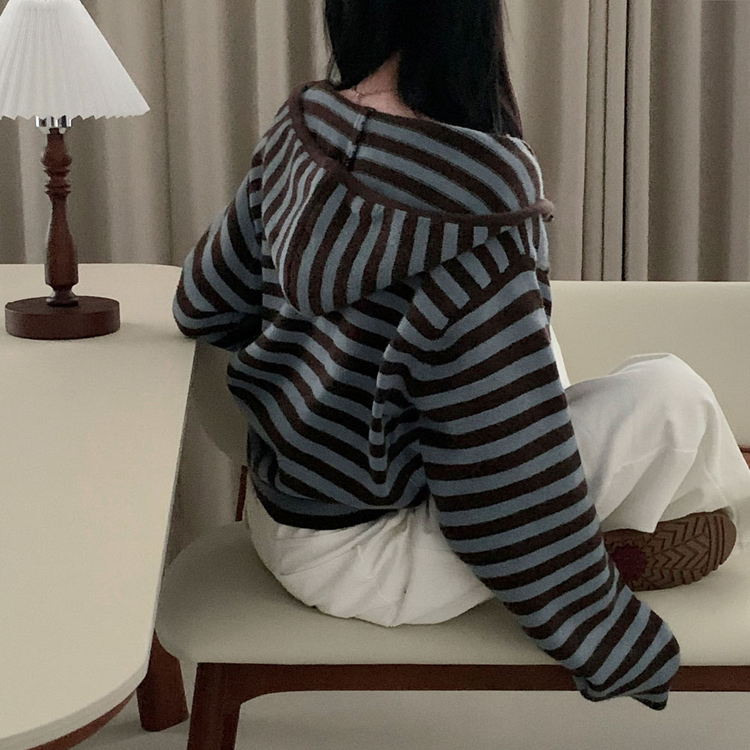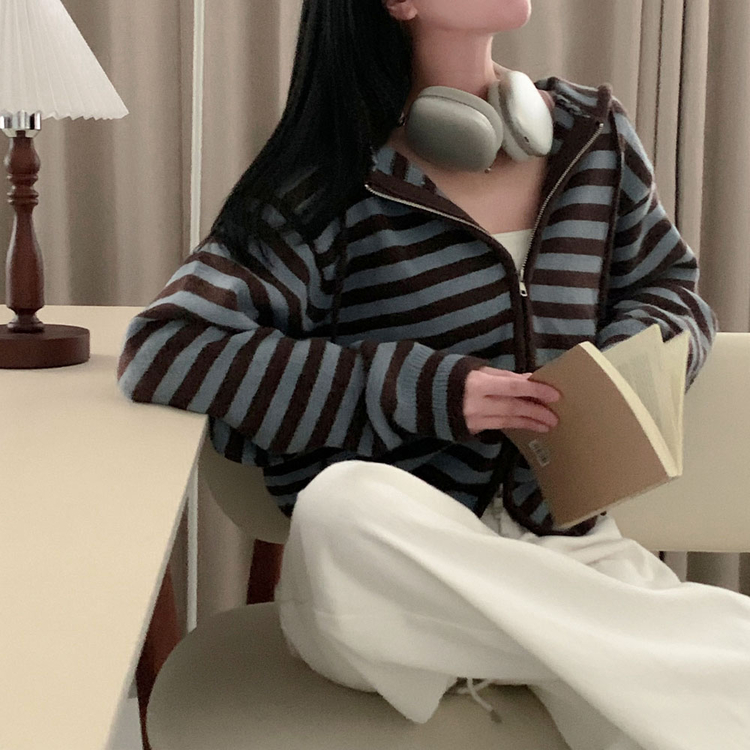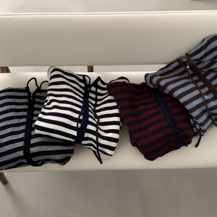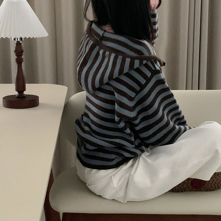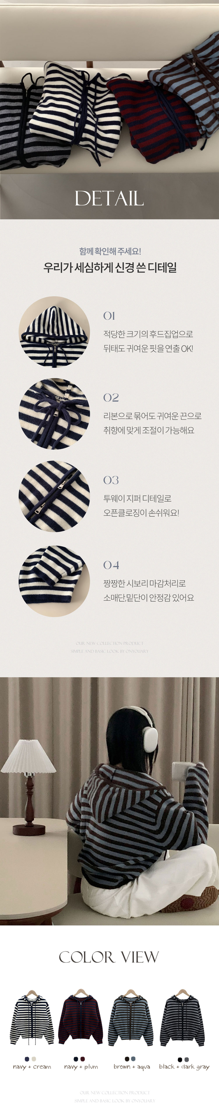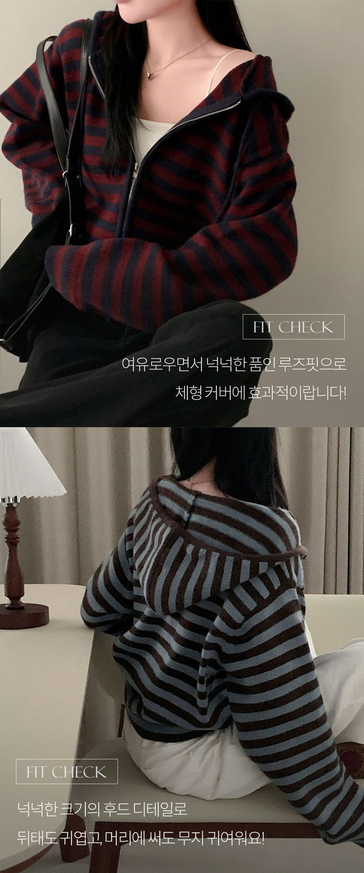SJP19423 다이제 단가라 스트라이프 니트 후드집업 루즈핏 가디건