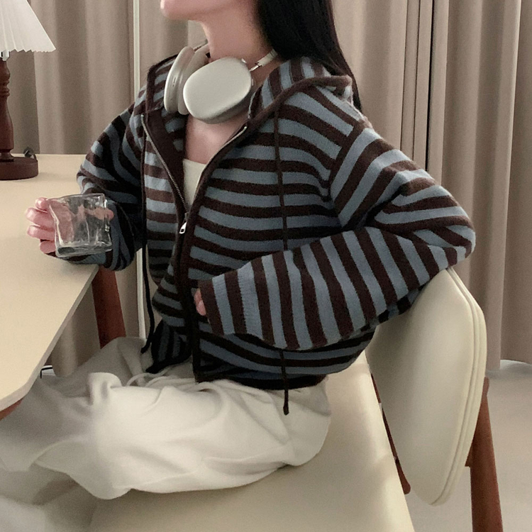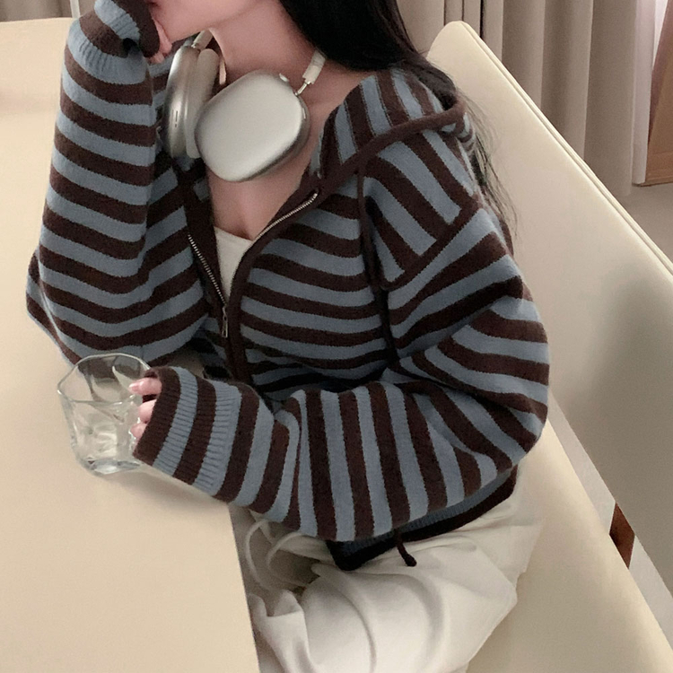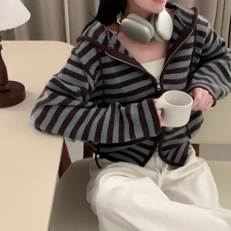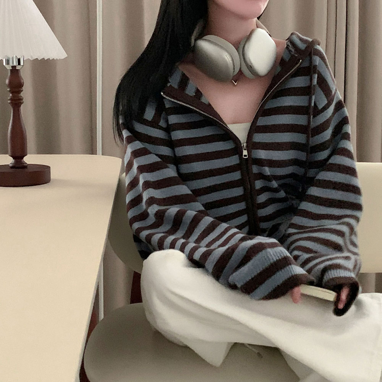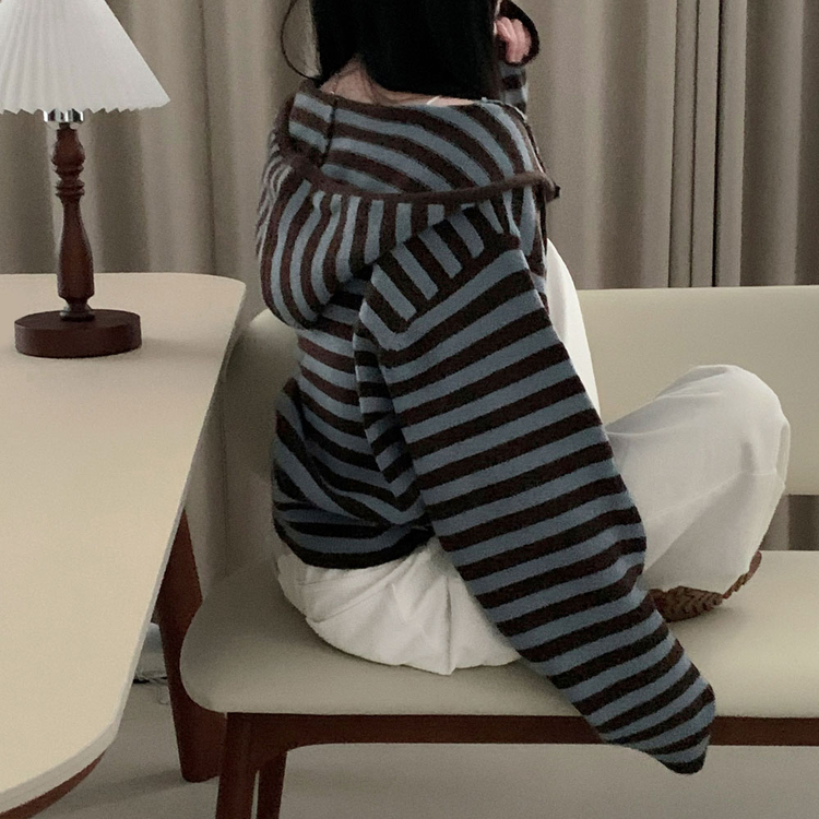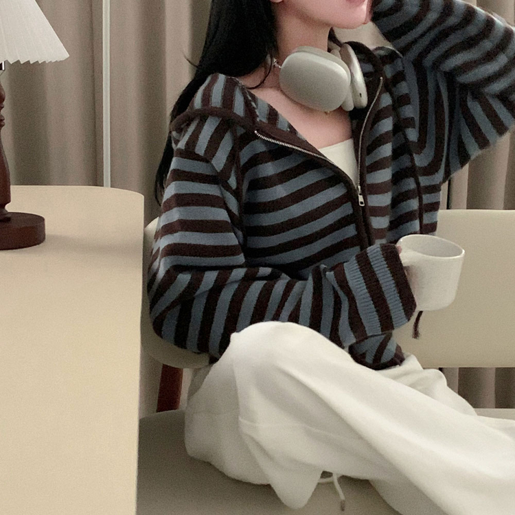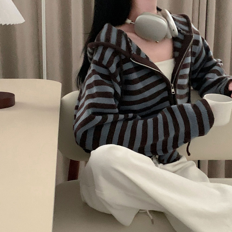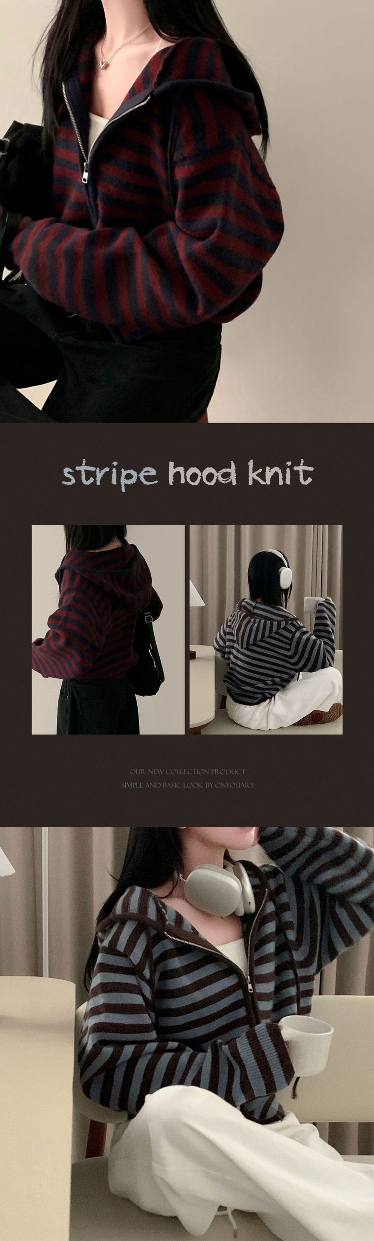 SJP19423 다이제 단가라 스트라이프 니트 후드집업 루즈핏 가디건
