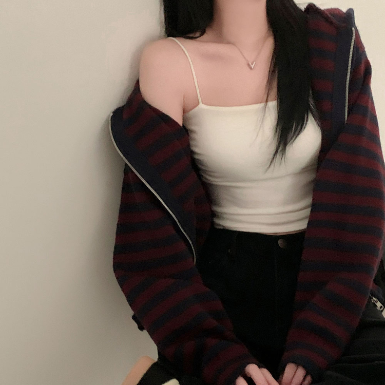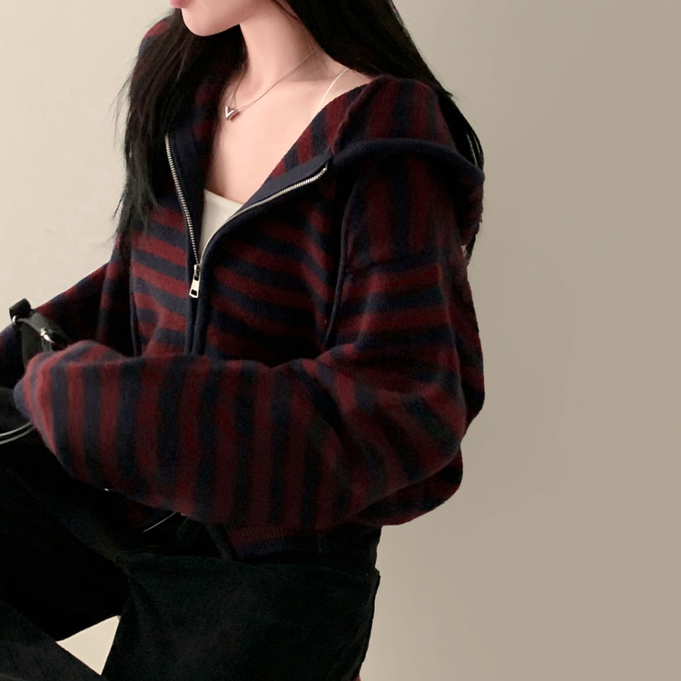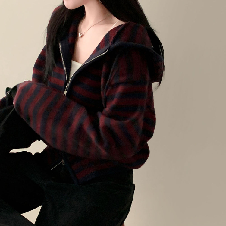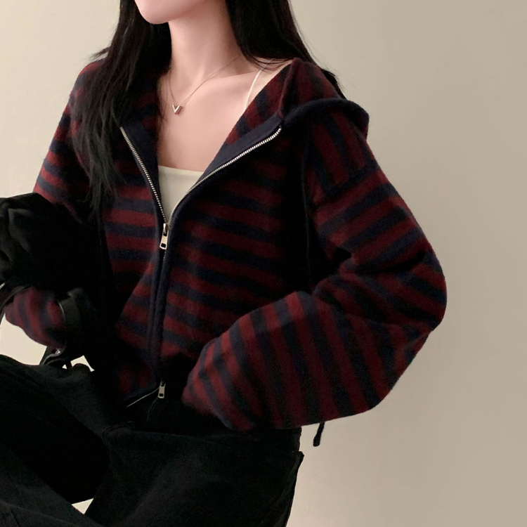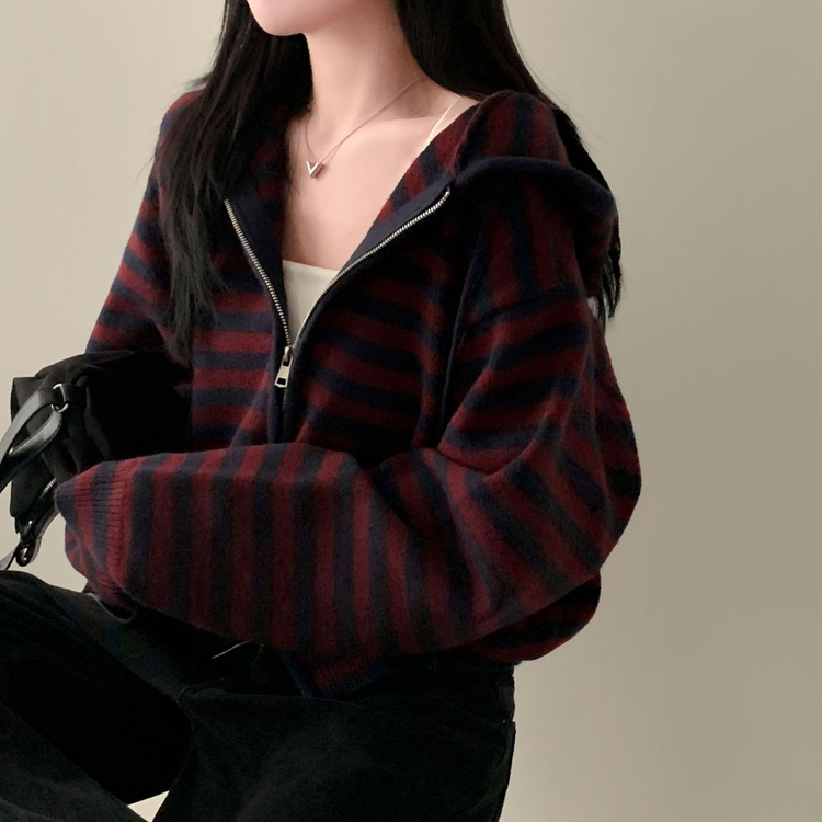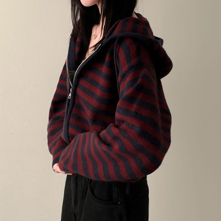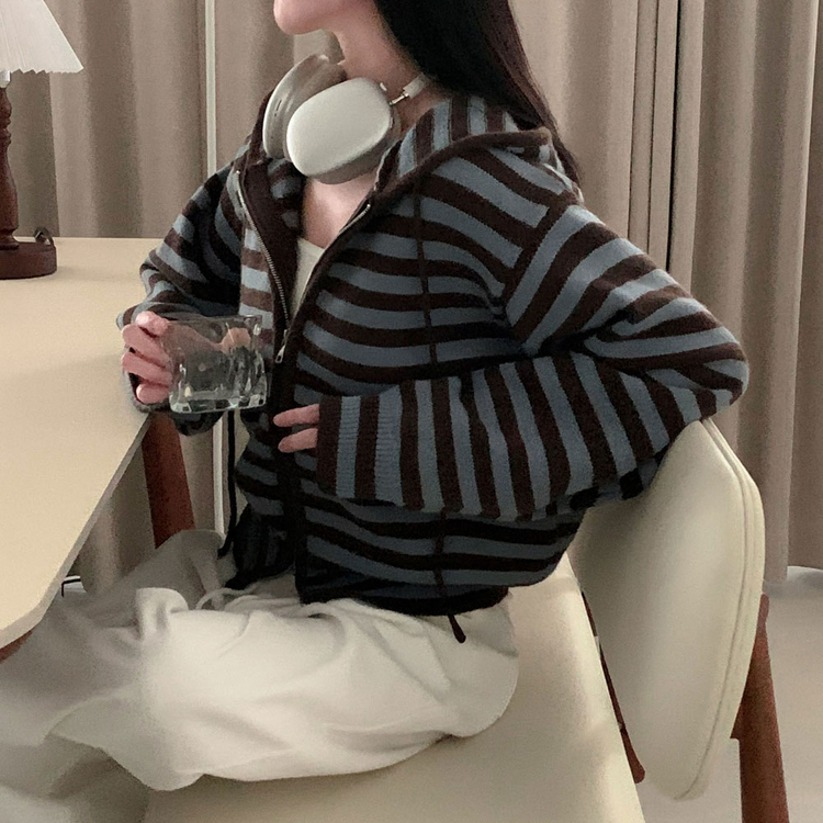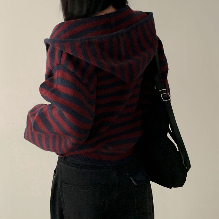 SJP19423 다이제 단가라 스트라이프 니트 후드집업 루즈핏 가디건