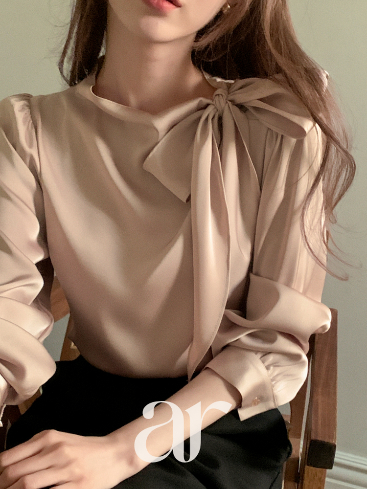 SBS30340 bs8545 (실물고퀄템/연말룩/드레시무드♥) 로이 리본 타이 샤틴 블라우스
