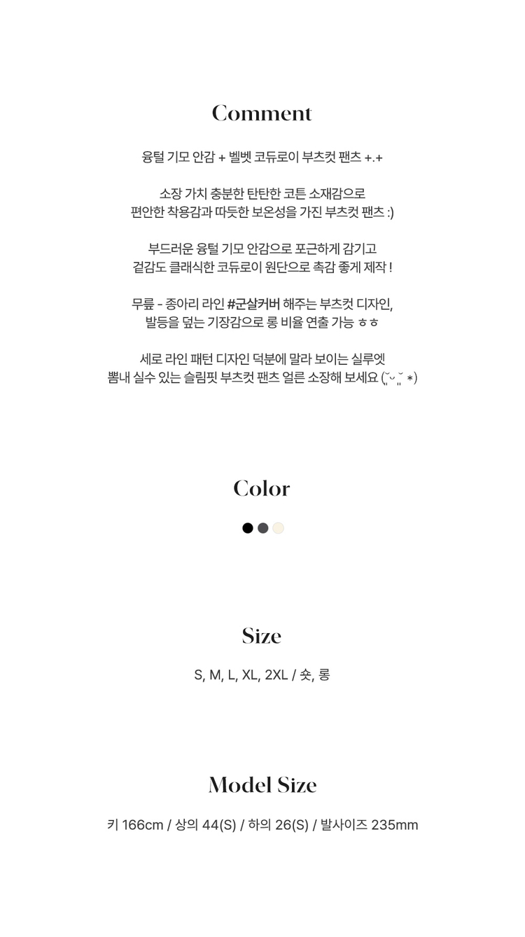 SPS37701 2XL벨벳 코듀로이 융털 기모 슬림핏 부츠컷 스판 팬츠