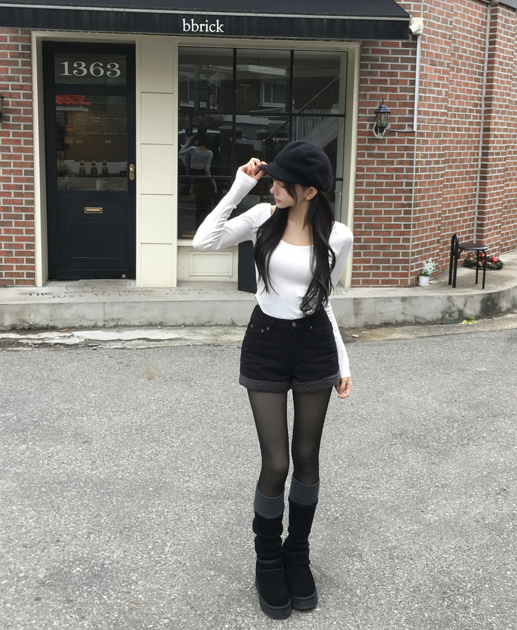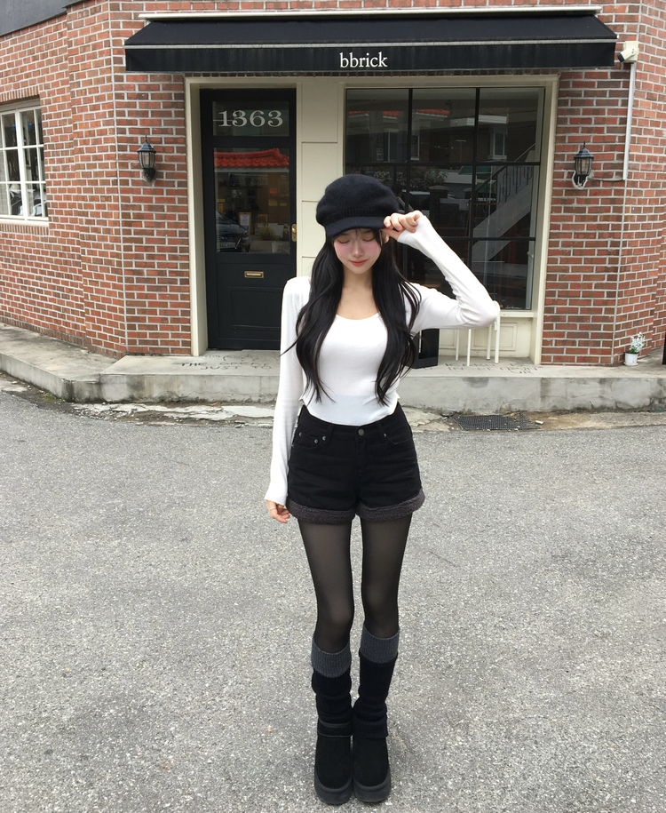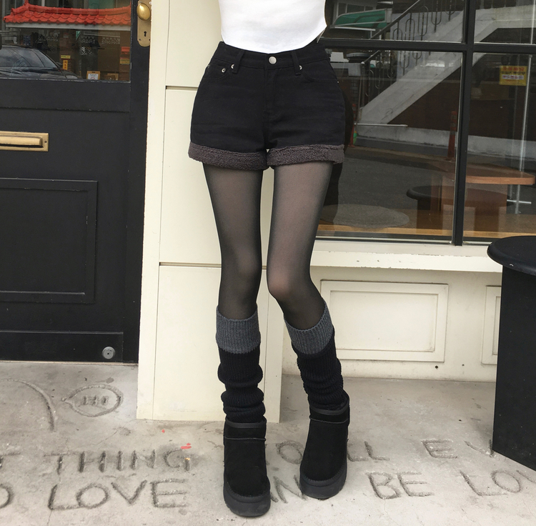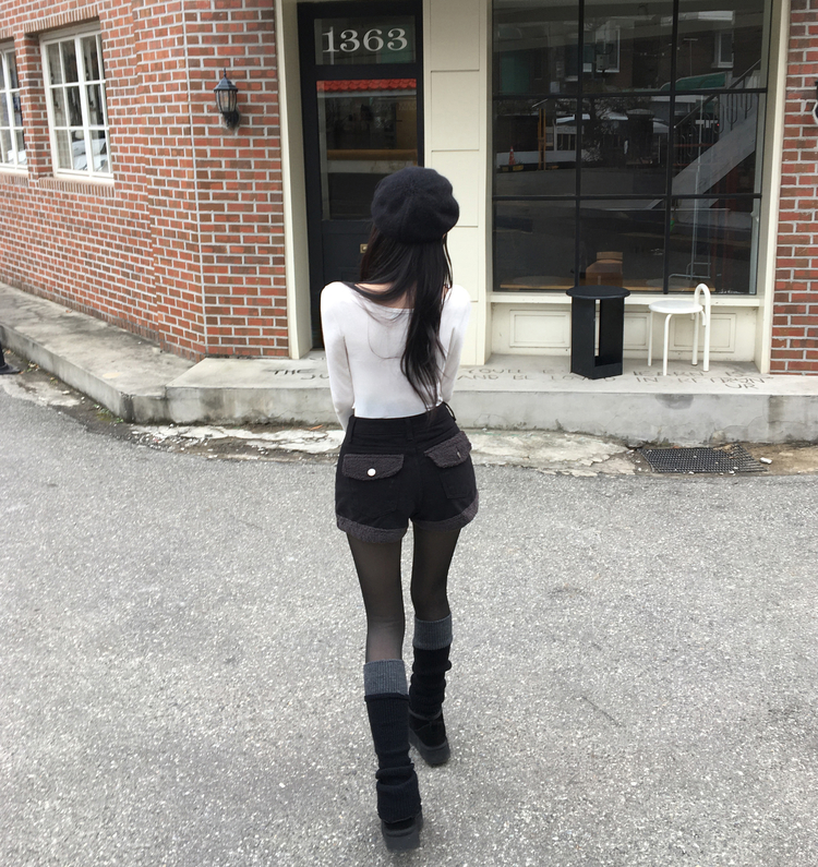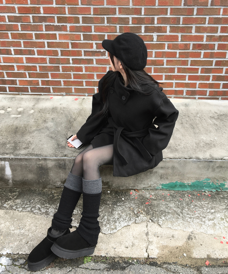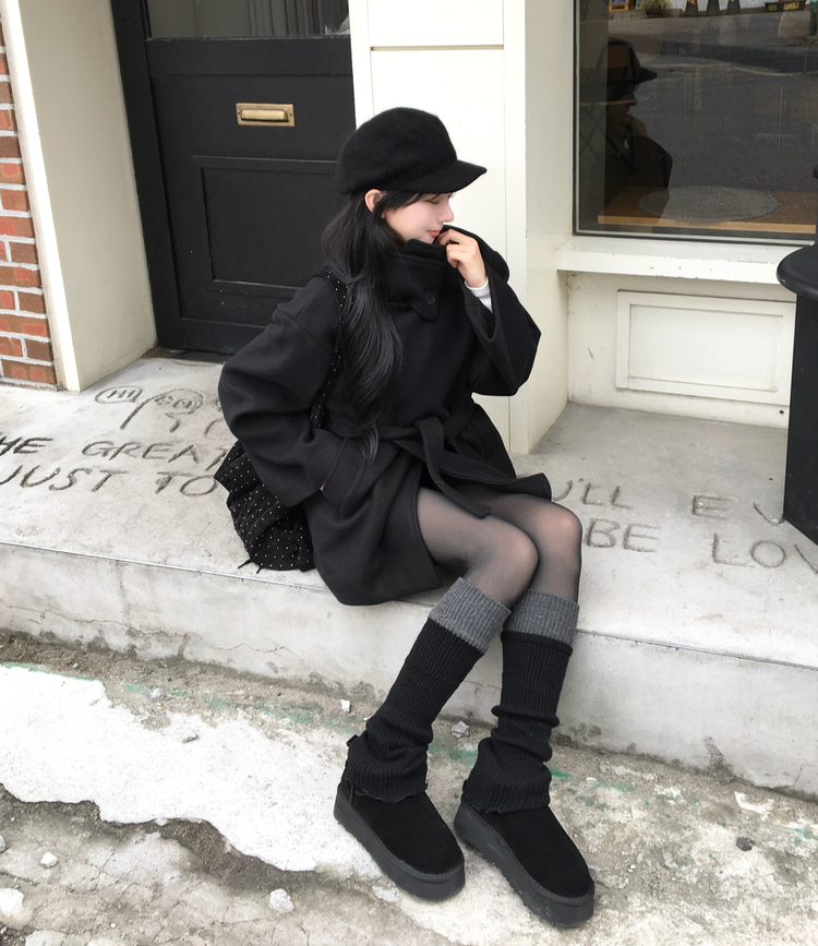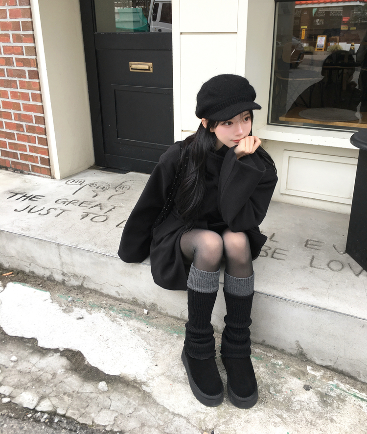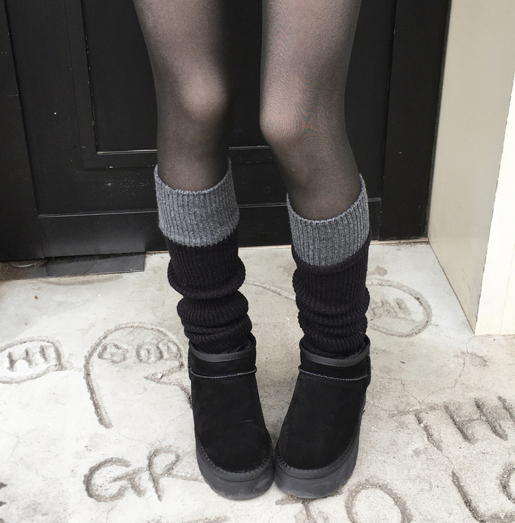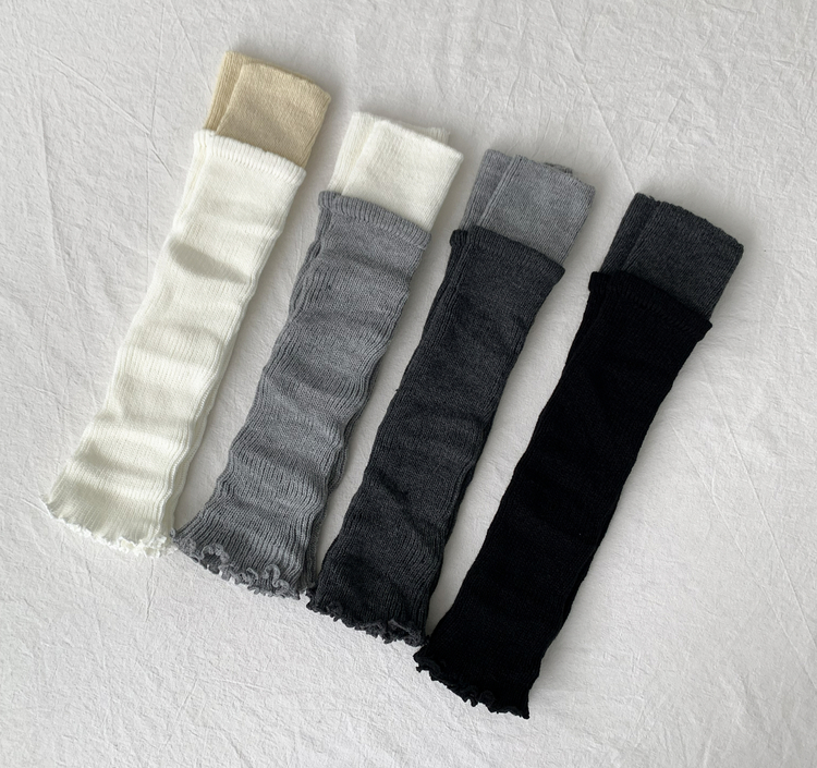 SAC8672 카뮤 배색 레이어드 일체형 물결 니트 레그워머