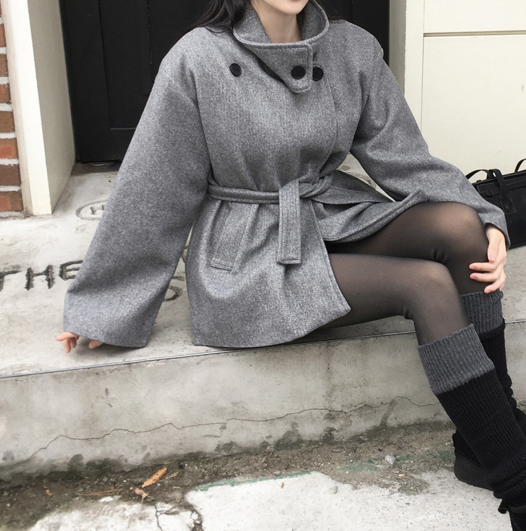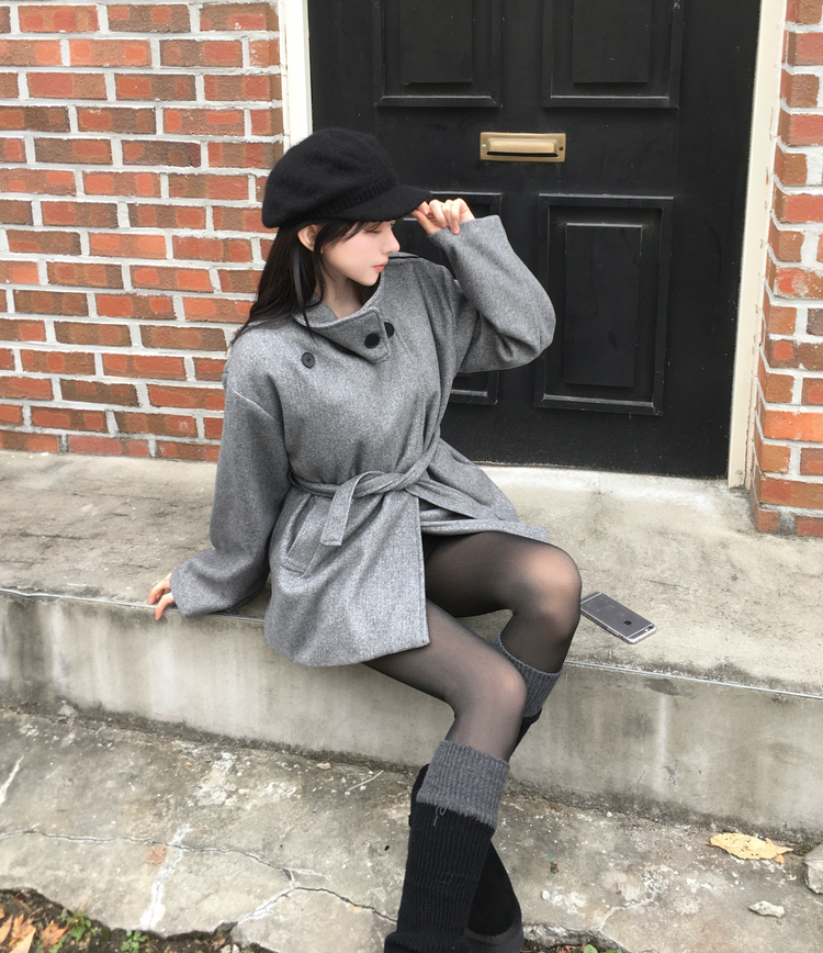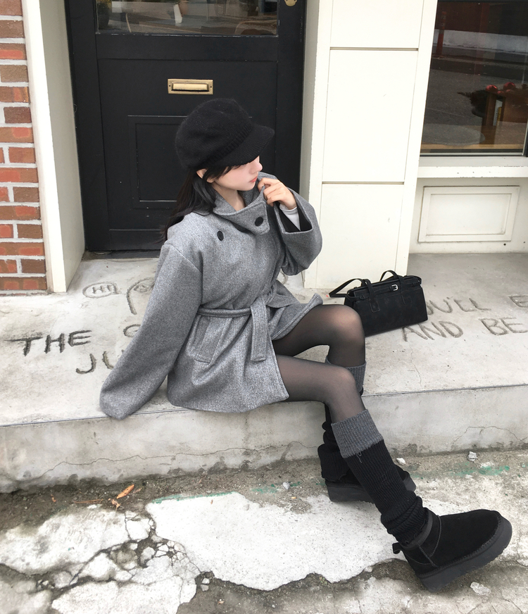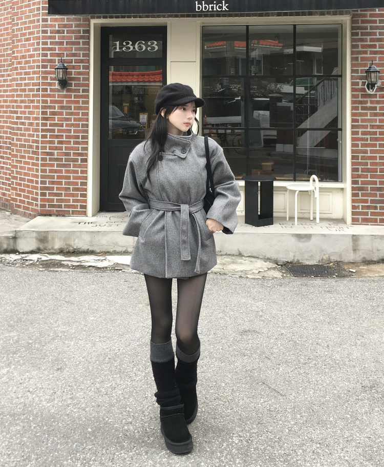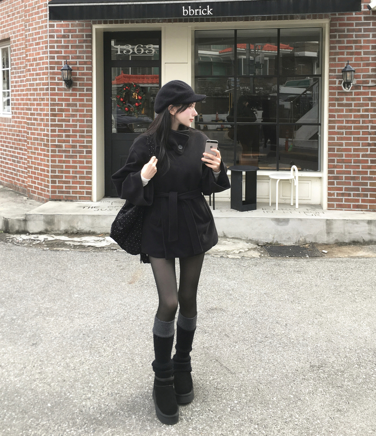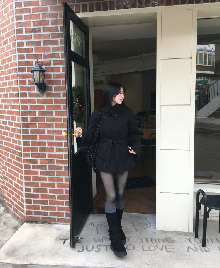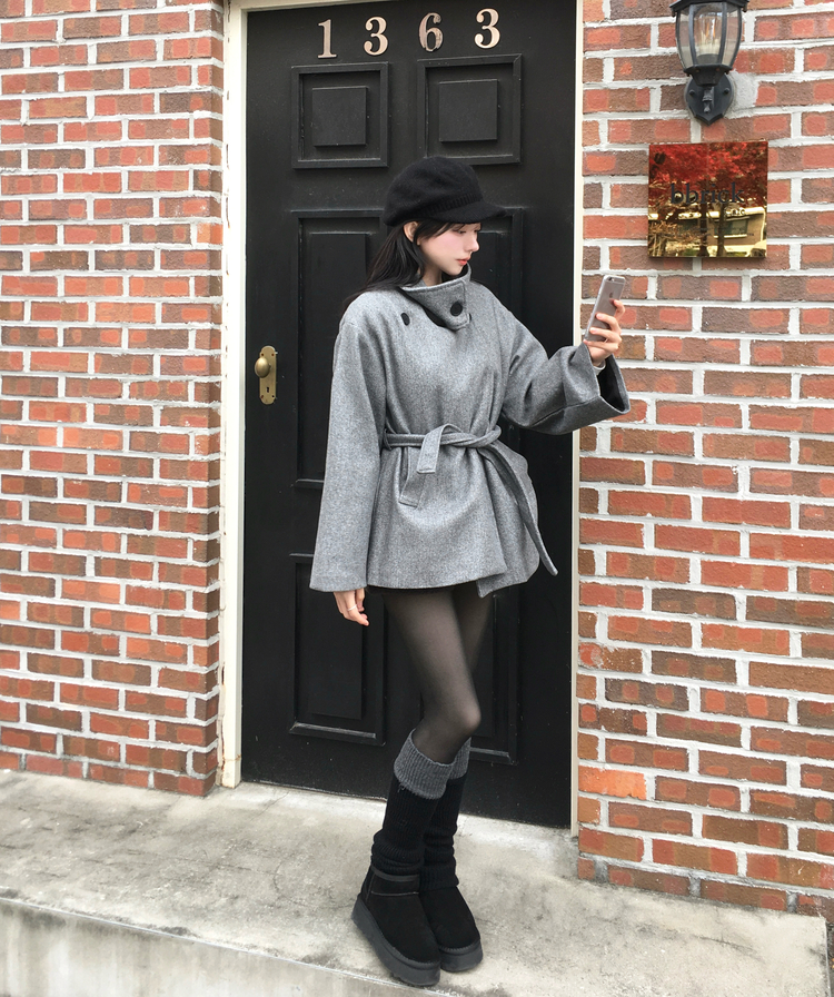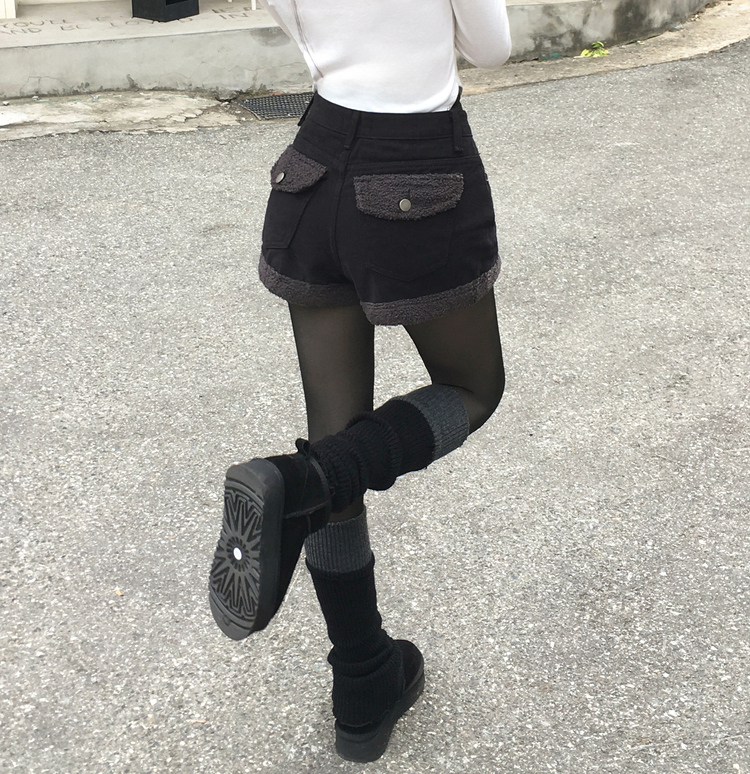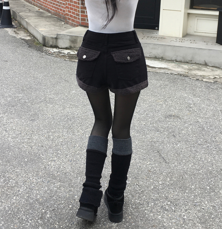 SAC8672 카뮤 배색 레이어드 일체형 물결 니트 레그워머