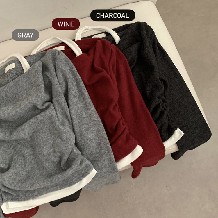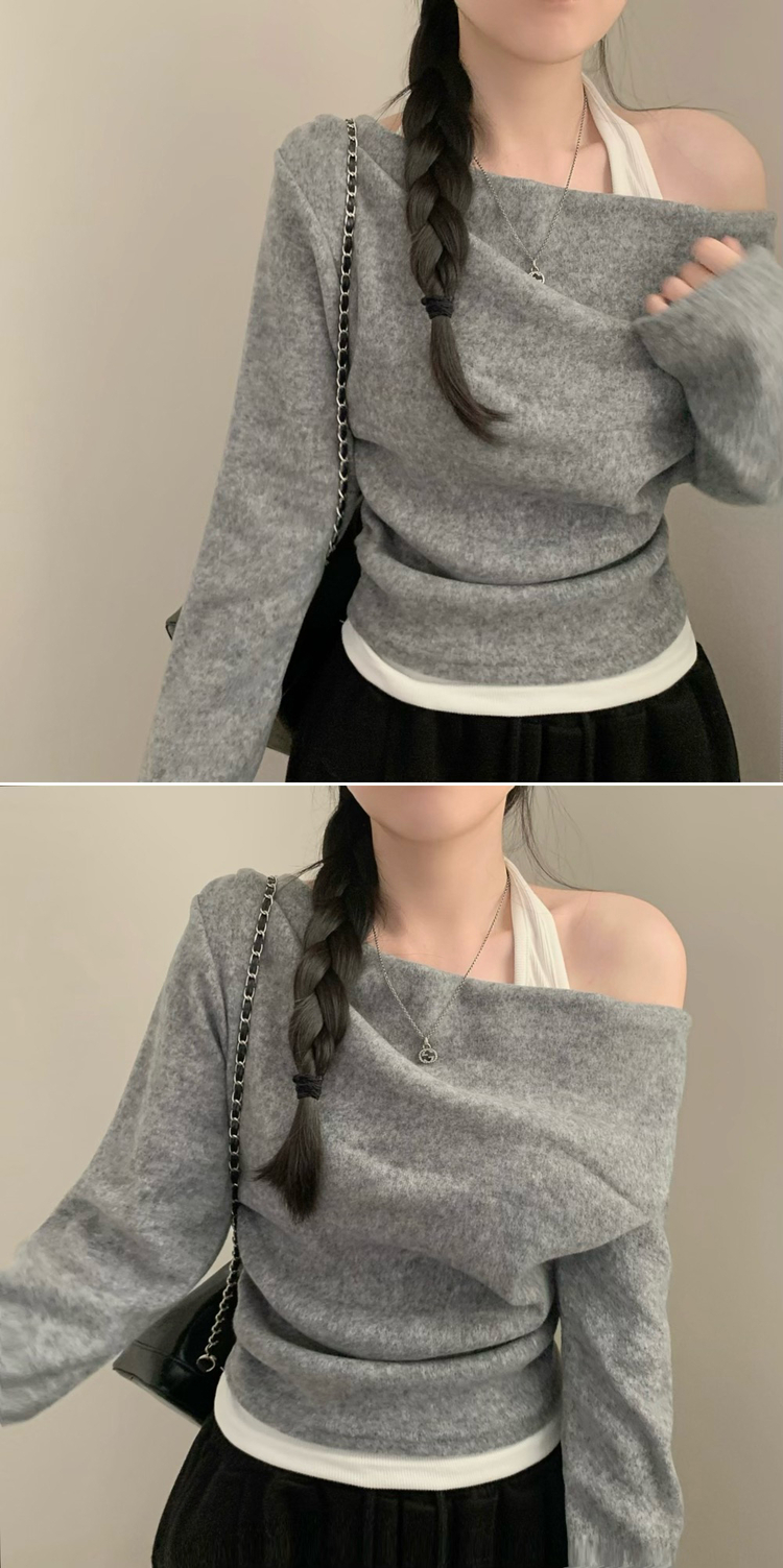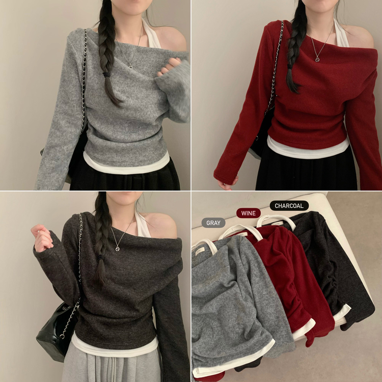 STS73945 겨울 뮤지 홀터넥 레이어드 긴팔티 긴팔 원숄더 오프숄더 드레이프 일체형 겨울 겨울옷 연말룩 크리스마스