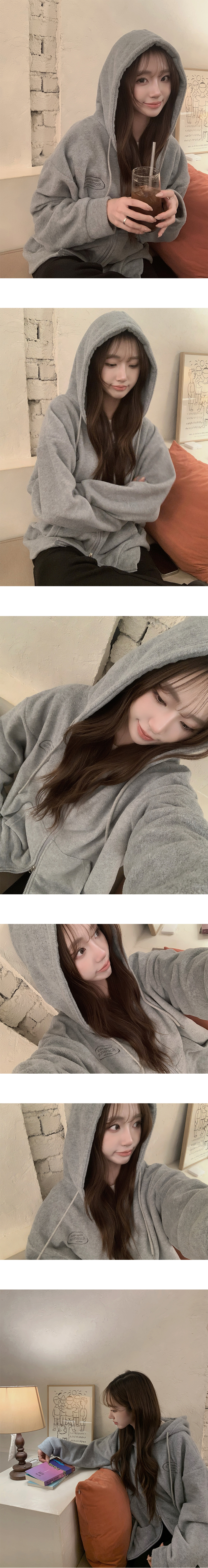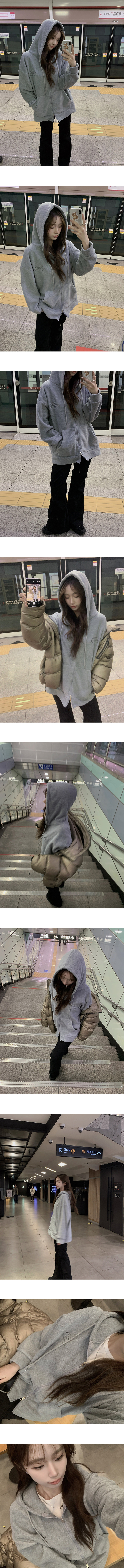 SJP19455 담요를 덮은듯 포그니 겨울 긴팔 자수 투웨이 스트링 후드 집업 오버핏 아우터 루즈핏 후드티 상의