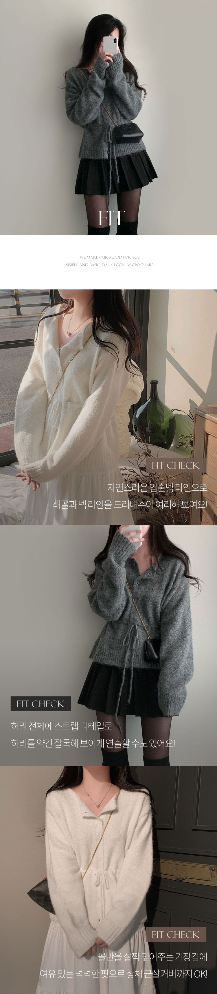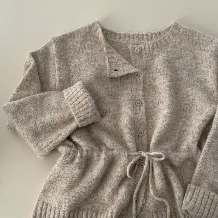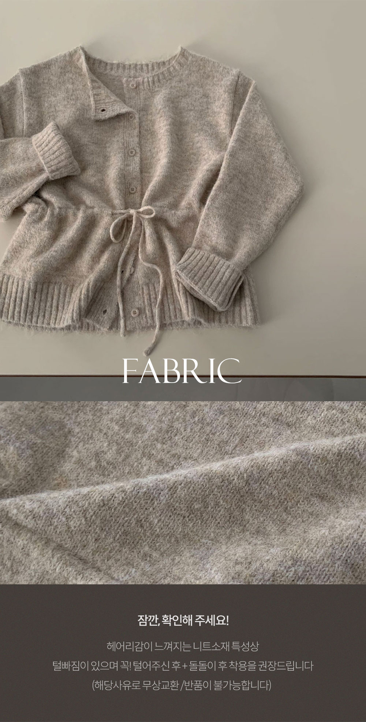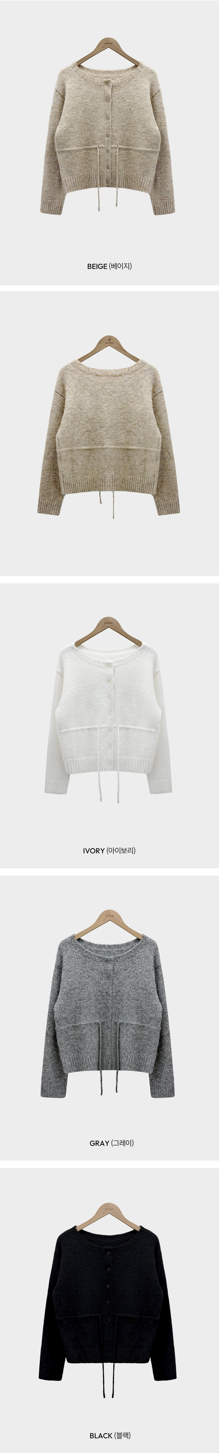 SGD30162 허리 스트링 포인트아몬드 울 보트넥 나그랑 루즈핏 니트 가디건