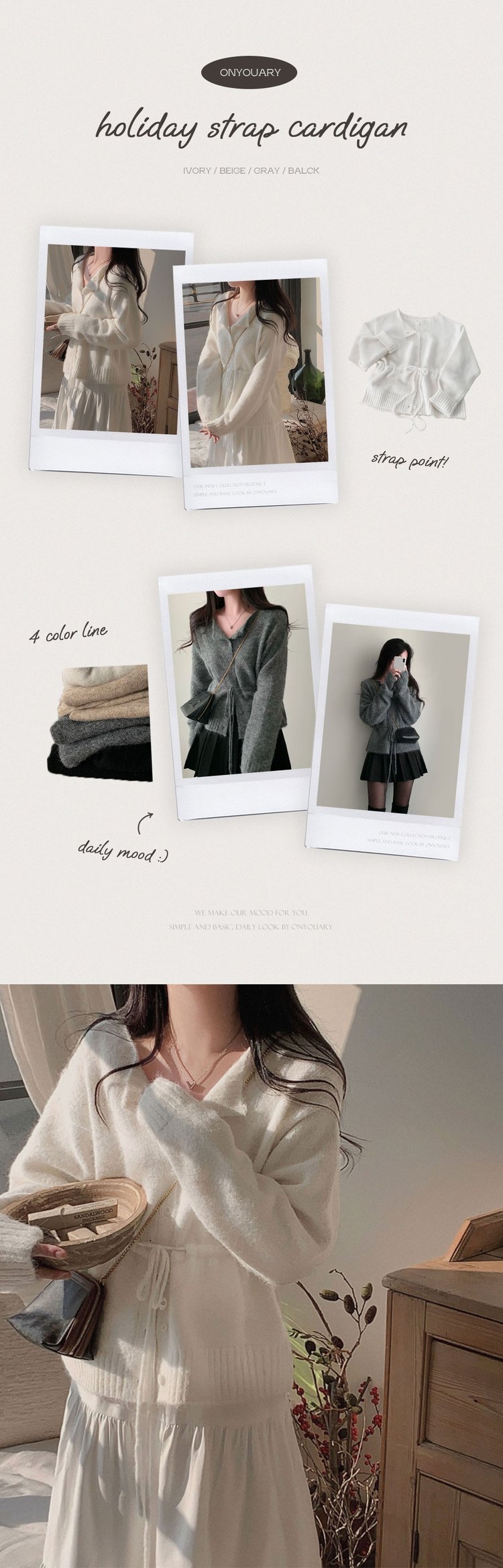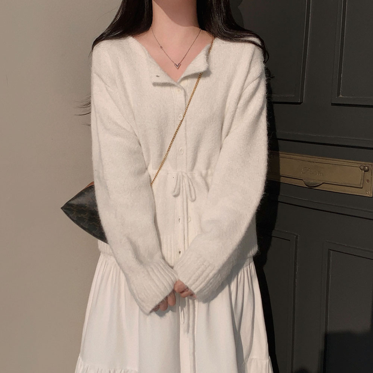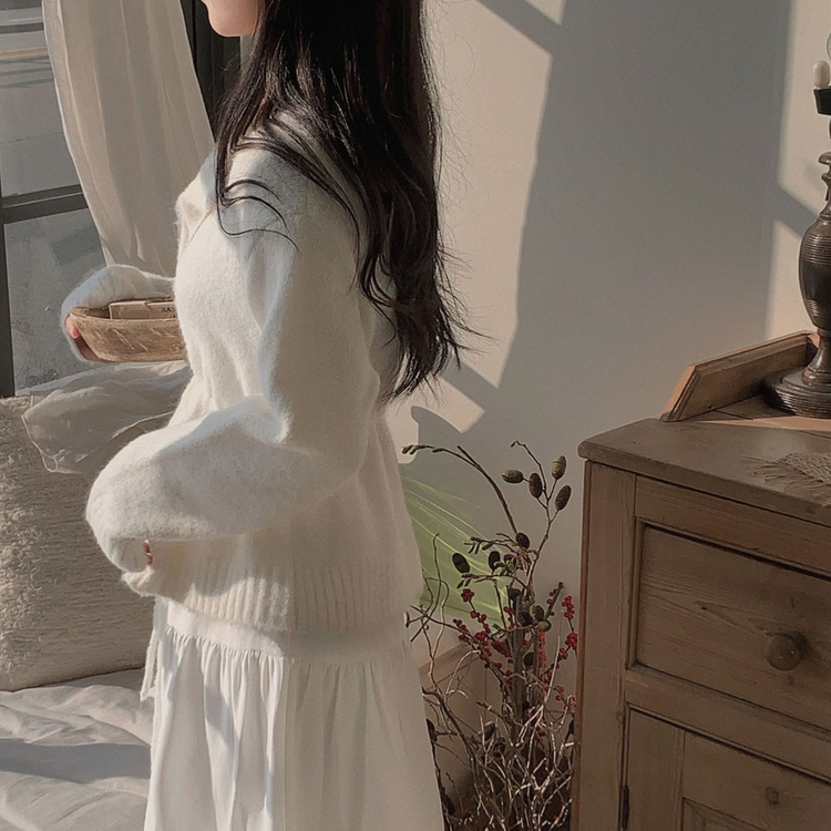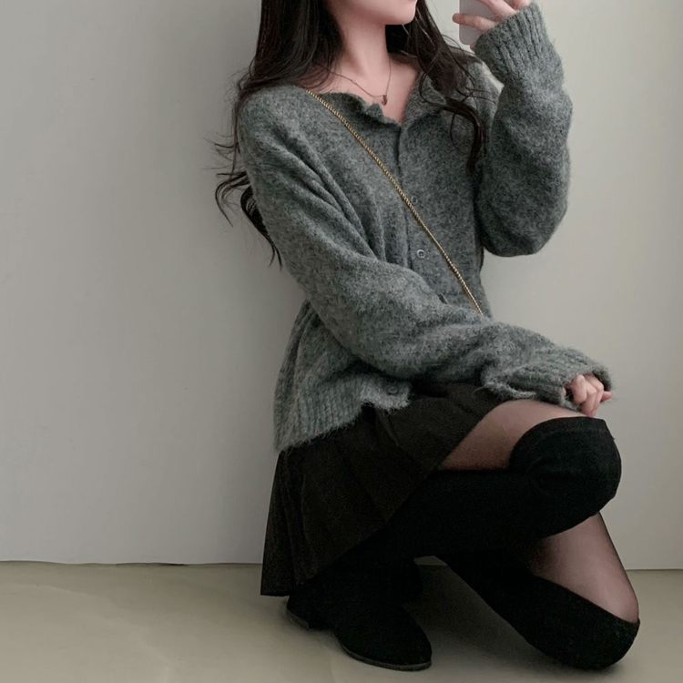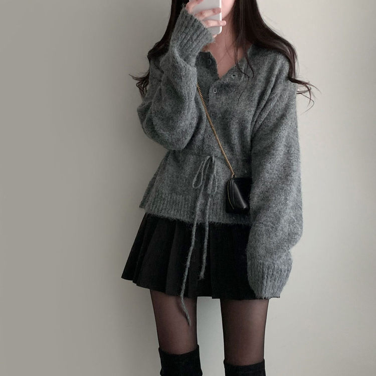 SGD30162 허리 스트링 포인트아몬드 울 보트넥 나그랑 루즈핏 니트 가디건