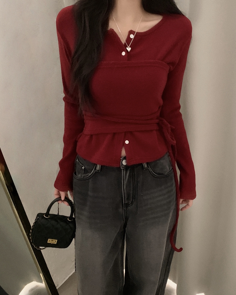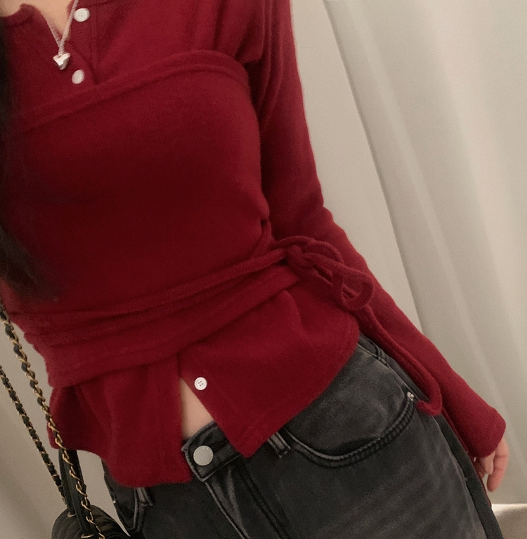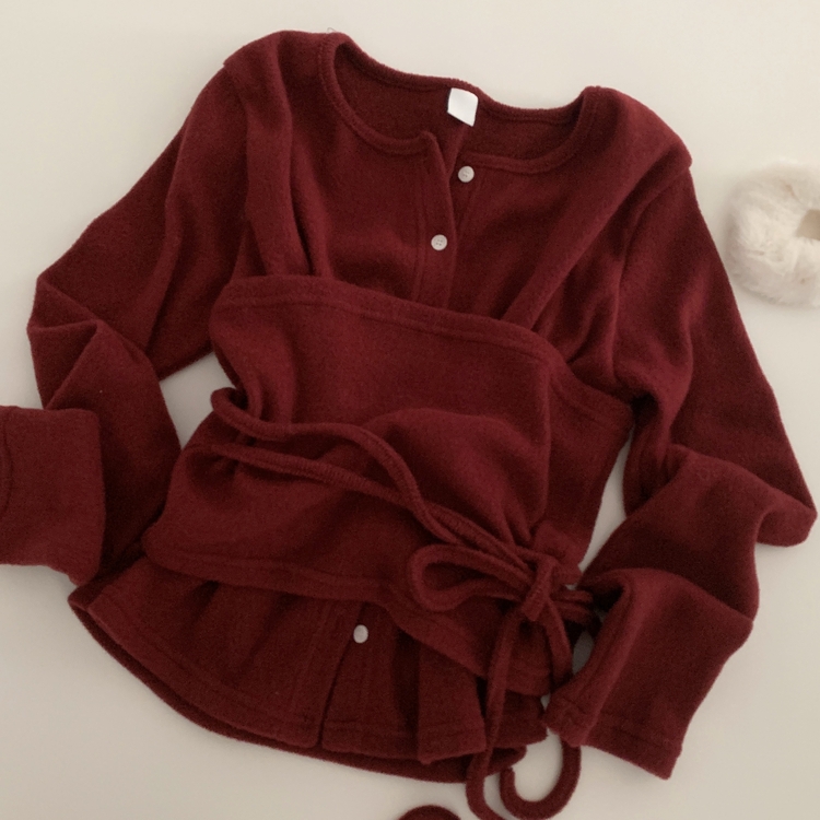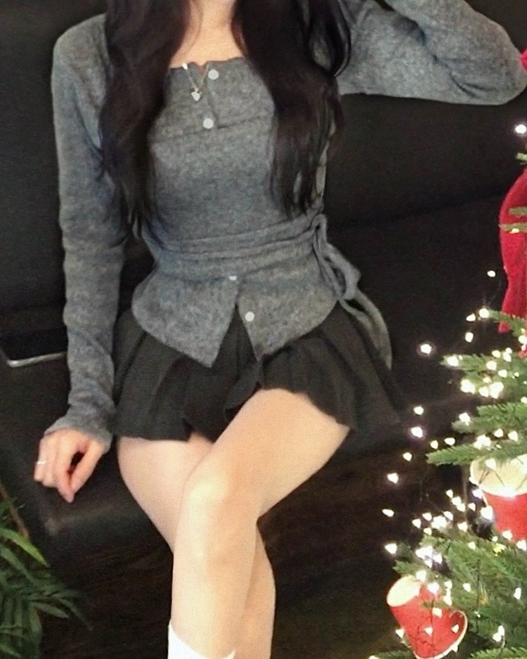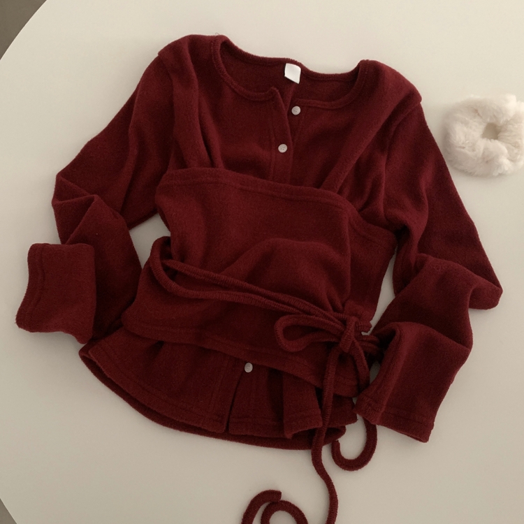 SGD30169 베로나 기모 리본 레이어드 여리핏 니트탑 버튼가디건 셋업