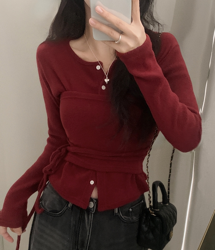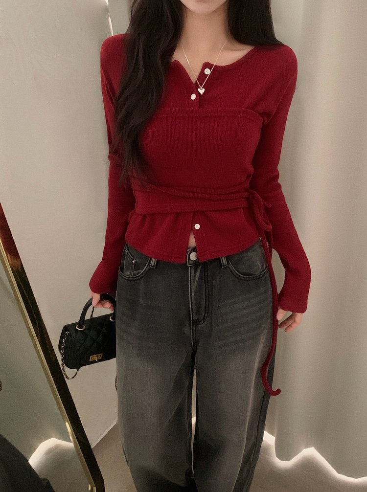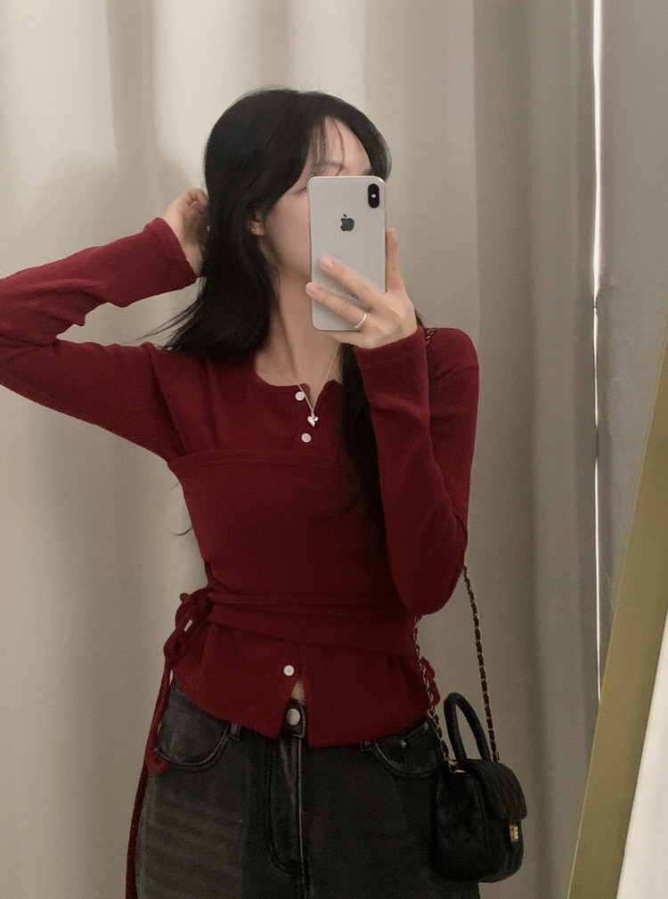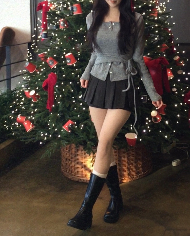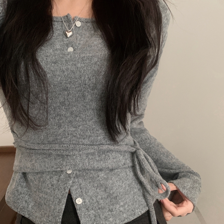 SGD30169 베로나 기모 리본 레이어드 여리핏 니트탑 버튼가디건 셋업