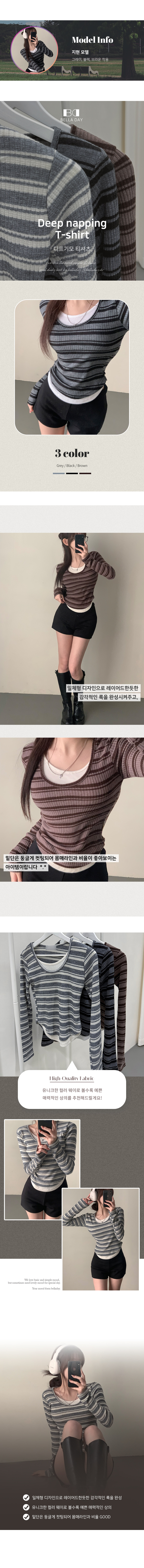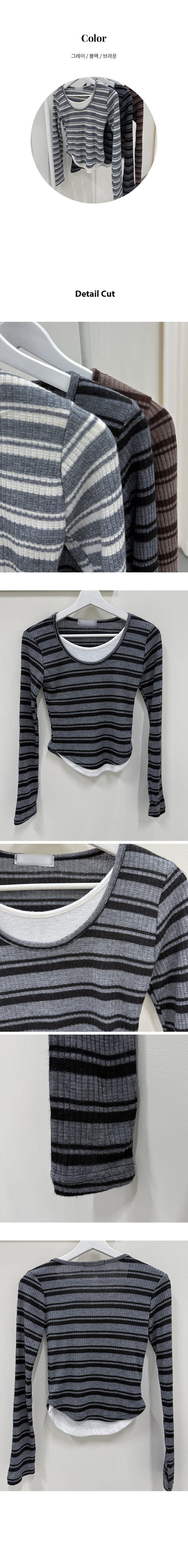 STS74023 디프 스트라이프 일체형 레이어드 단가라 긴팔티셔츠 t