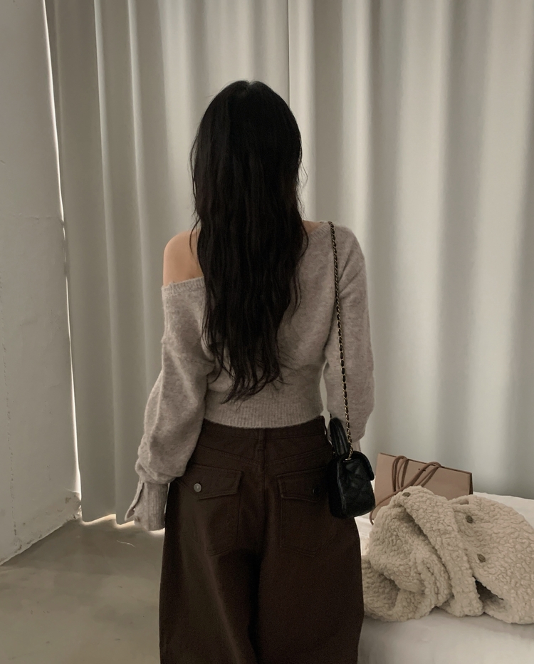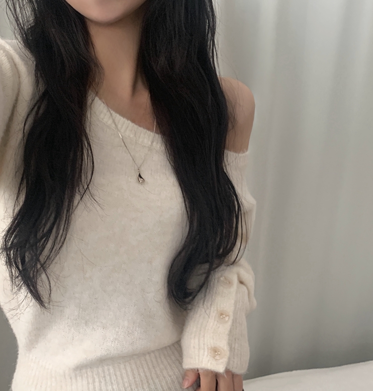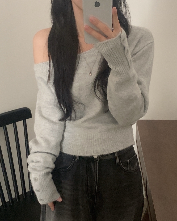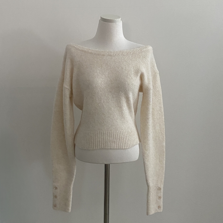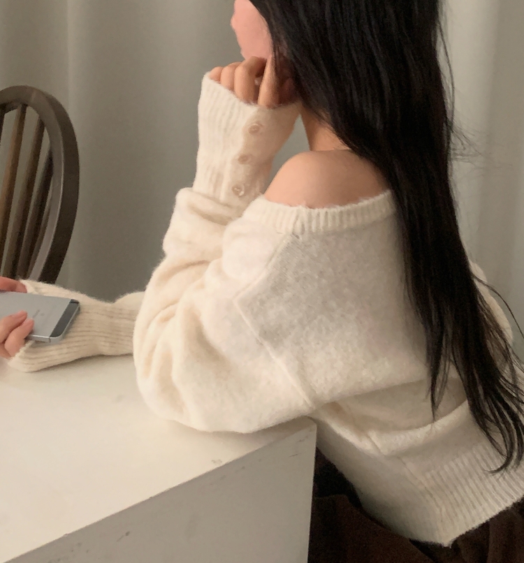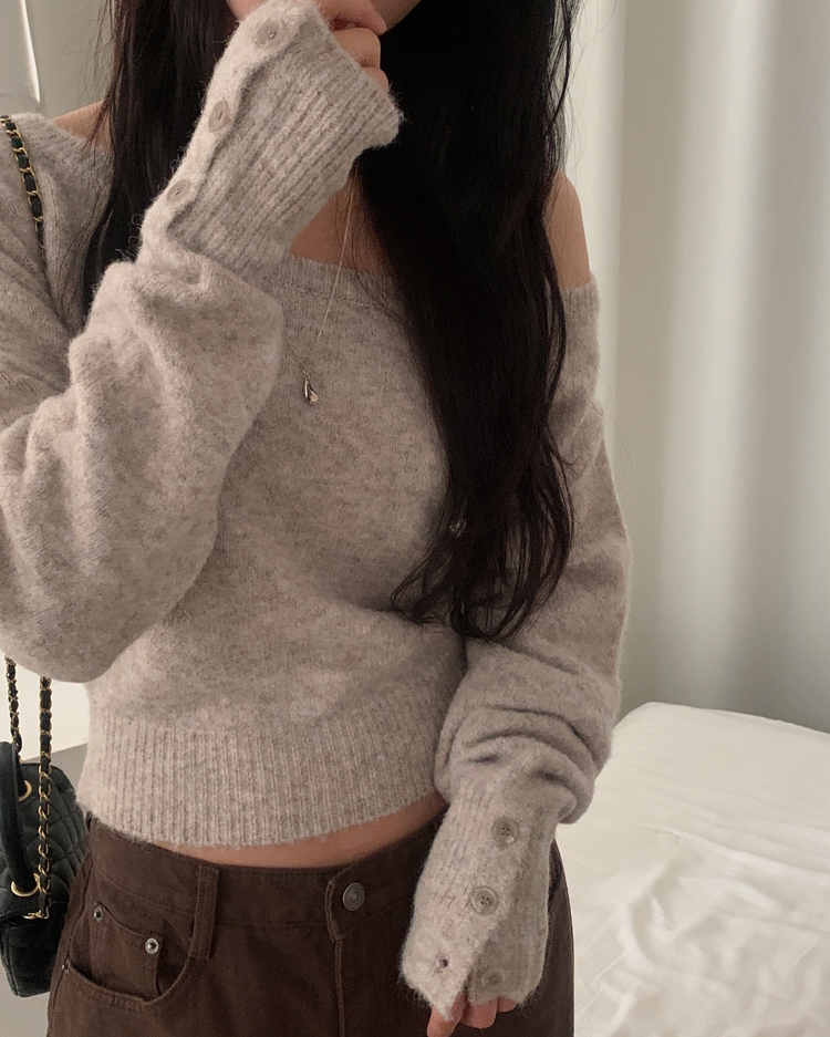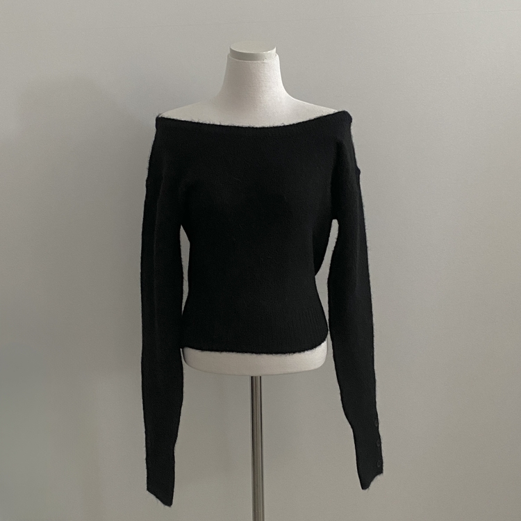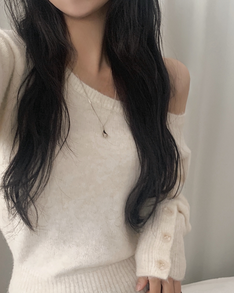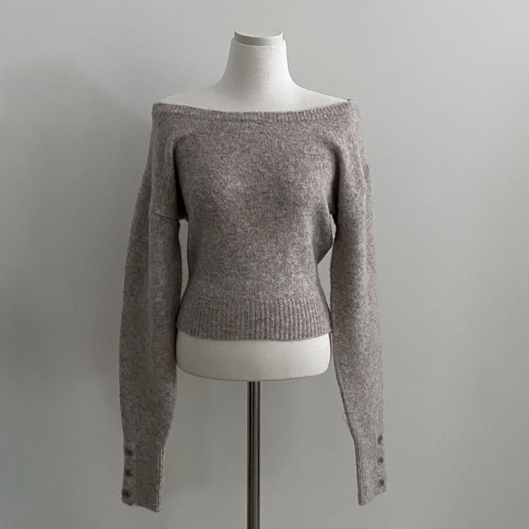 SNT34167 배론 버튼 포인트 원숄더 울 보카시 오프숄더 긴팔니트