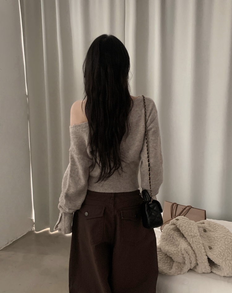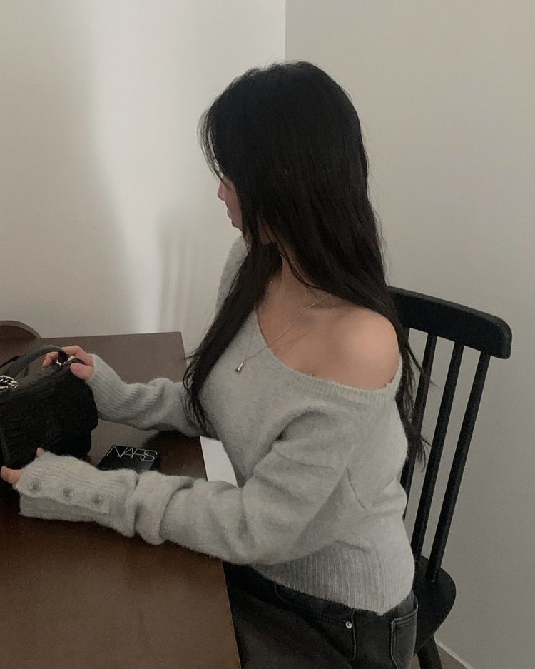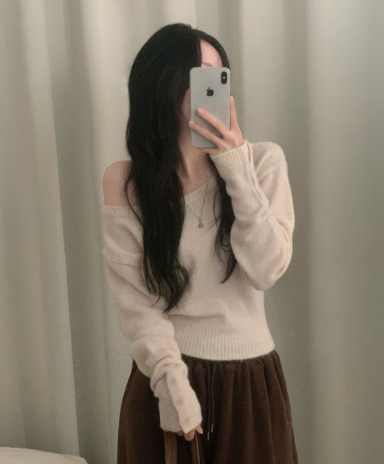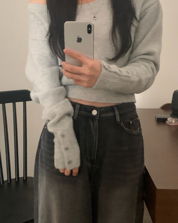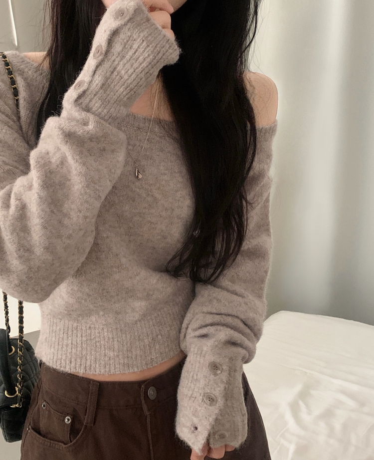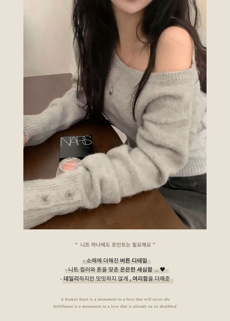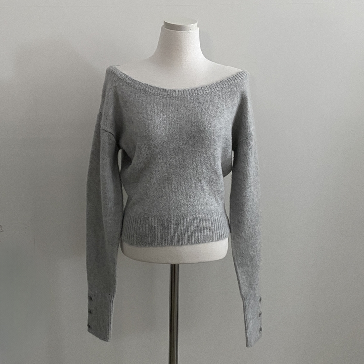 SNT34167 배론 버튼 포인트 원숄더 울 보카시 오프숄더 긴팔니트