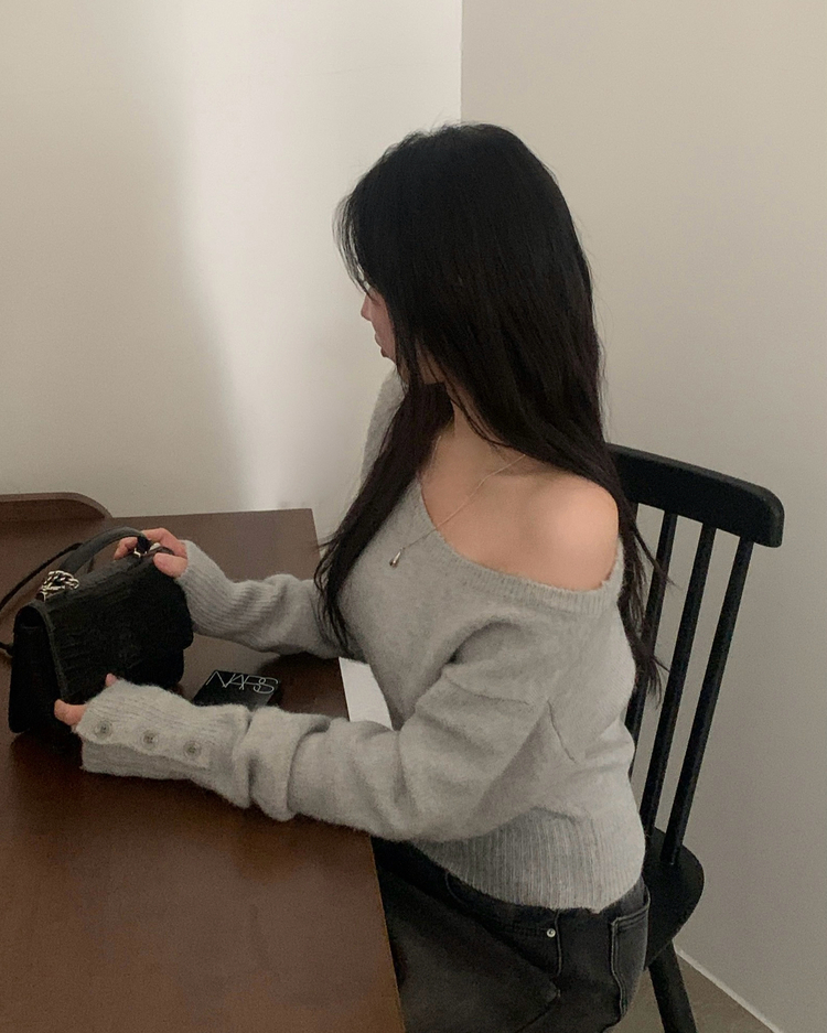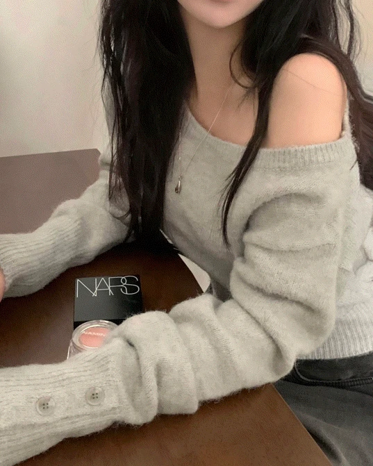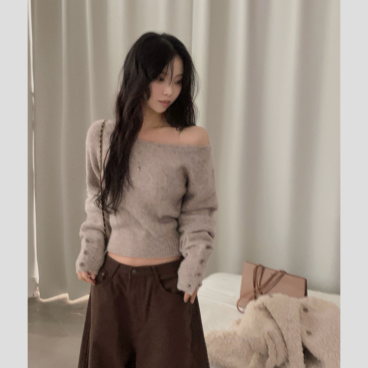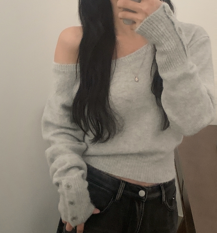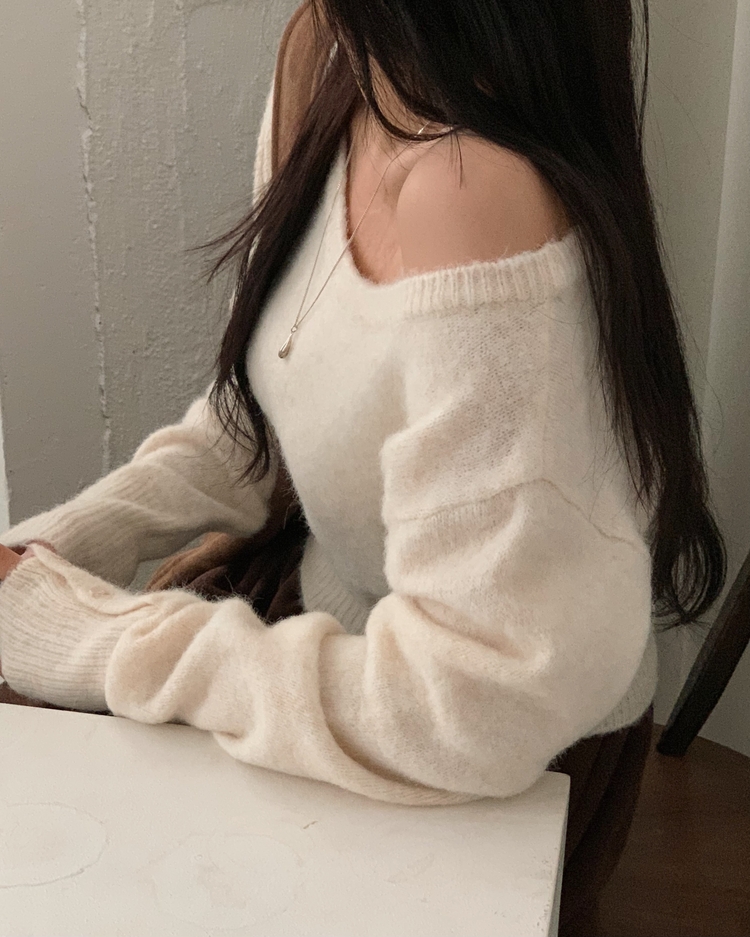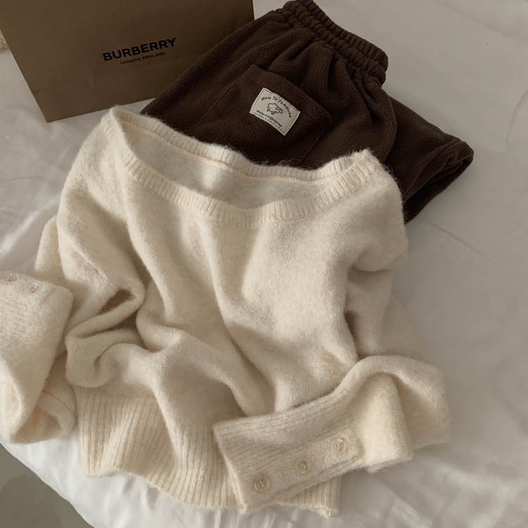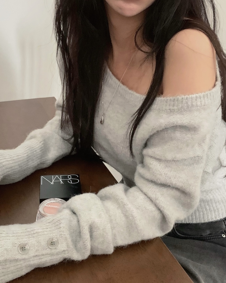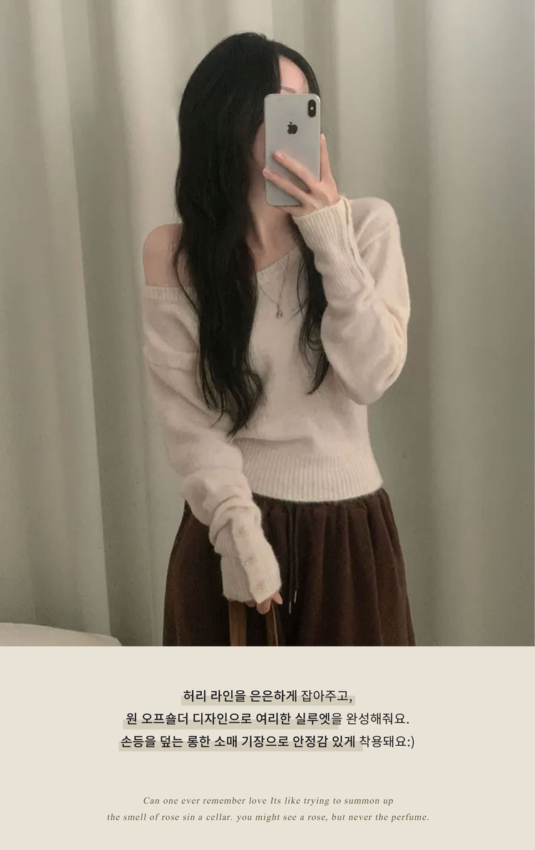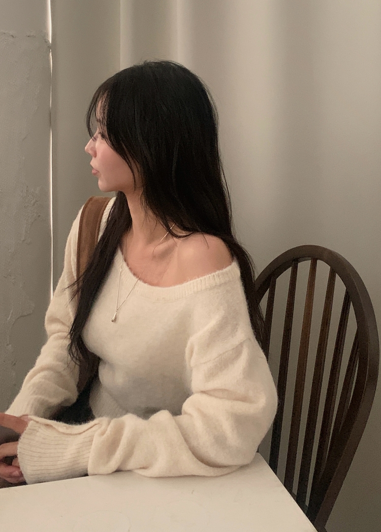 SNT34167 배론 버튼 포인트 원숄더 울 보카시 오프숄더 긴팔니트