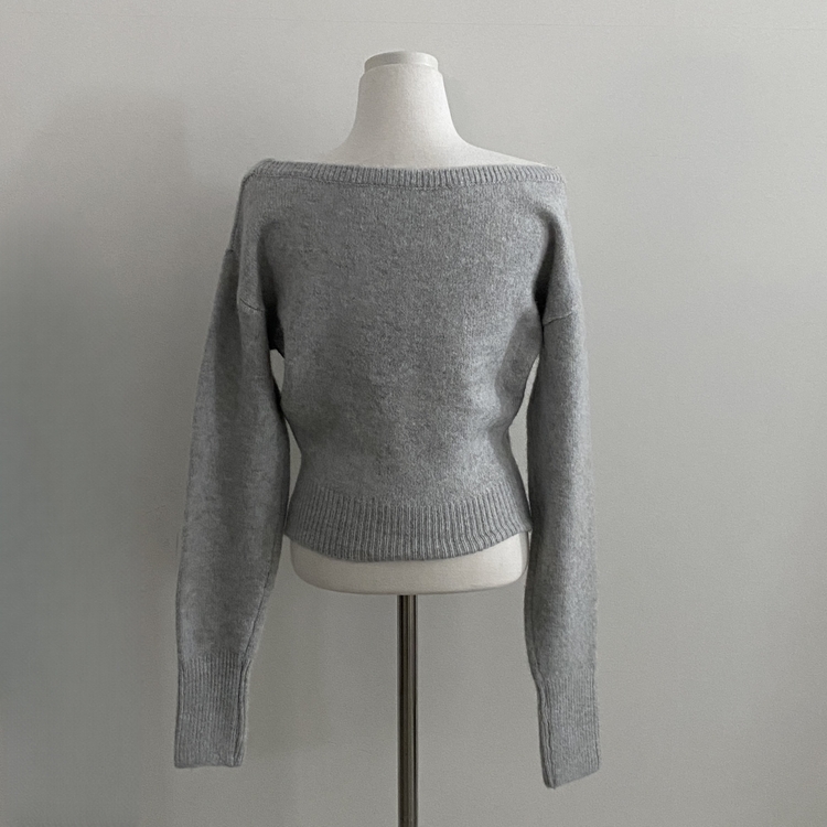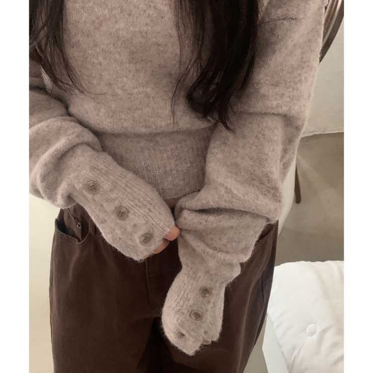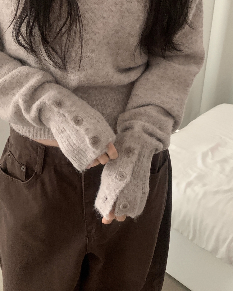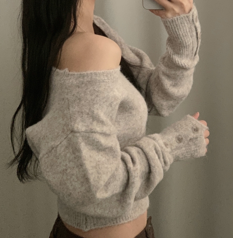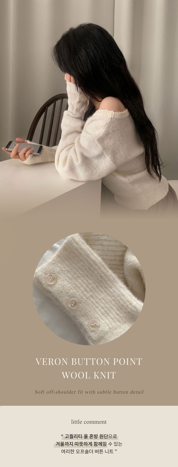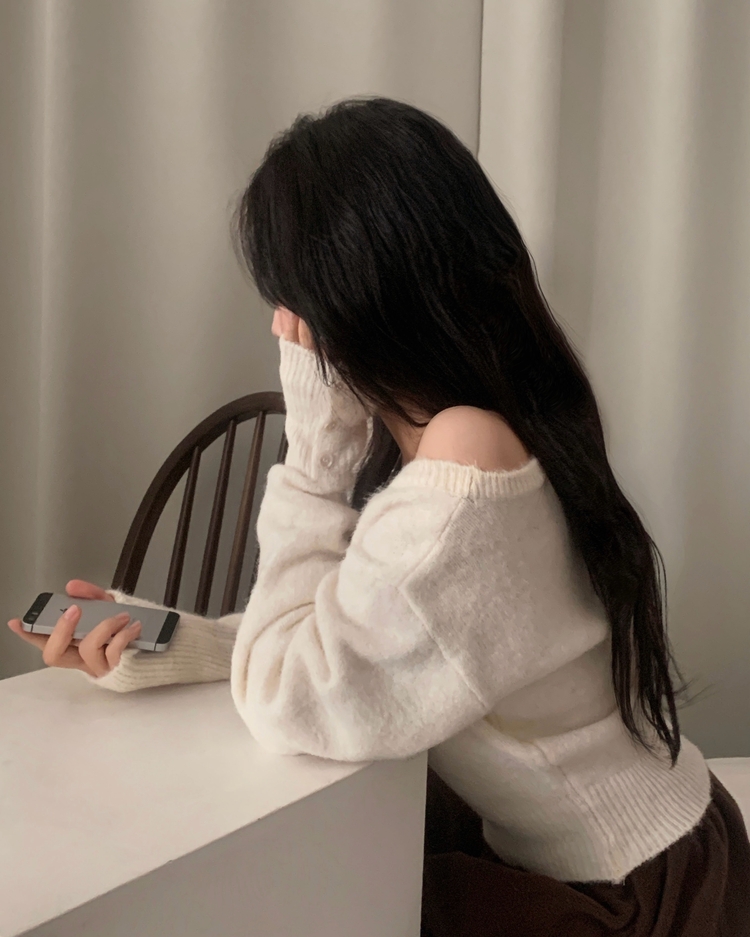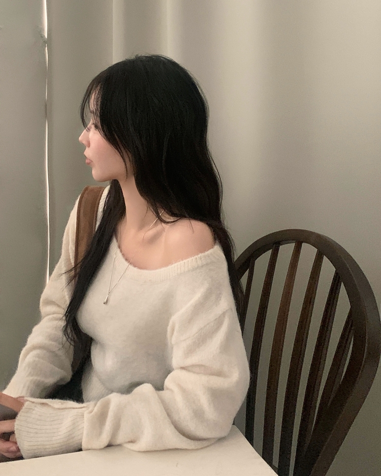 SNT34167 배론 버튼 포인트 원숄더 울 보카시 오프숄더 긴팔니트