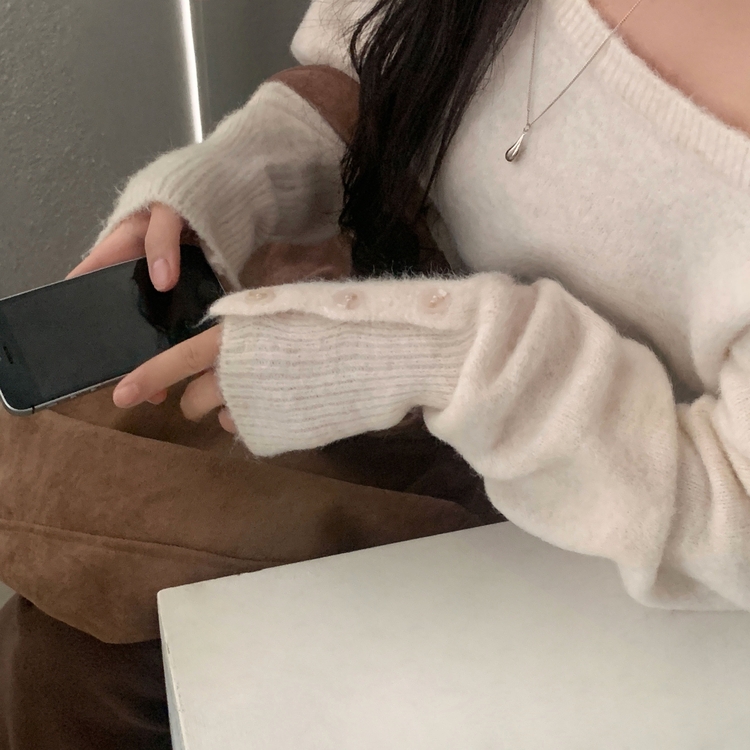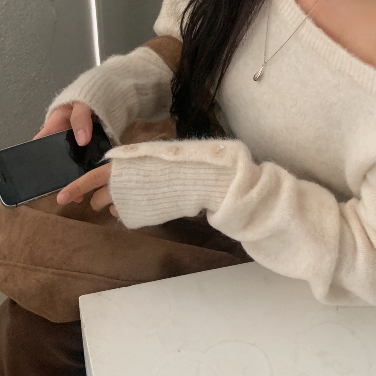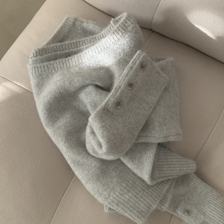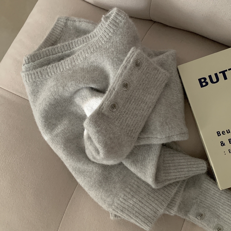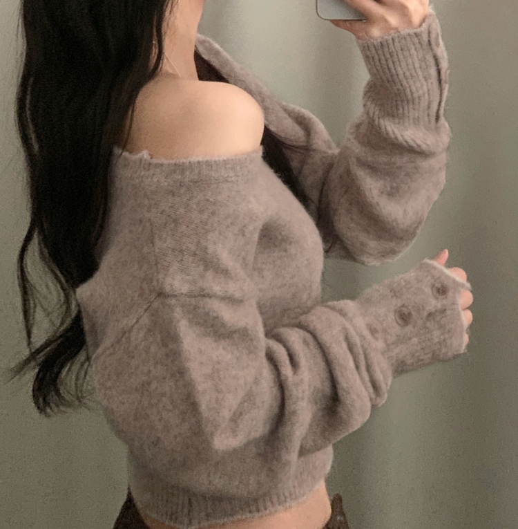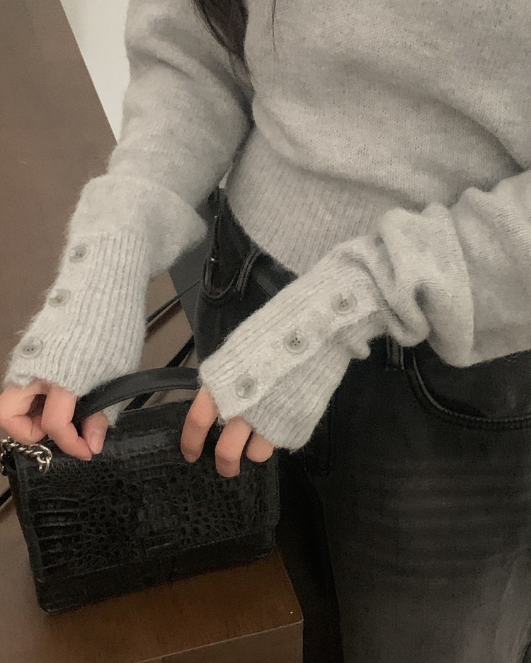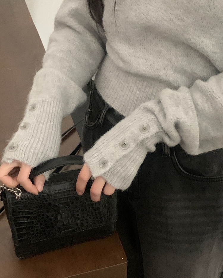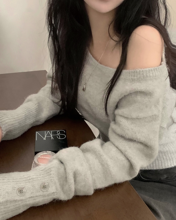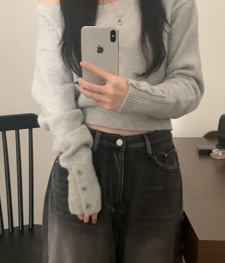 SNT34167 배론 버튼 포인트 원숄더 울 보카시 오프숄더 긴팔니트