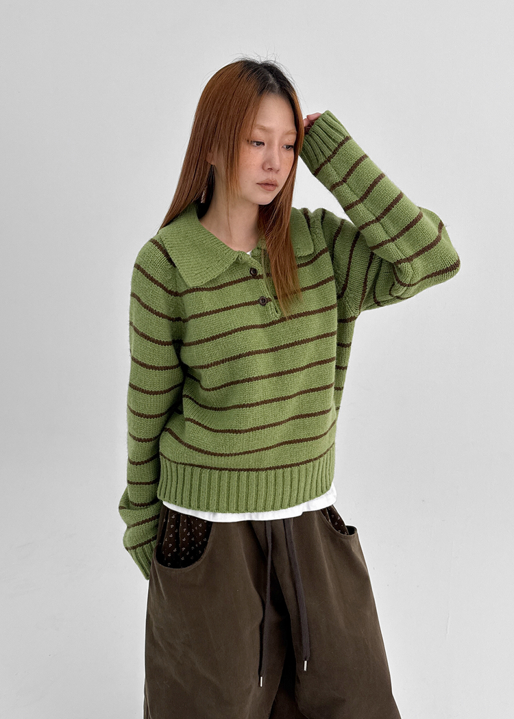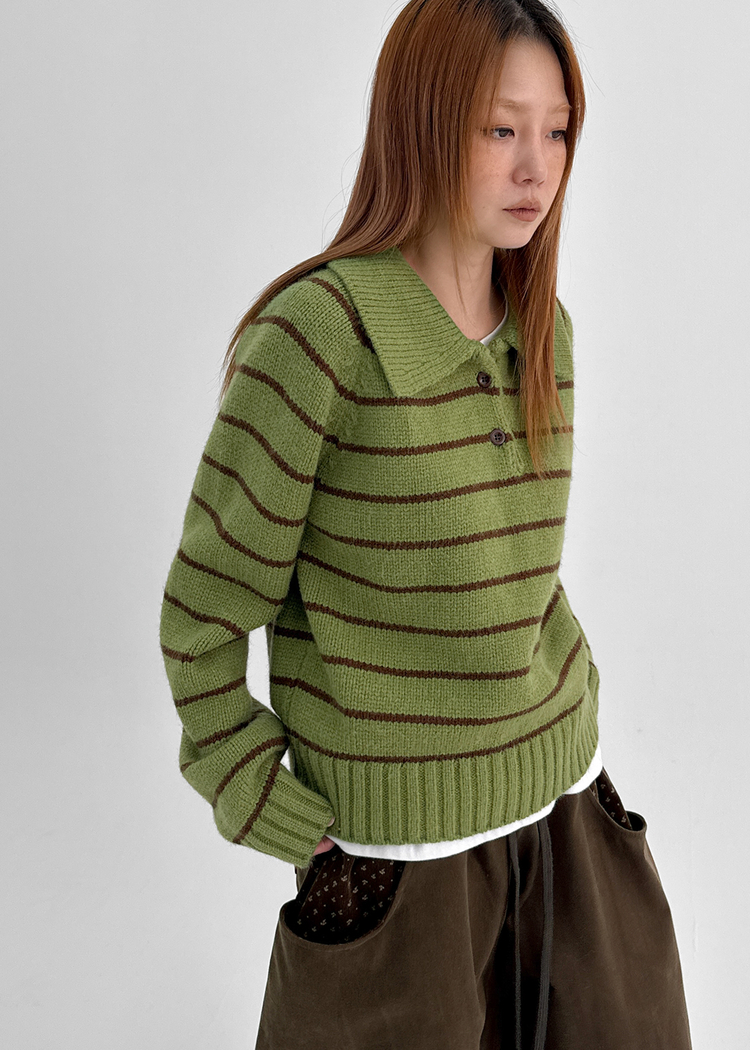 SNT34120 젤토디 스트라이프 카라 니트