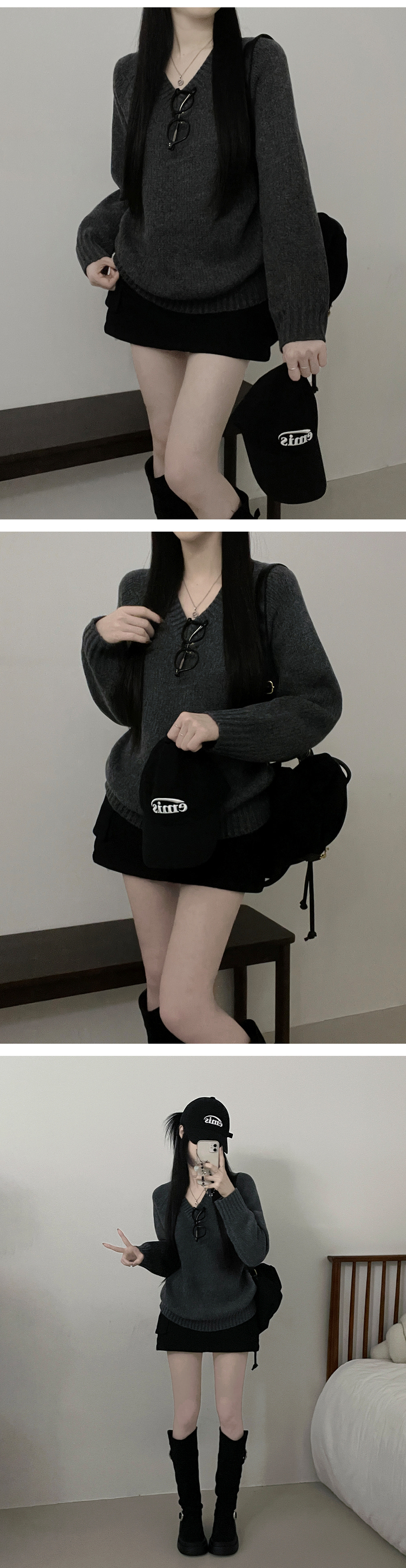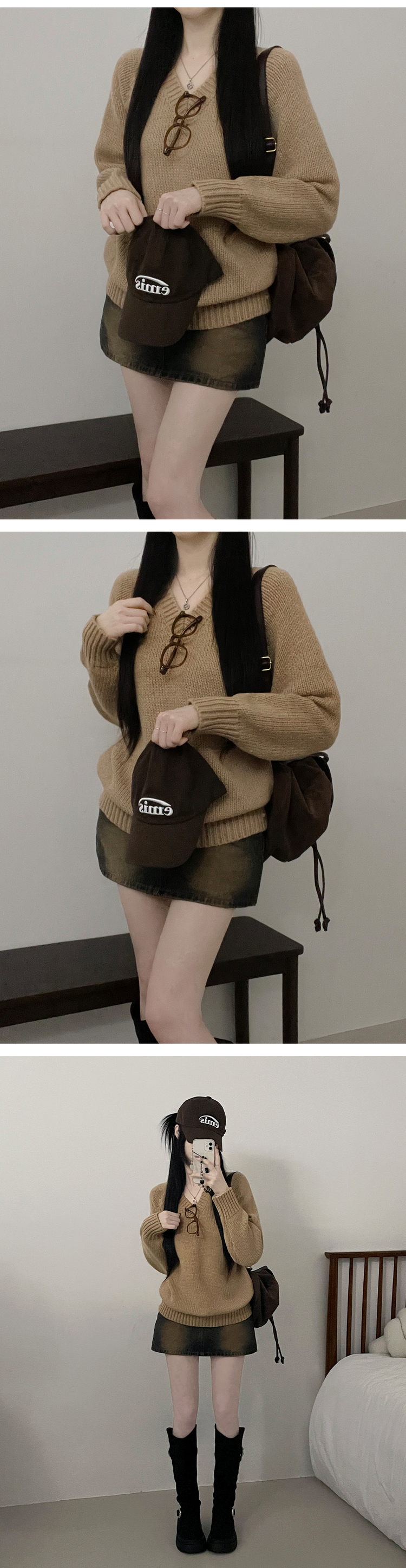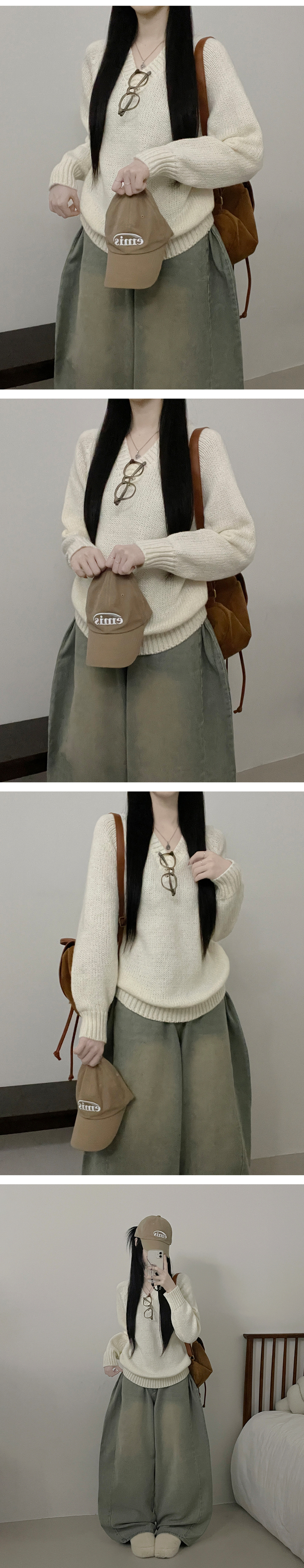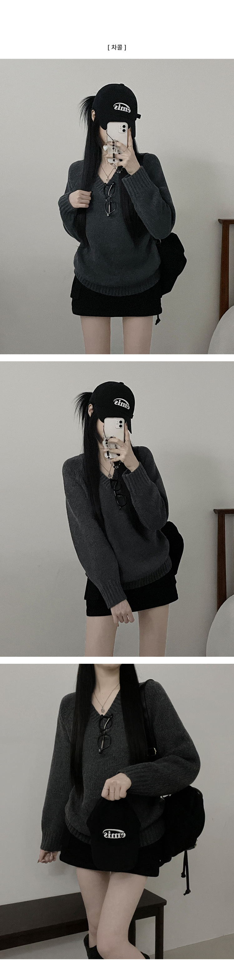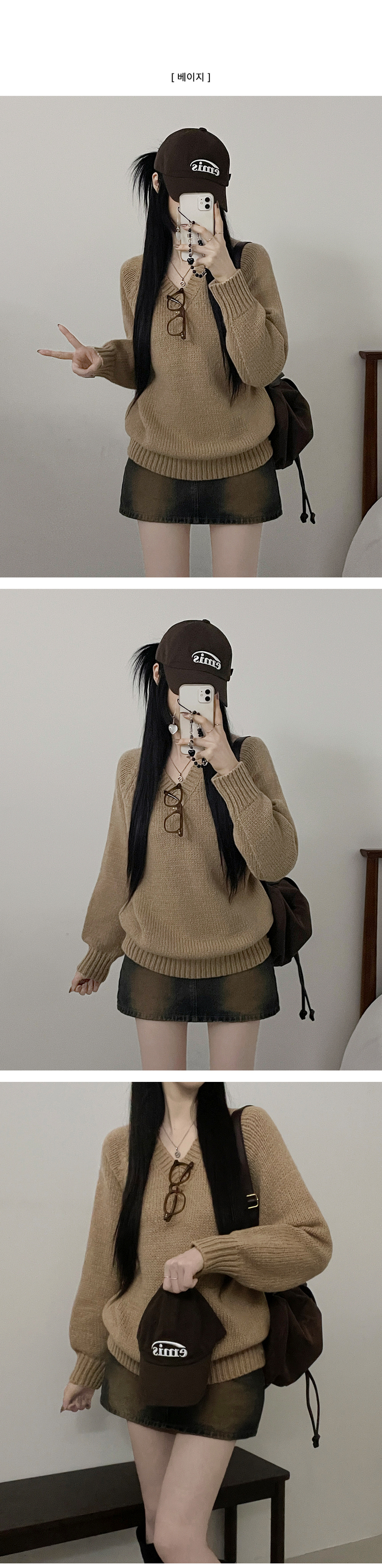 SNT34147 도톰아방핏벌룬하찌나그랑브이넥긴팔니트