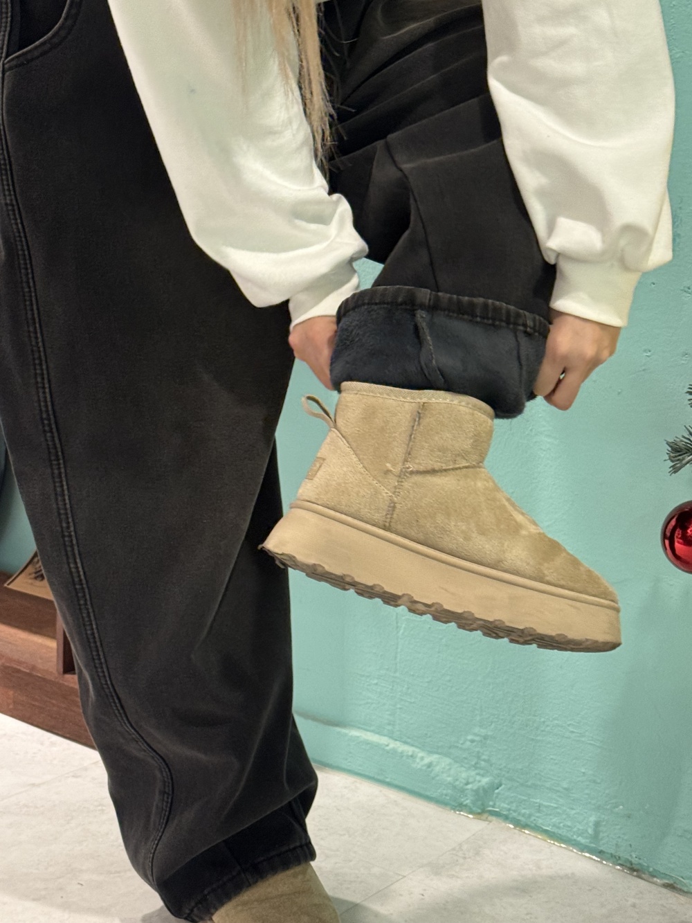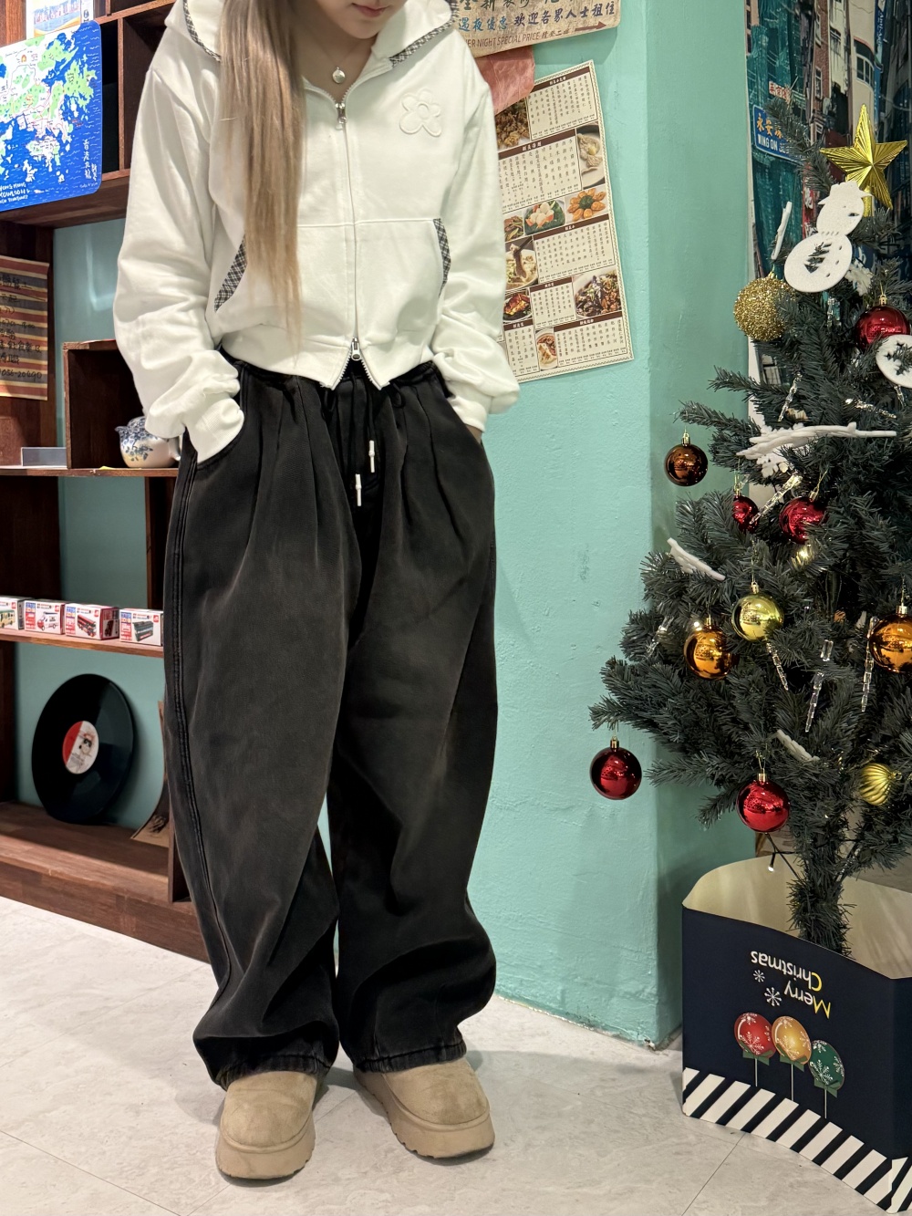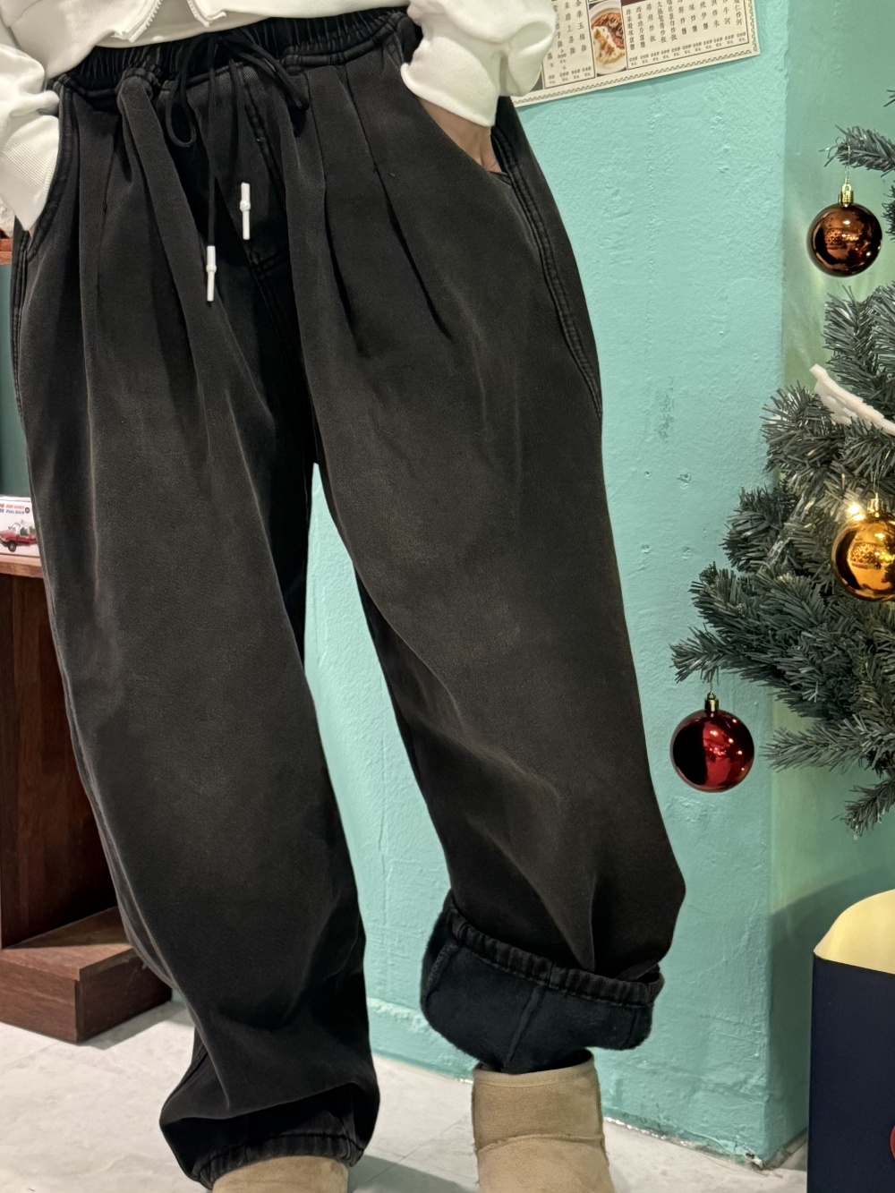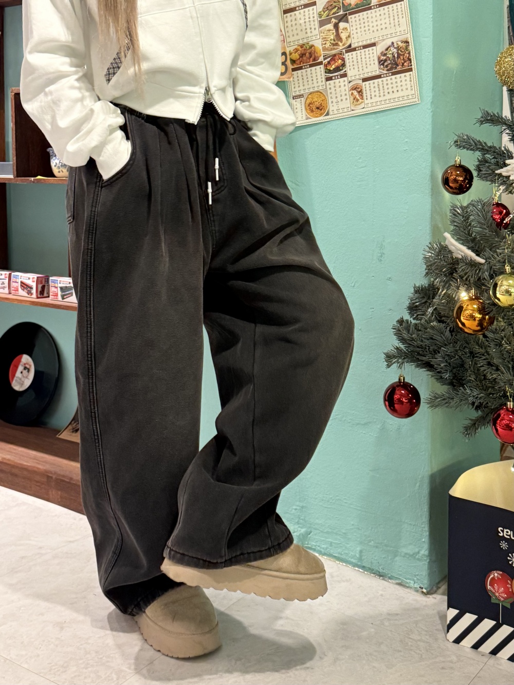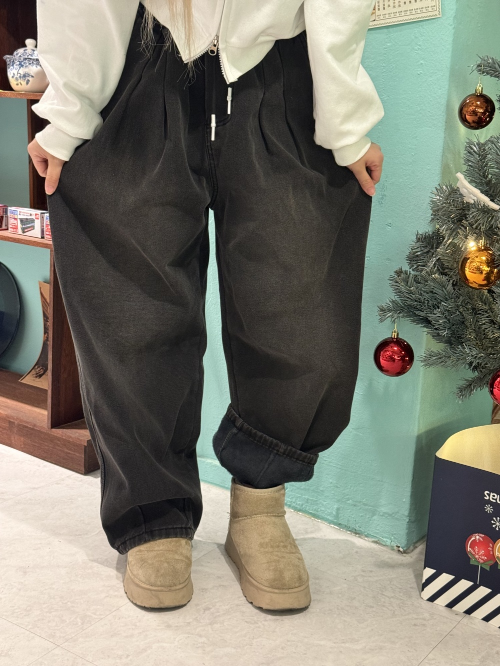 SJE13431 (융털기모) 벌룬 와이드 핀턱 데님 팬츠