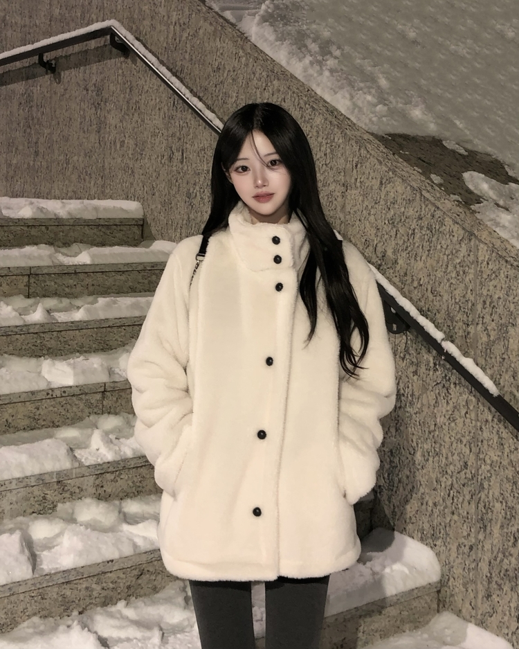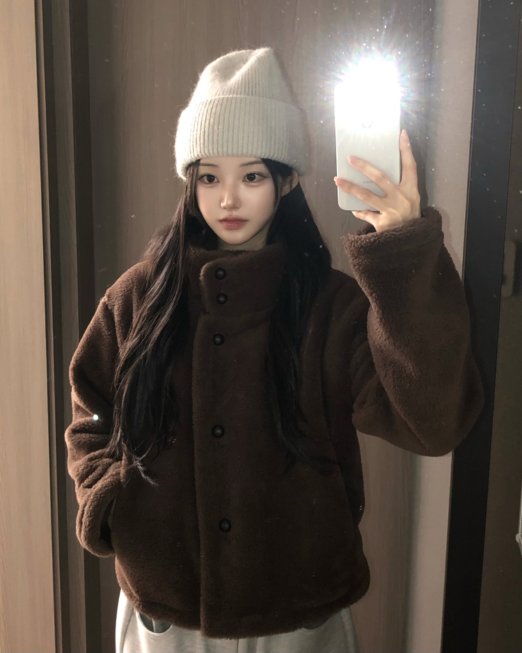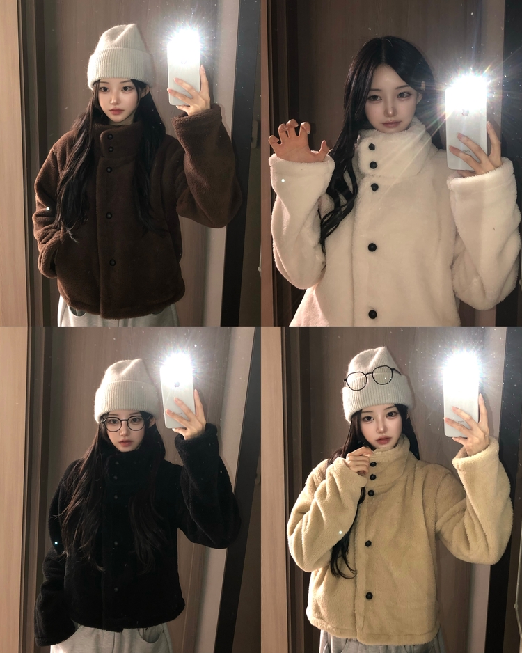 SJP19624 몽글 하이넥 투버튼 고밀도 퍼 양털 겨울 코트