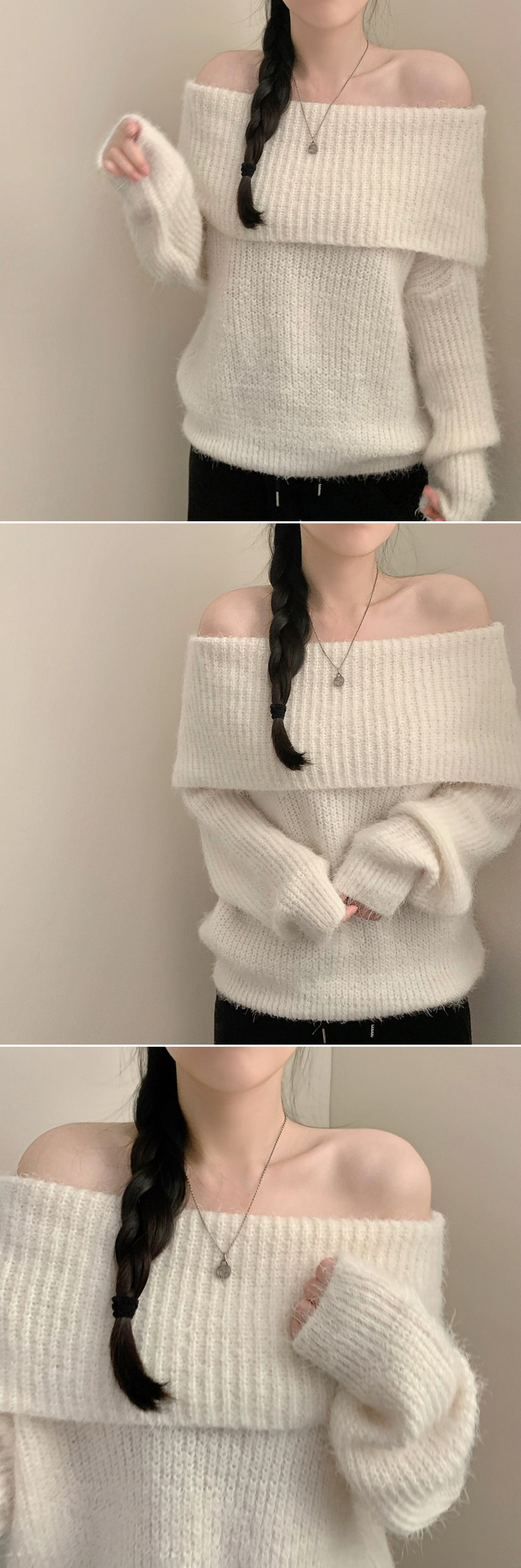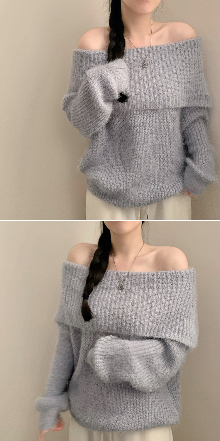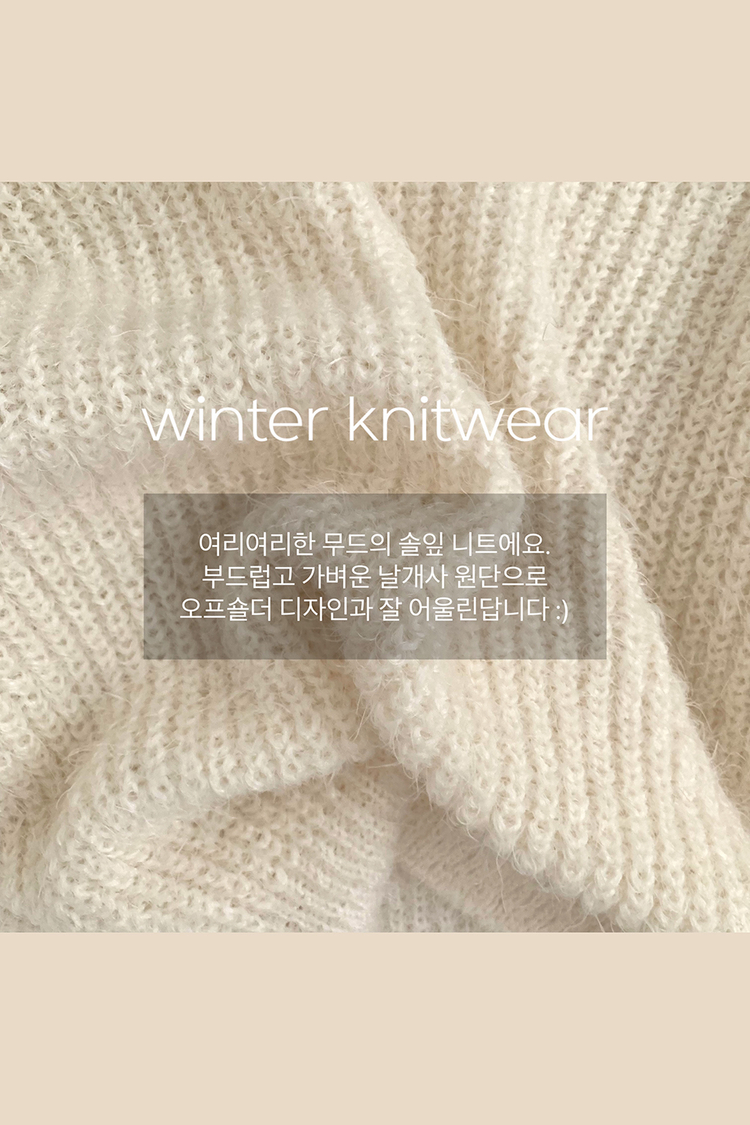 SNT34172 제니 솔잎 오프숄더 긴팔 니트 연말룩 크리스마스 여리여리 청순