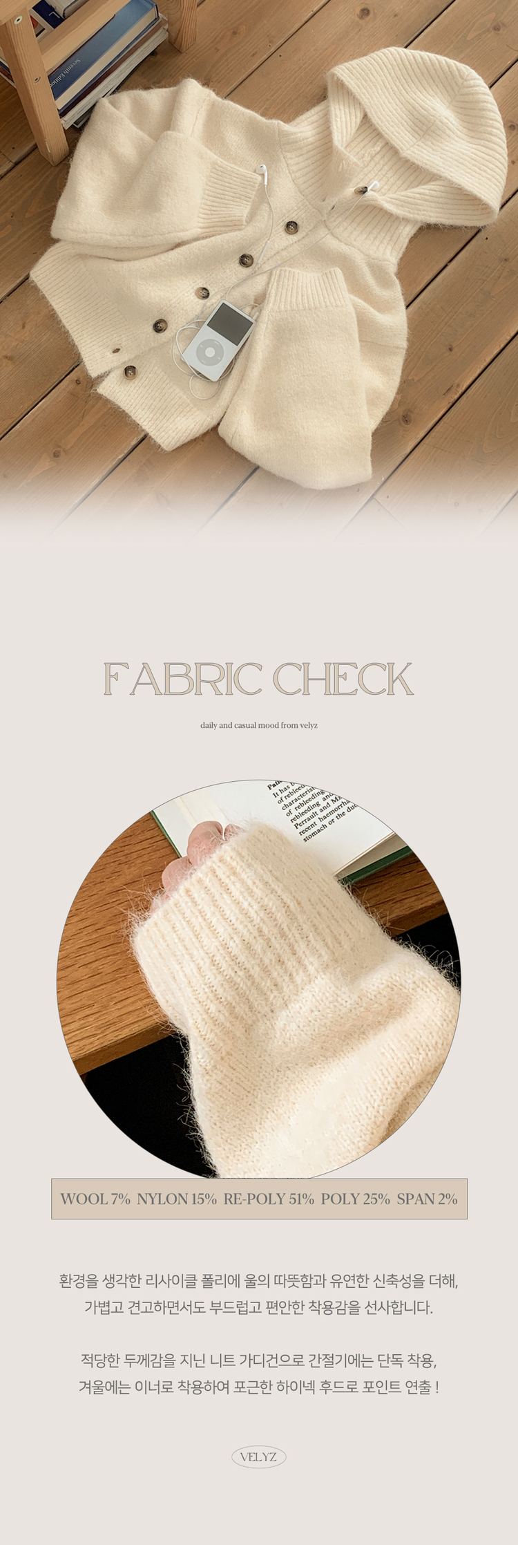 | 素材 | 울(7%), 나일론(15%), 리싸이클 폴리에스터(51%), 폴리(25%), 스판(2%) |