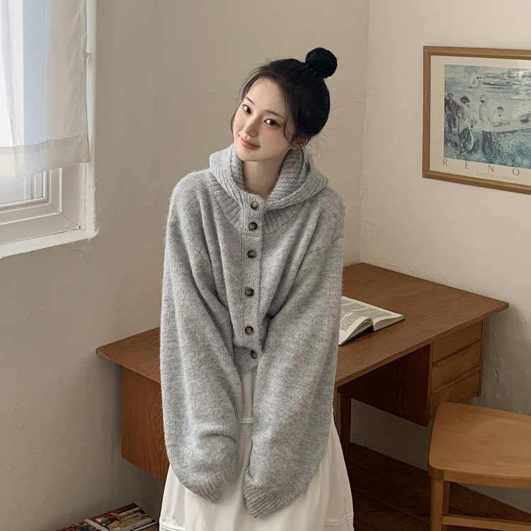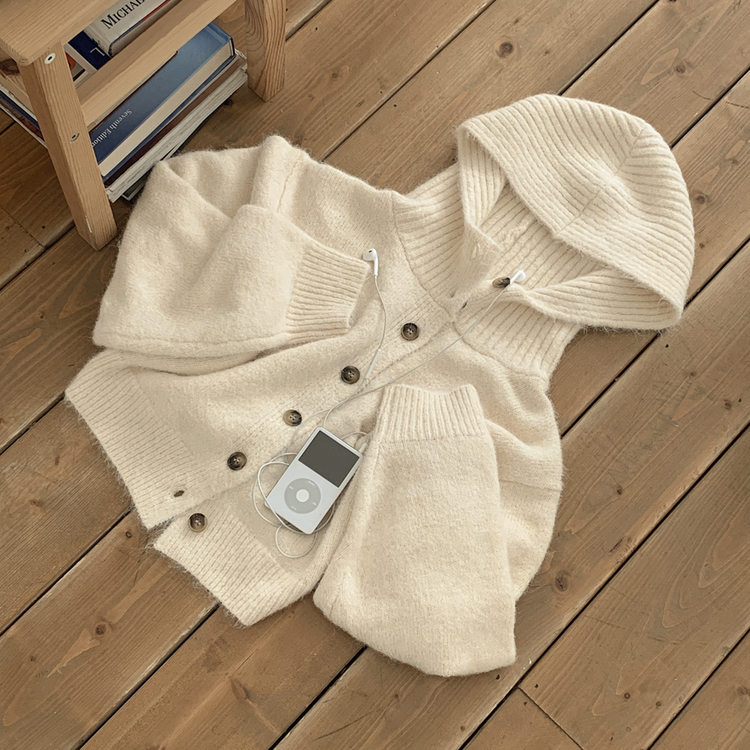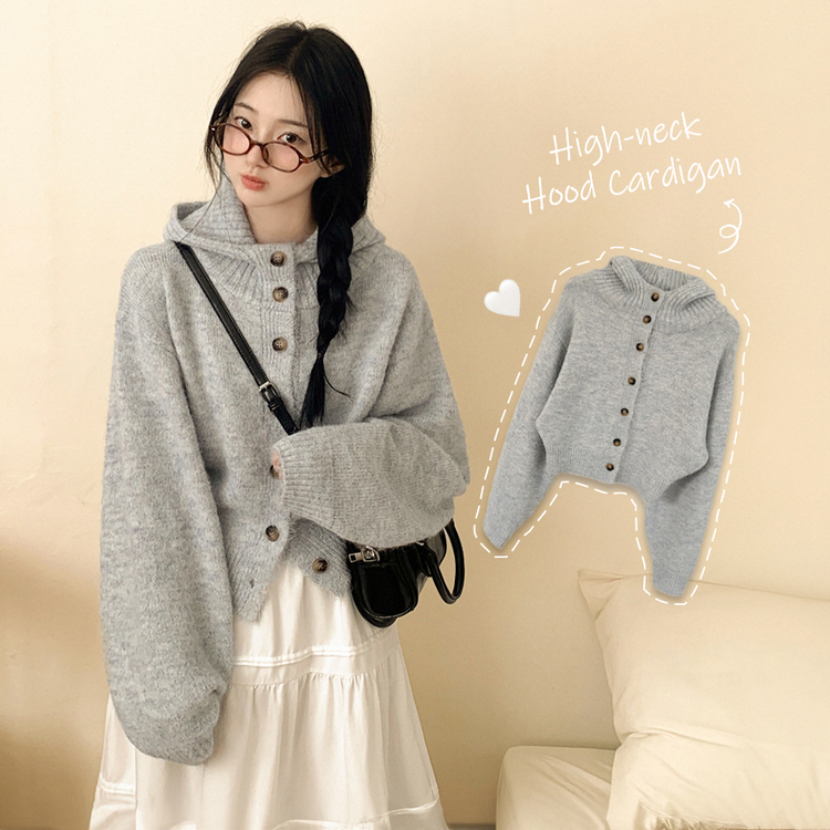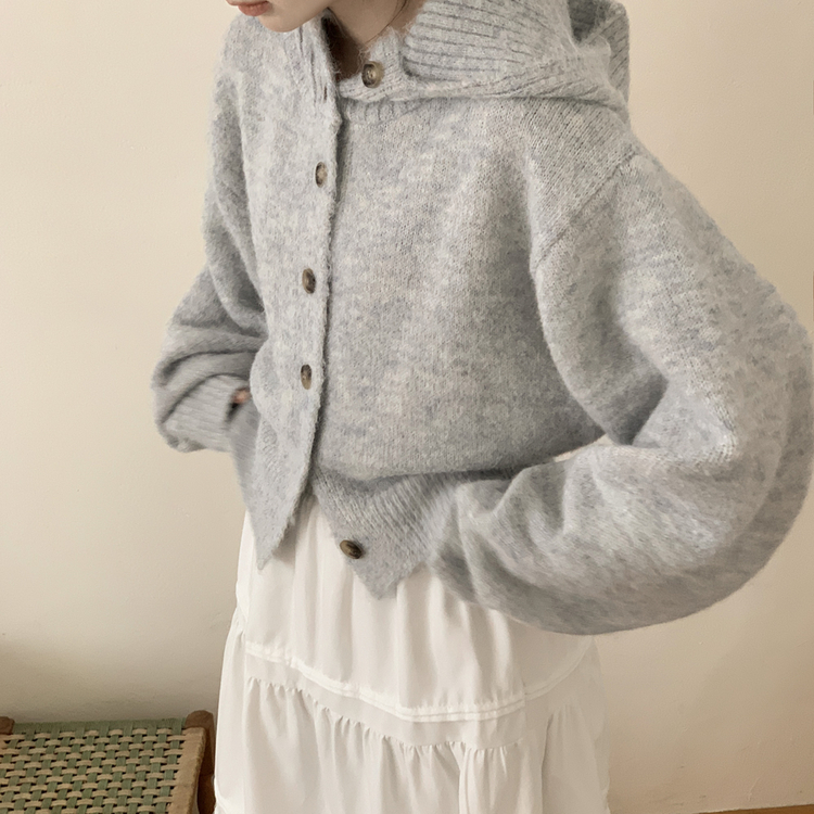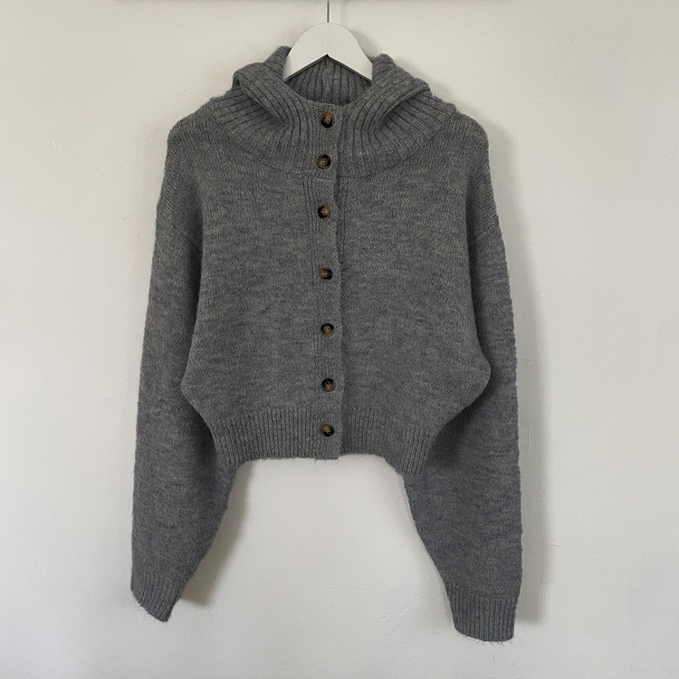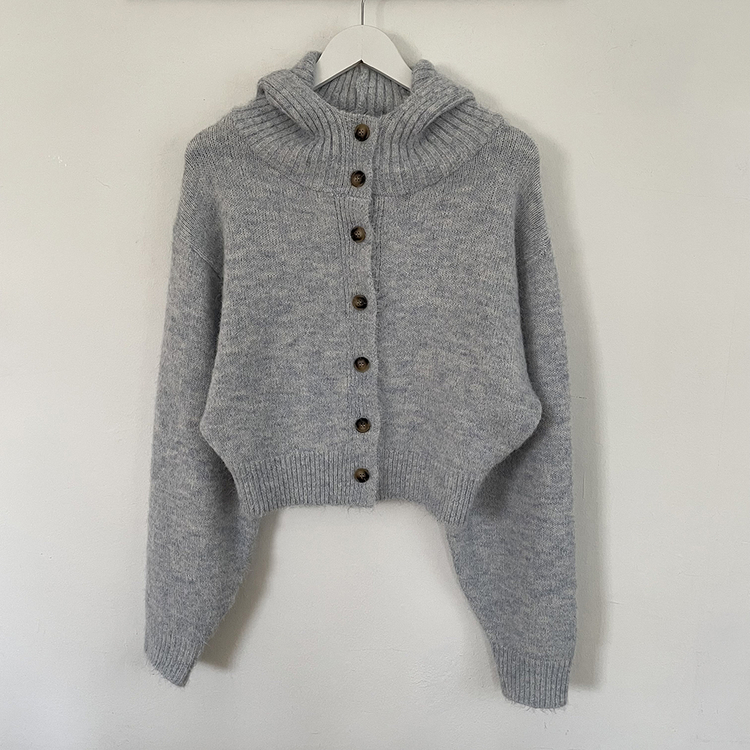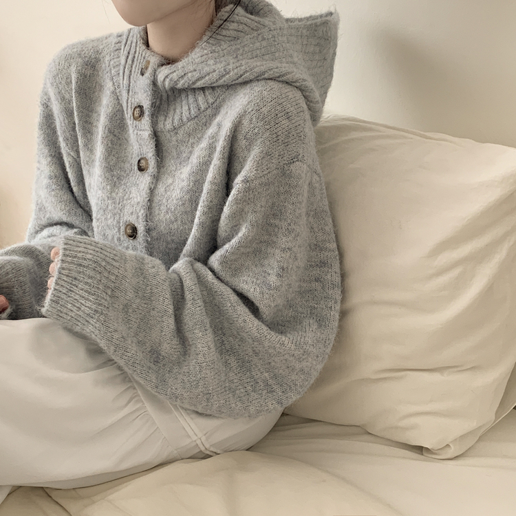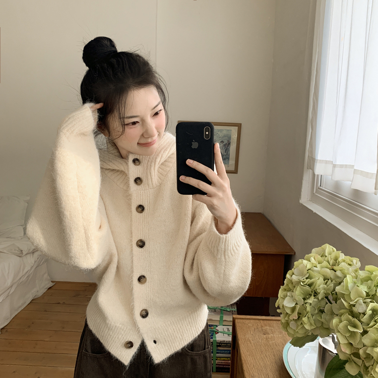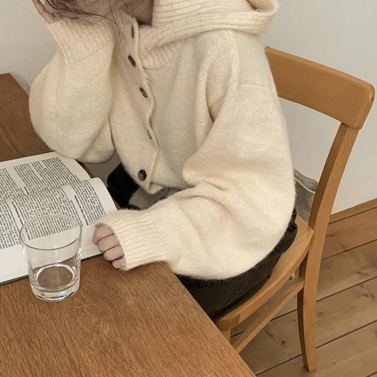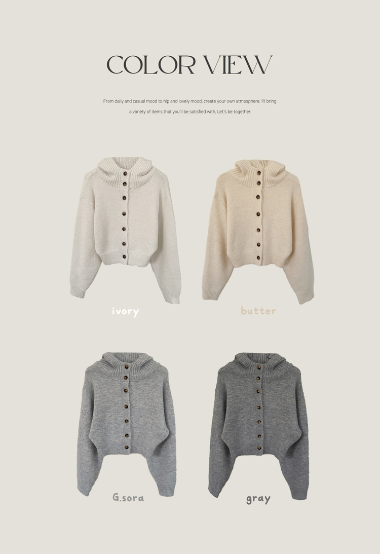 SGD30225 하이넥 후드 버튼 박시핏 겨울 도톰 벌룬 니트가디건