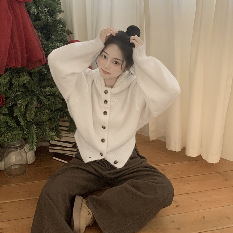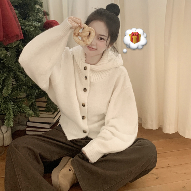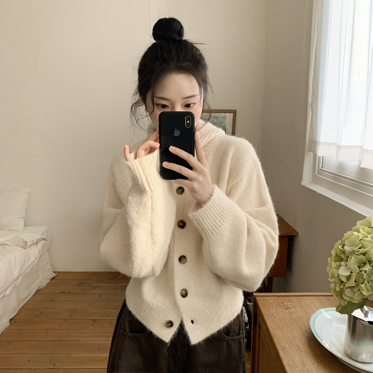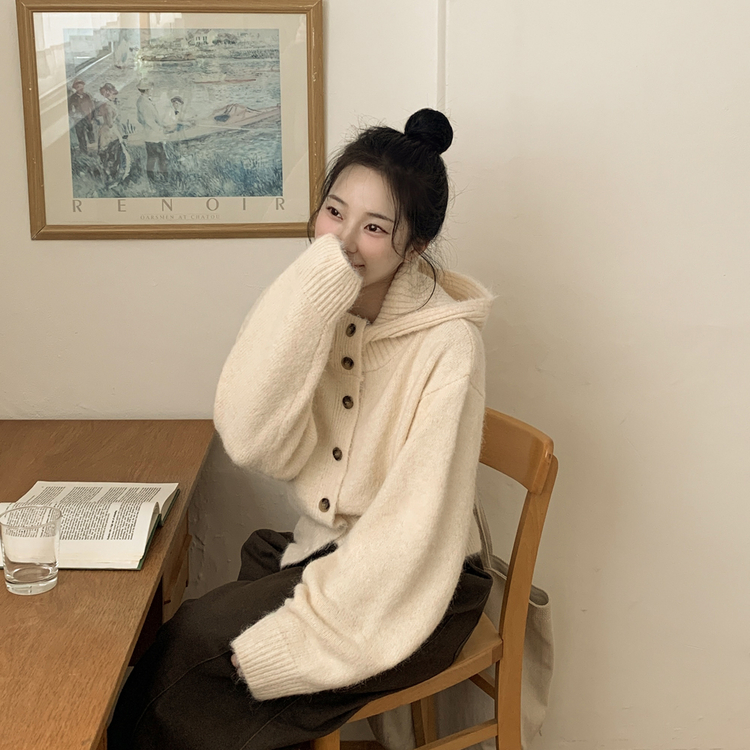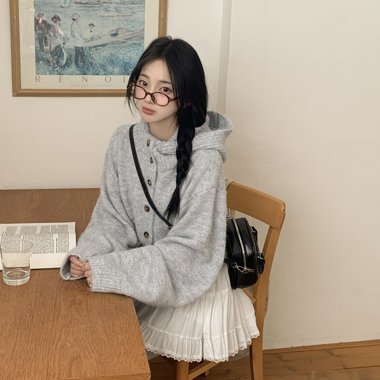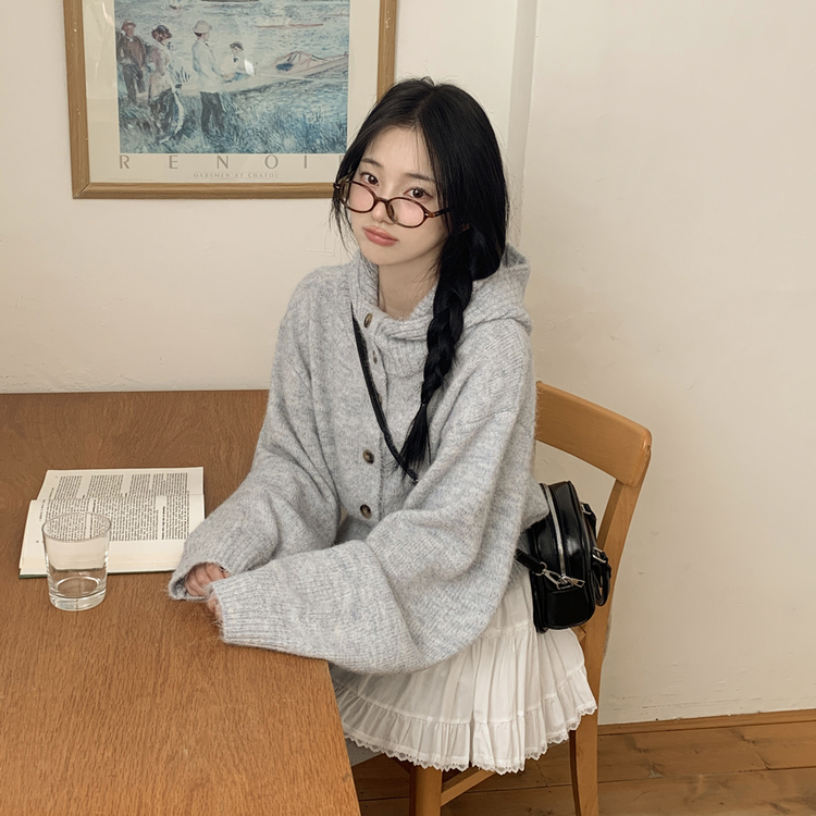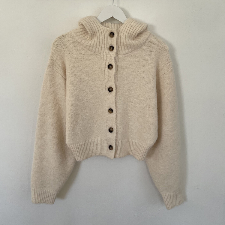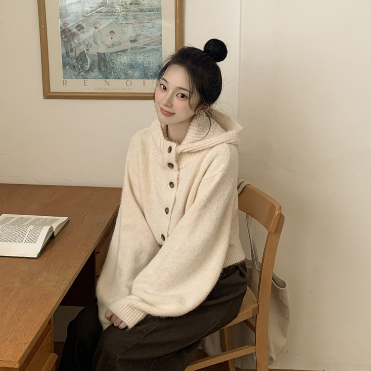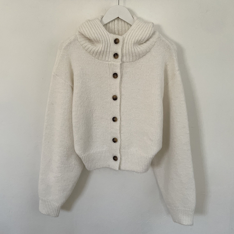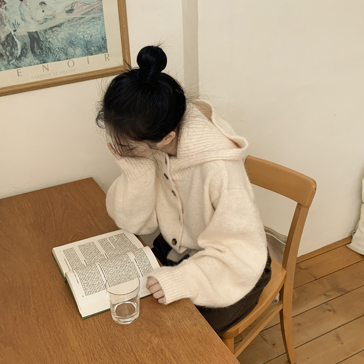SGD30225 하이넥 후드 버튼 박시핏 겨울 도톰 벌룬 니트가디건