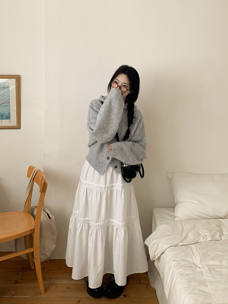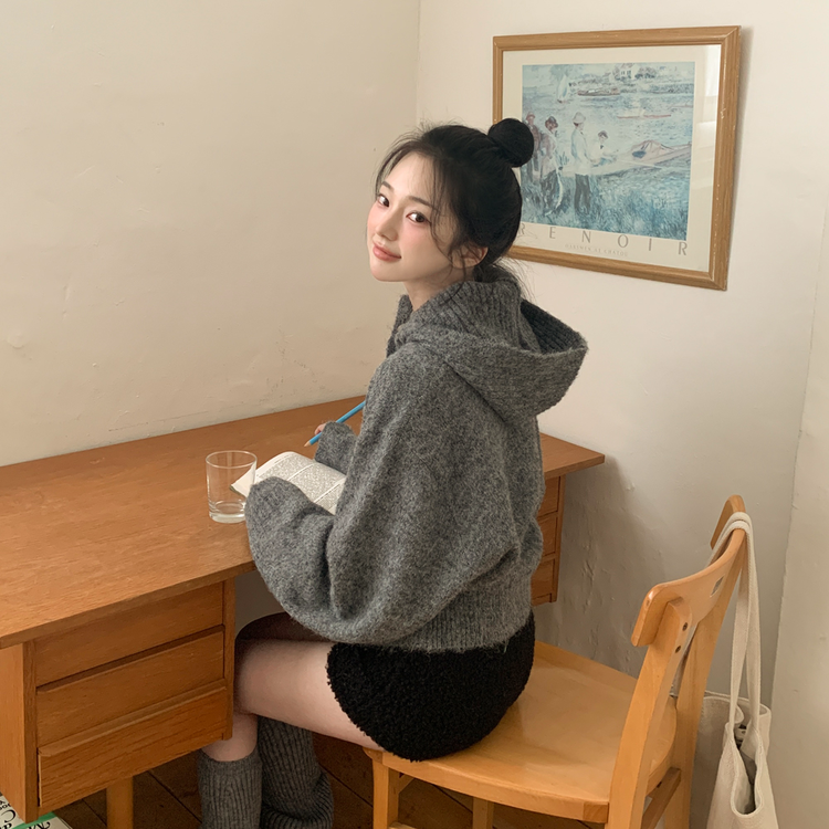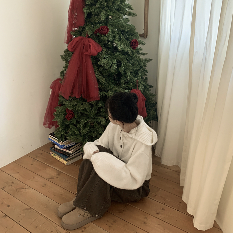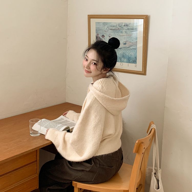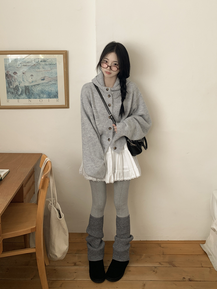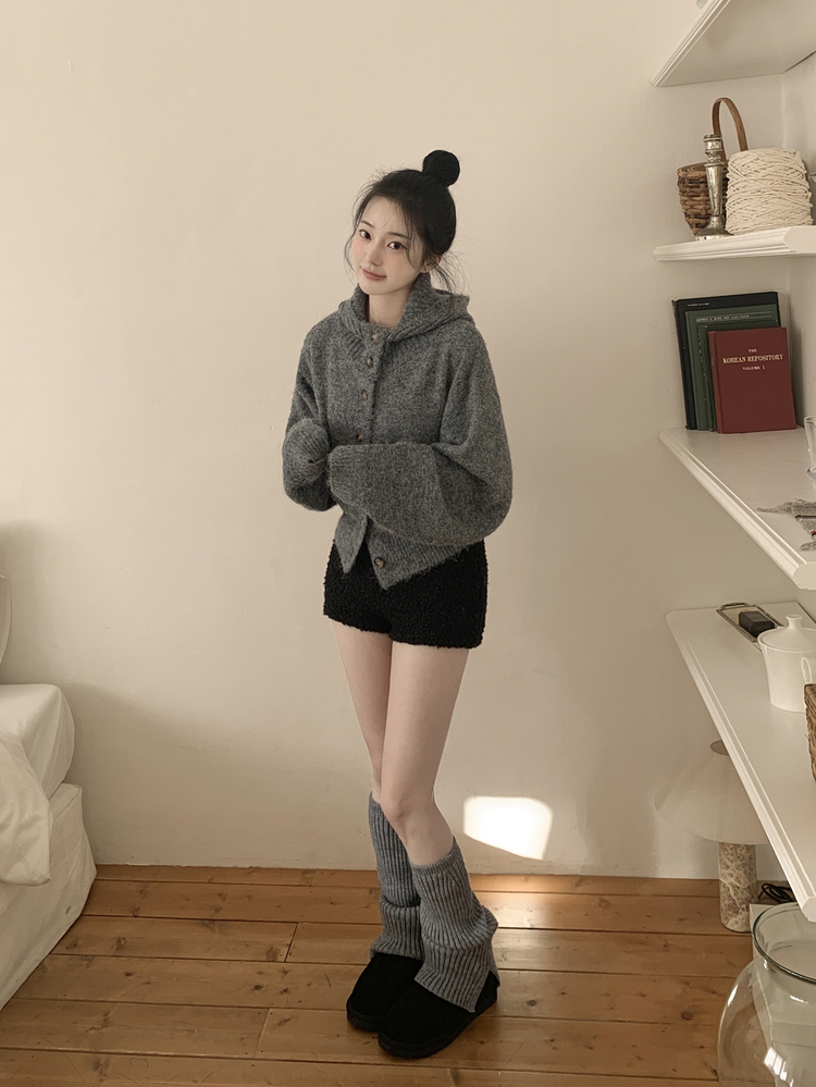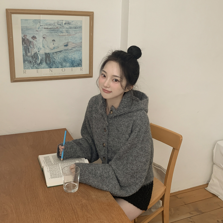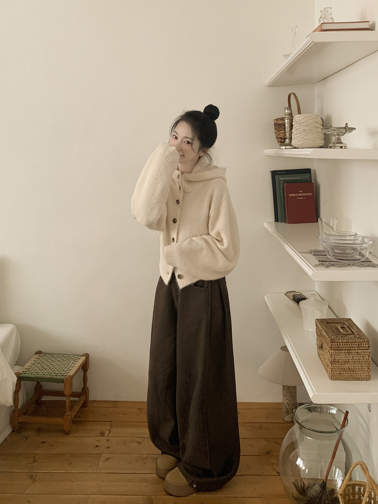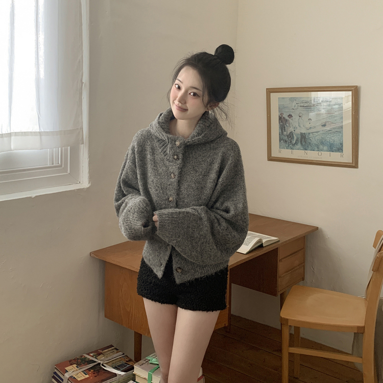 SGD30225 하이넥 후드 버튼 박시핏 겨울 도톰 벌룬 니트가디건