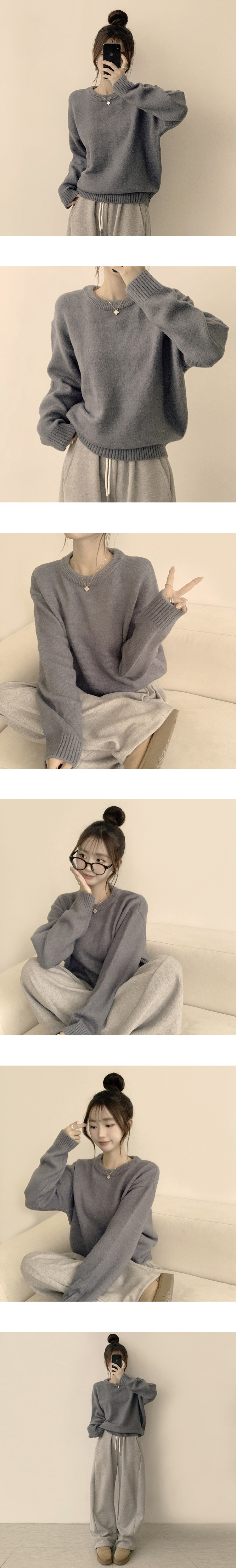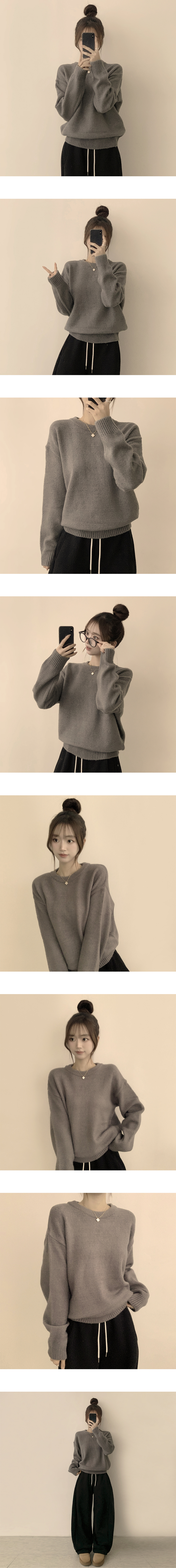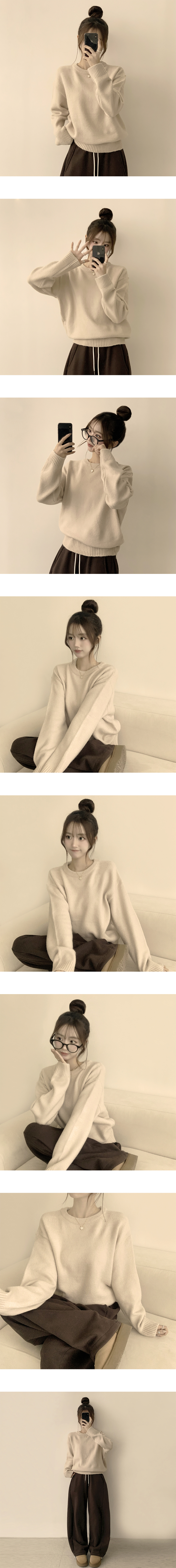 SNT34204 웨이브 라운드 오버핏 겨울 긴팔 니트