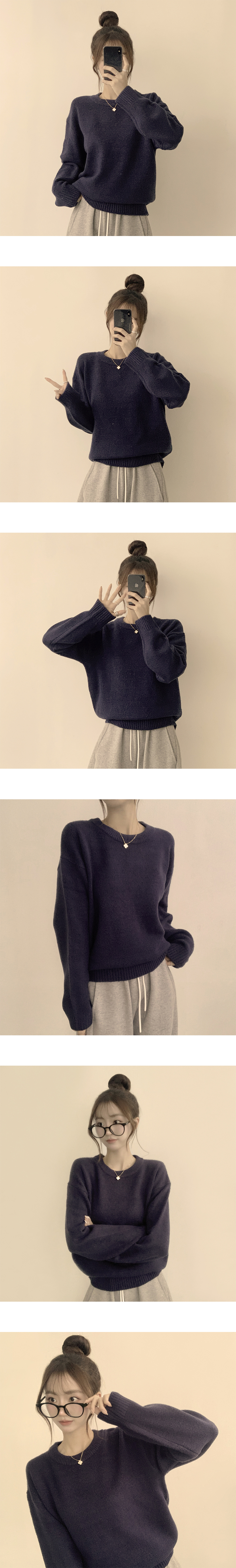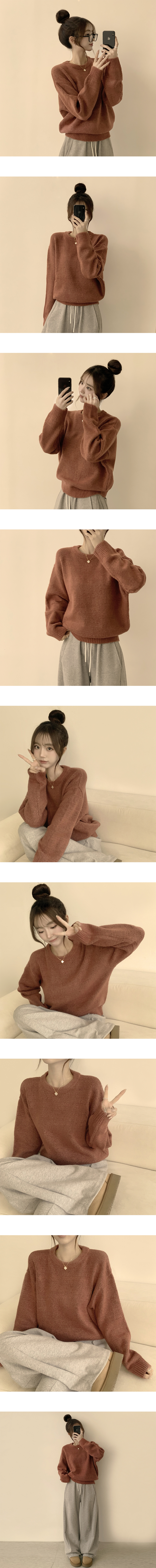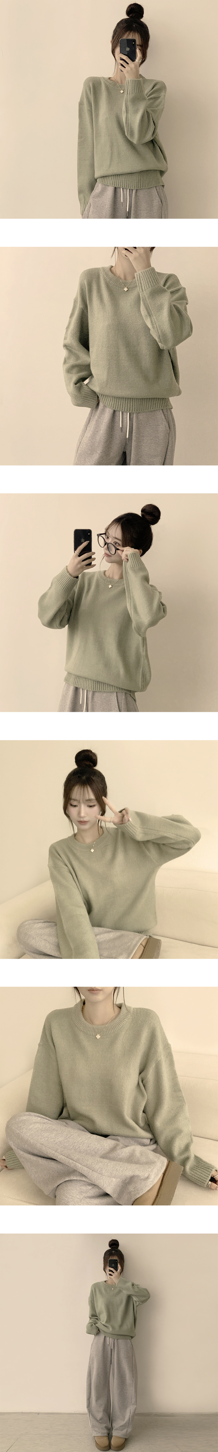 SNT34204 웨이브 라운드 오버핏 겨울 긴팔 니트