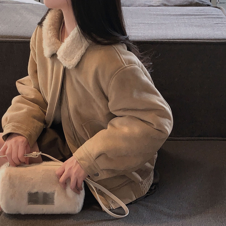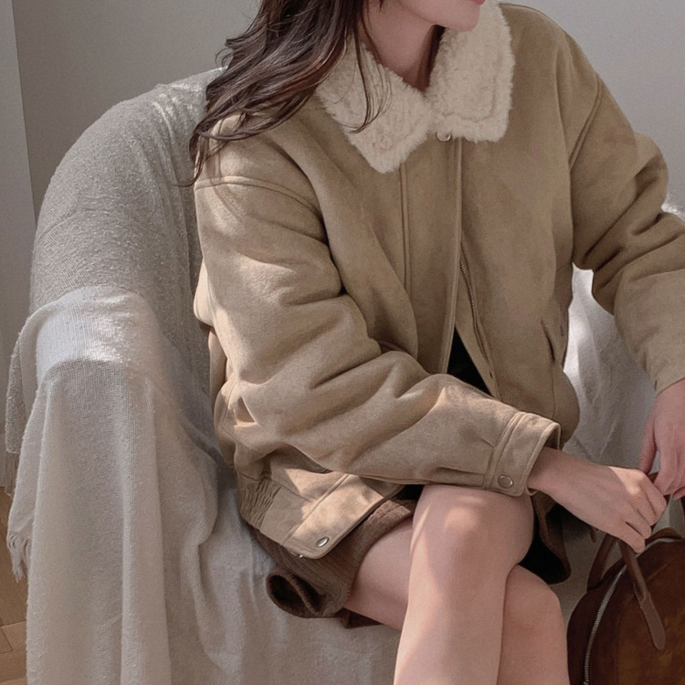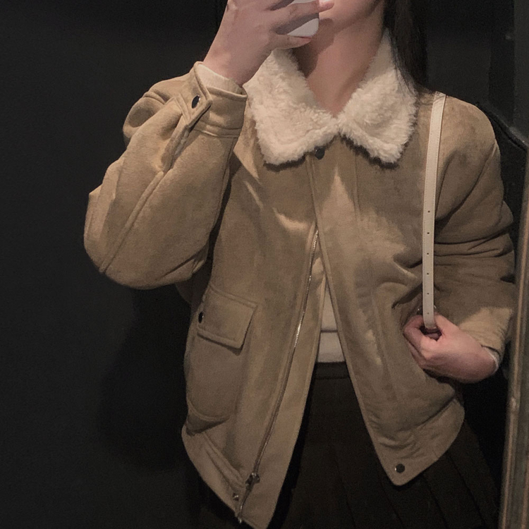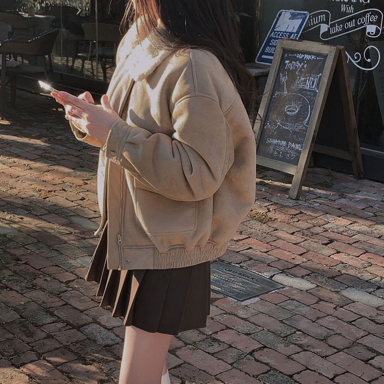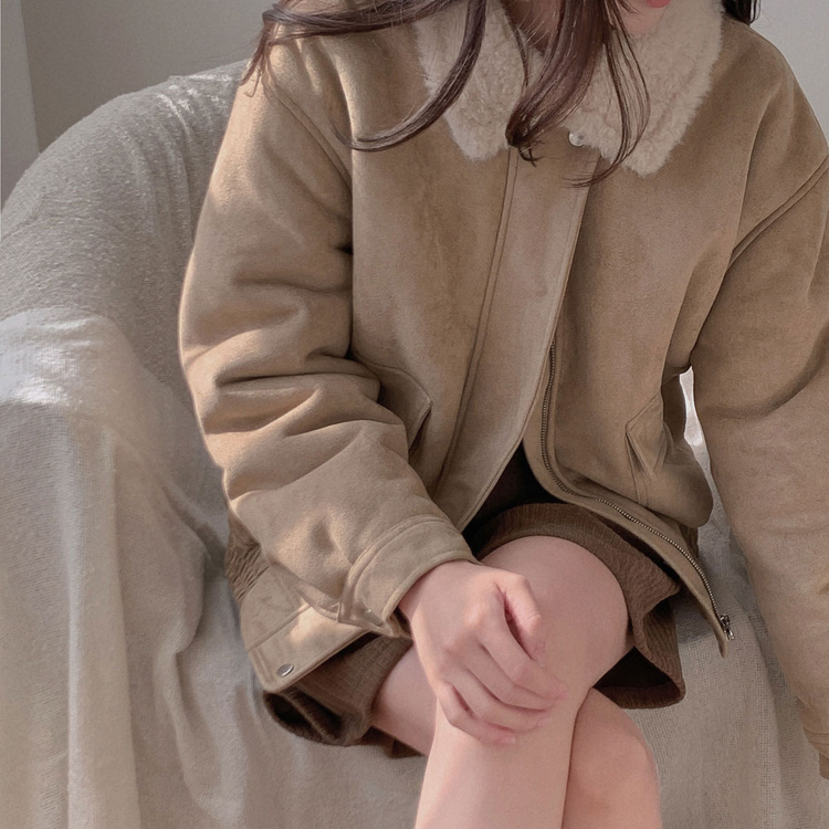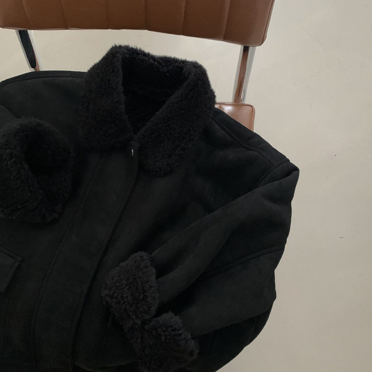 SJK15179 왕따뜻 델리만쥬 스웨이드 양털 무스탕 점퍼 크롭 퍼 자켓