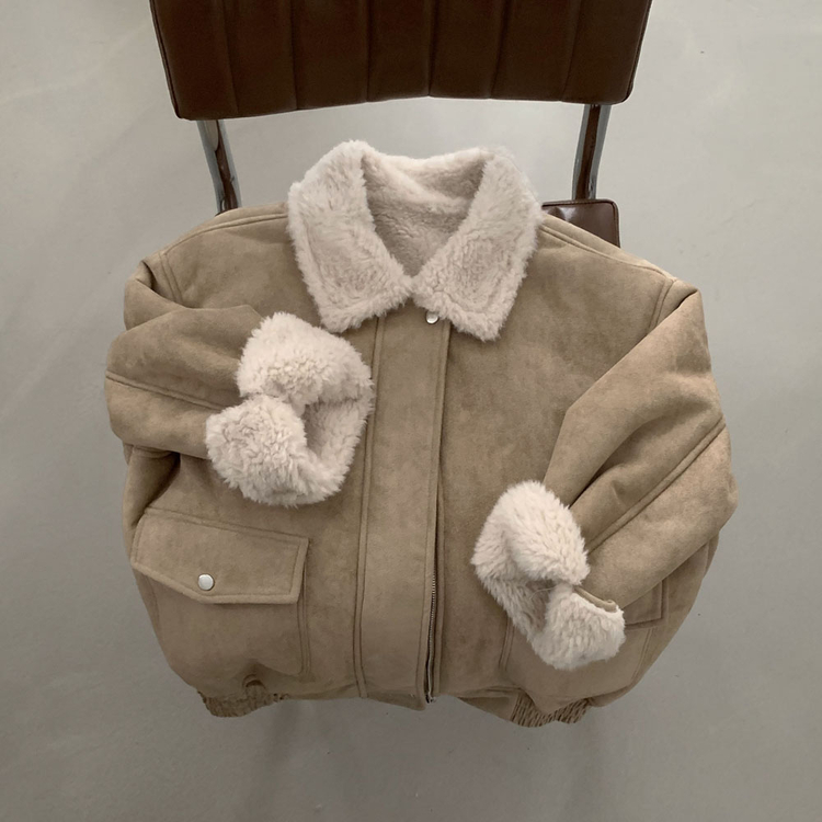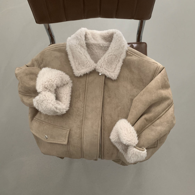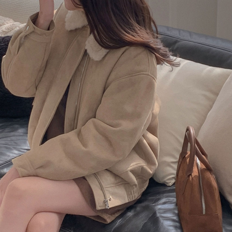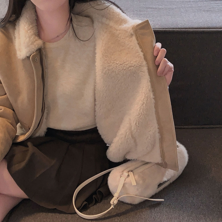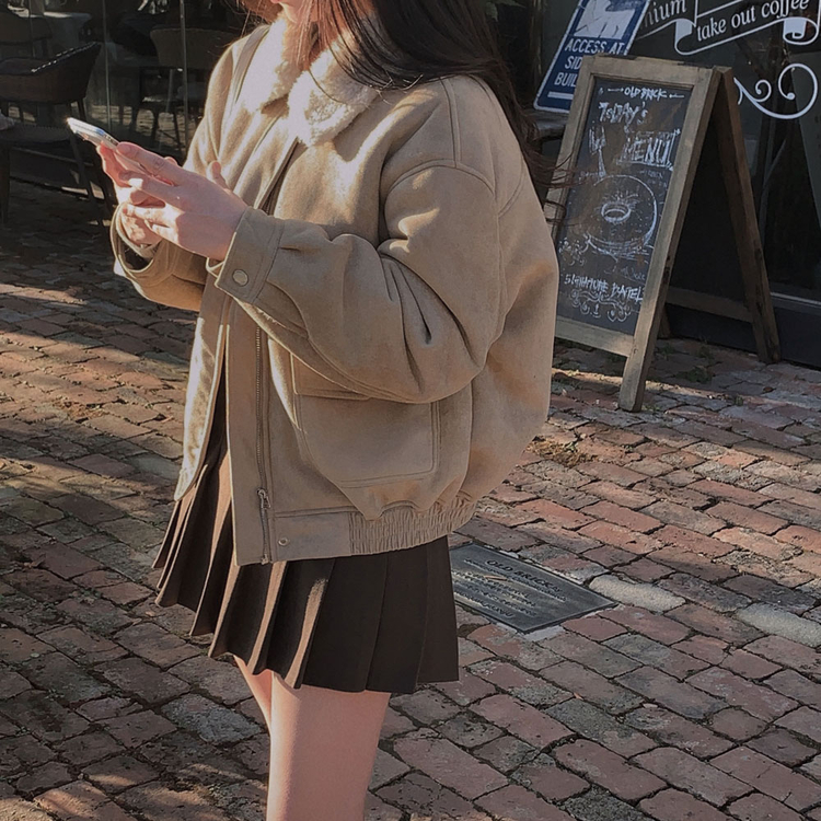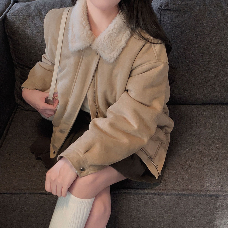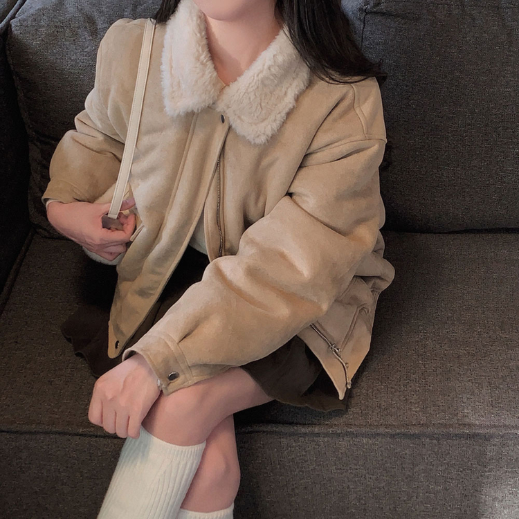 SJK15179 왕따뜻 델리만쥬 스웨이드 양털 무스탕 점퍼 크롭 퍼 자켓