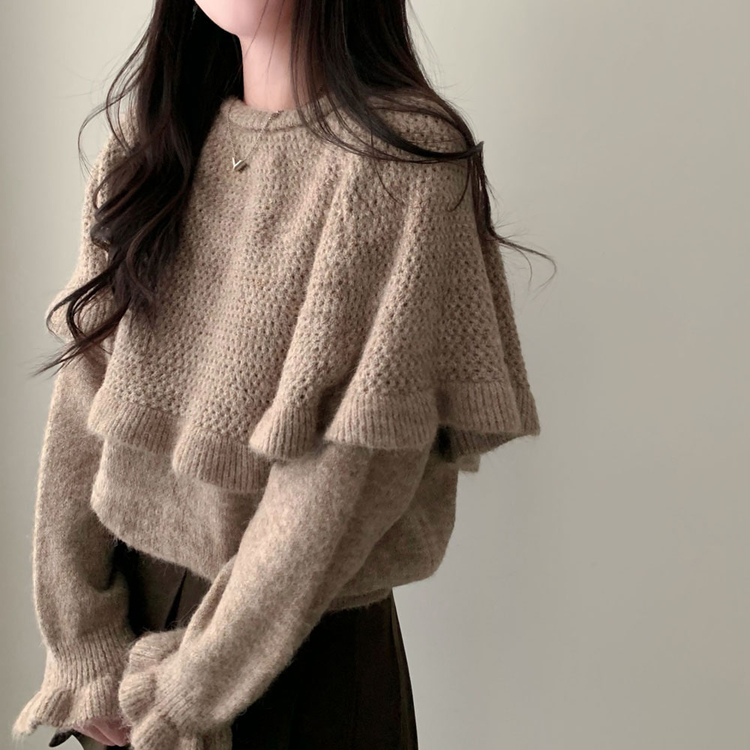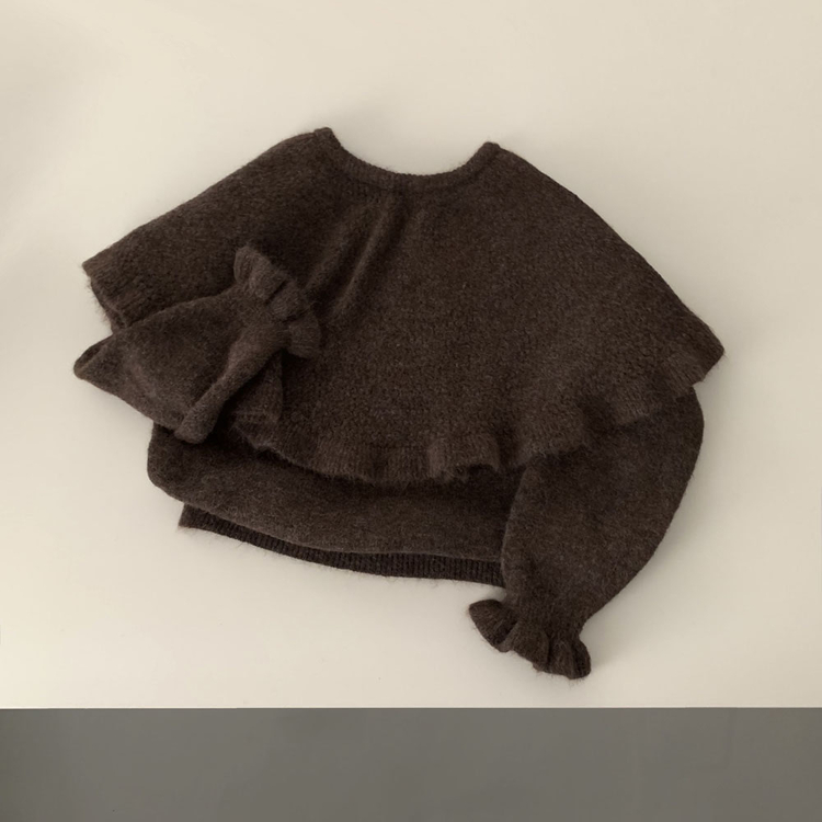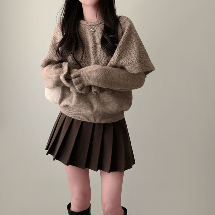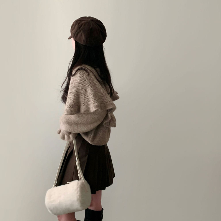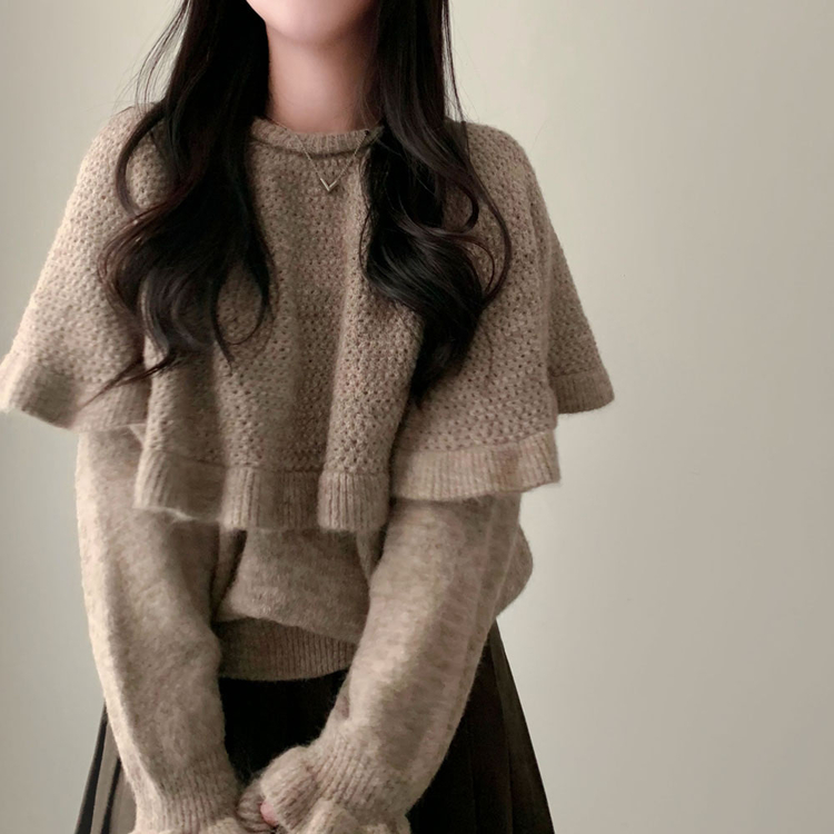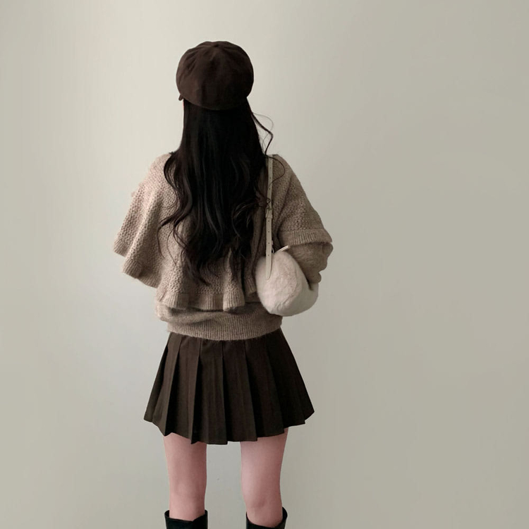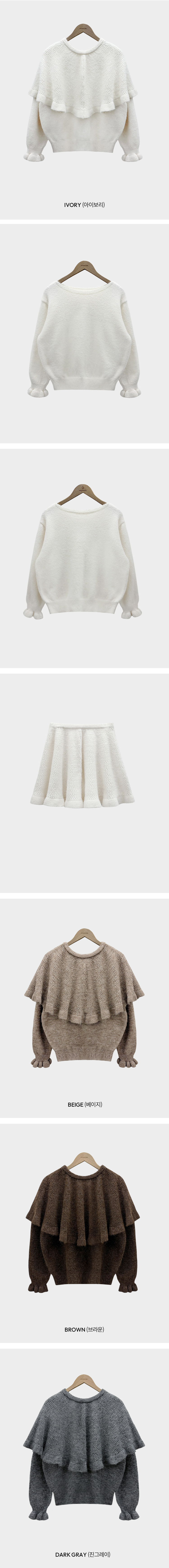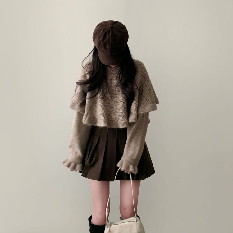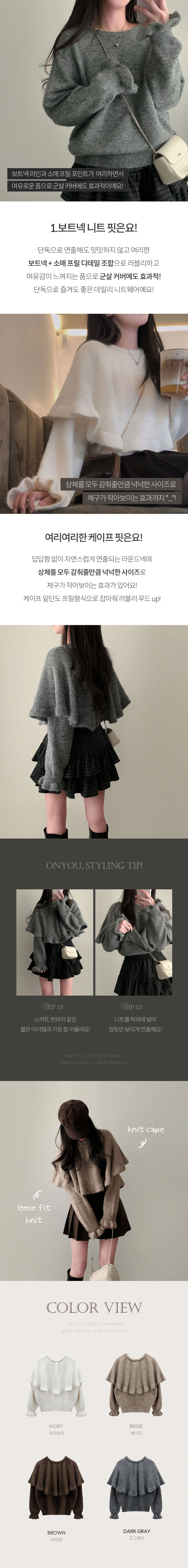SNT34247 보온성 두배포근 보트넥 루즈핏 니트 케이프 숄 망토 세트