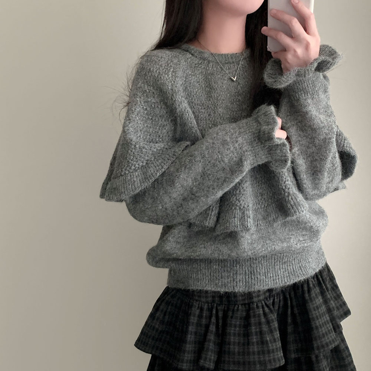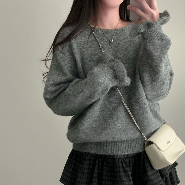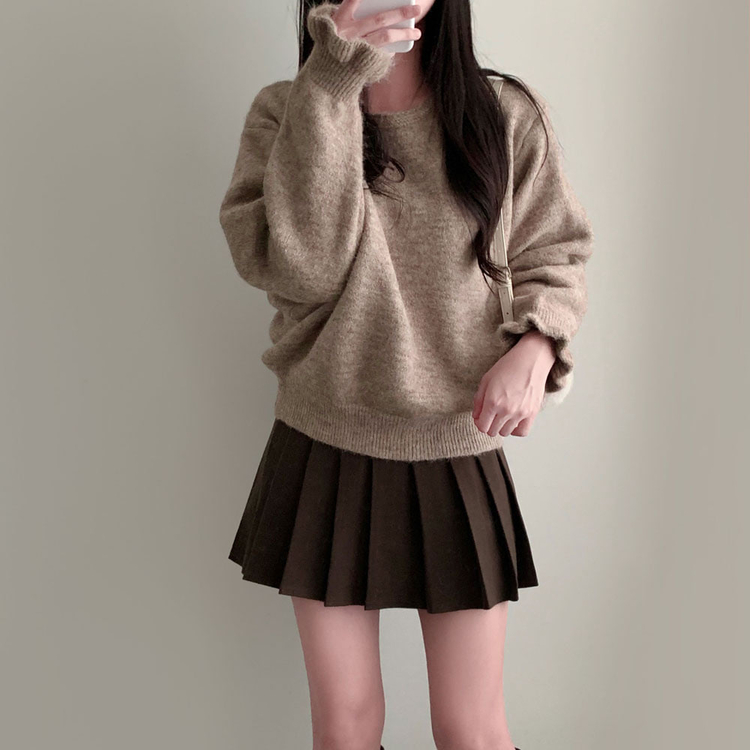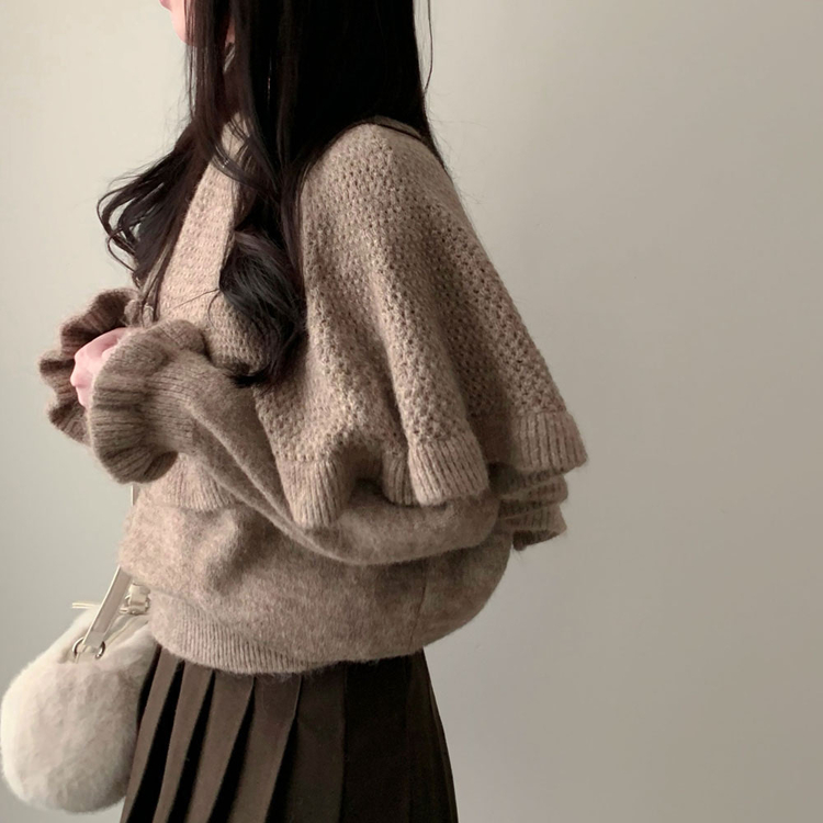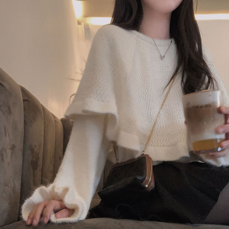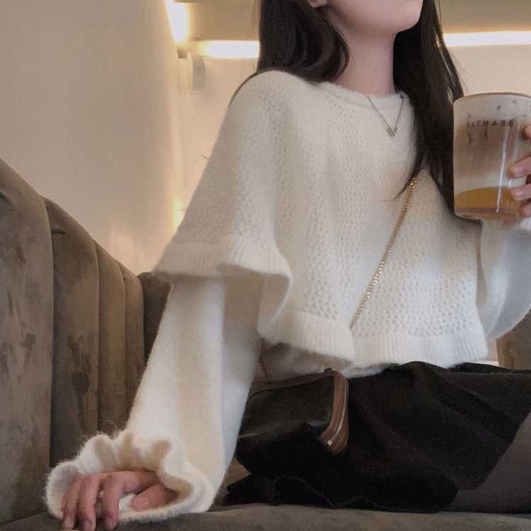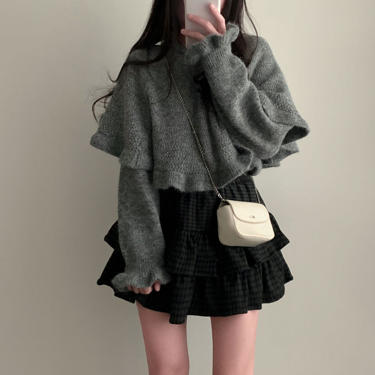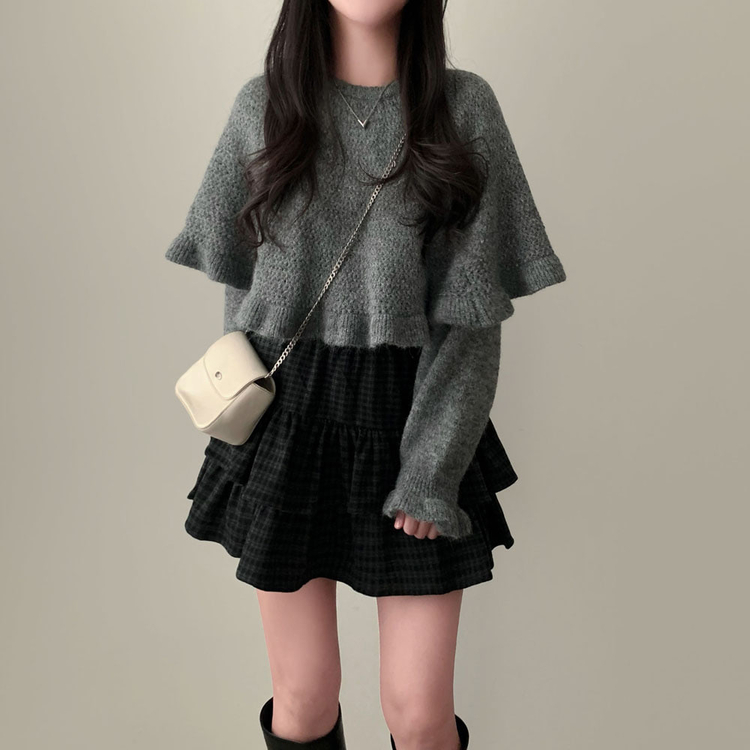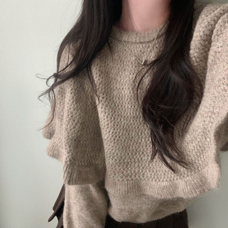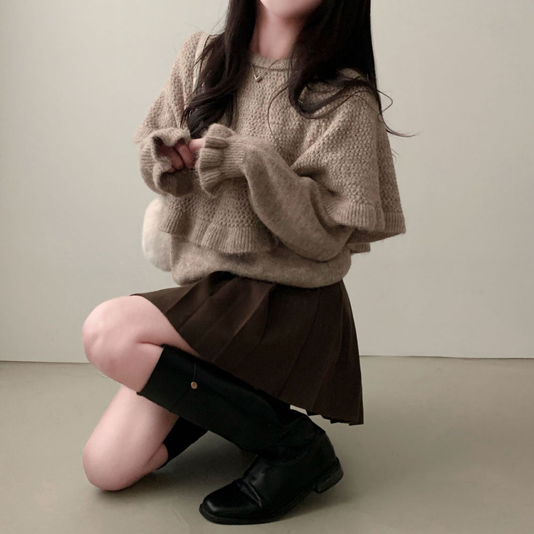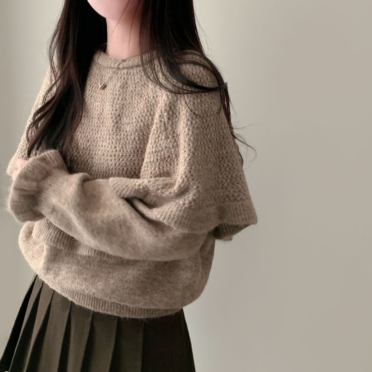 SNT34247 보온성 두배포근 보트넥 루즈핏 니트 케이프 숄 망토 세트