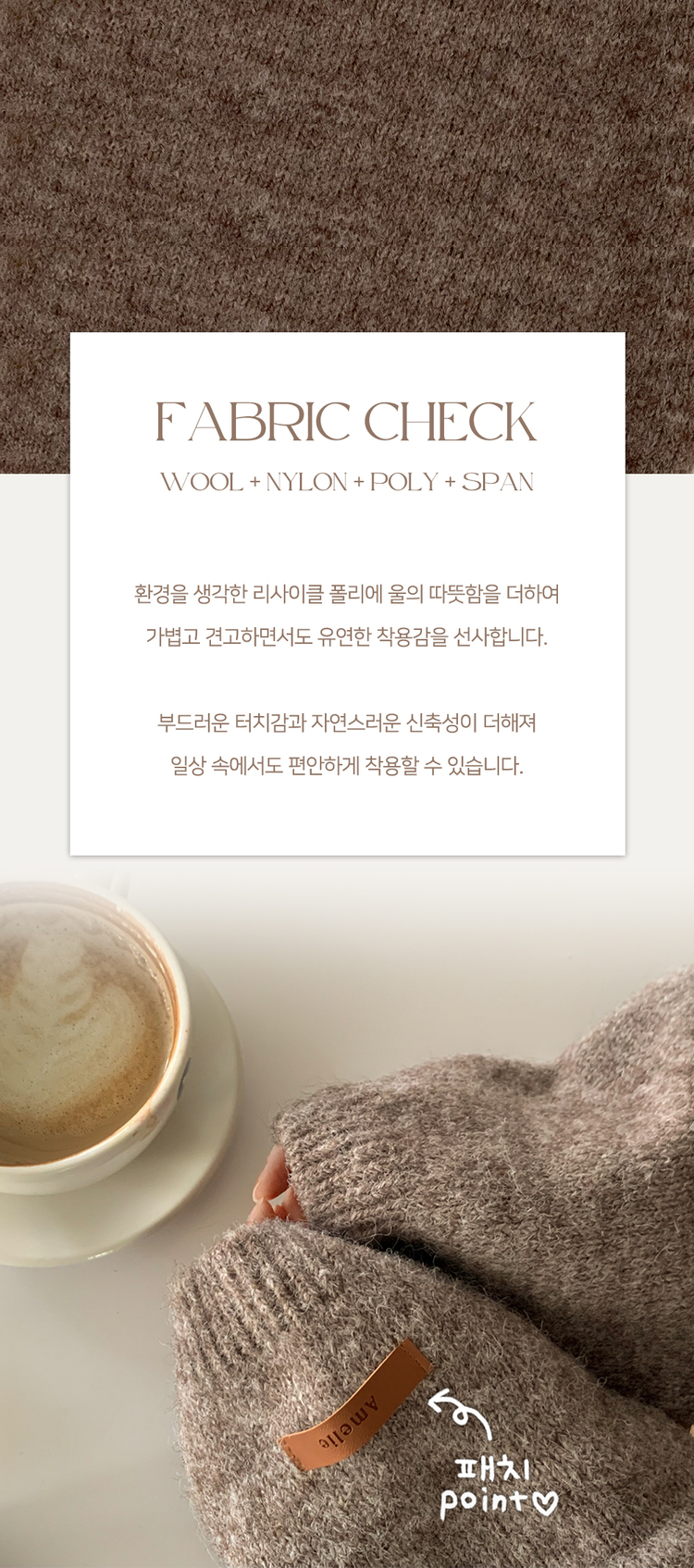 | 素材 | 울(7%), 나일론(15%), 리싸이클 폴리에스터(51%), 폴리(25%), 스판(2%) |