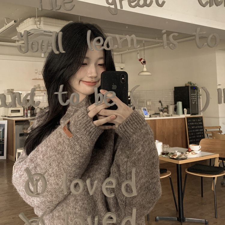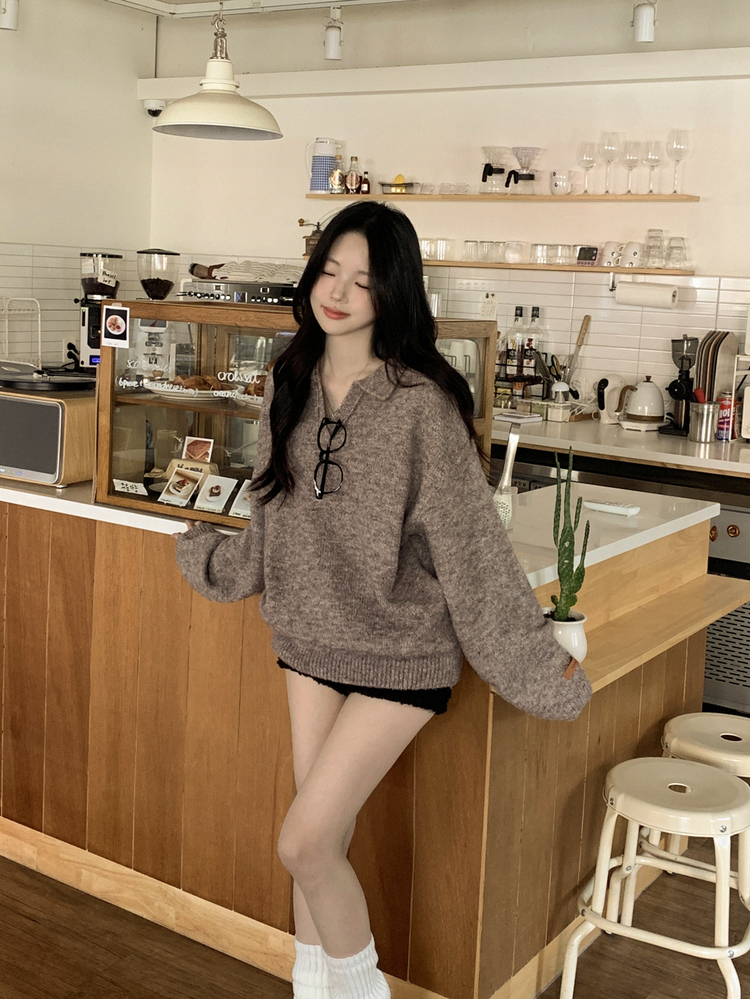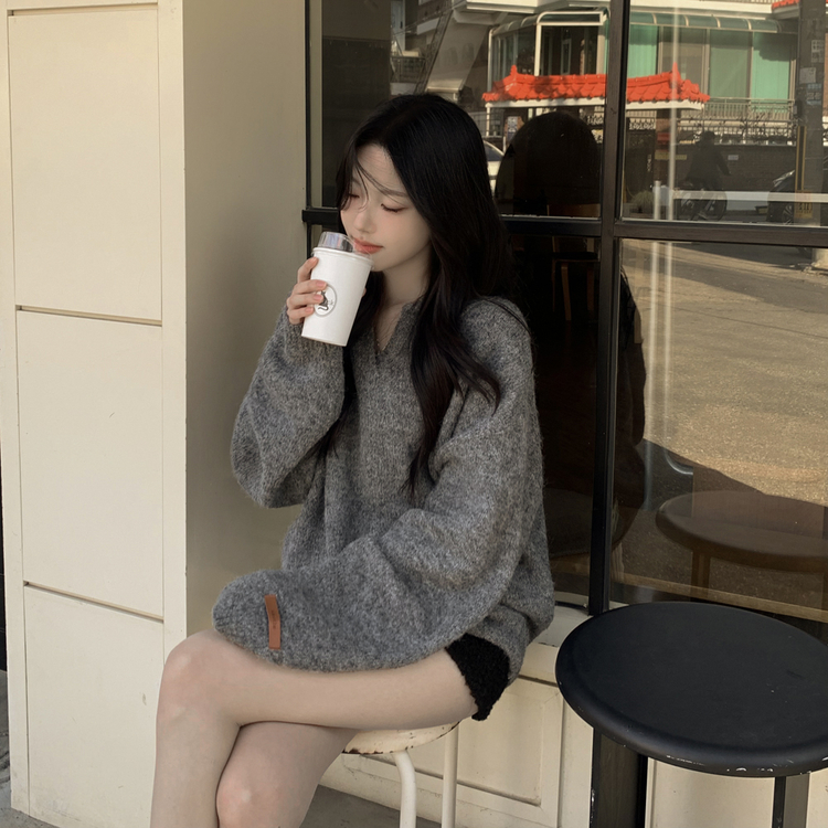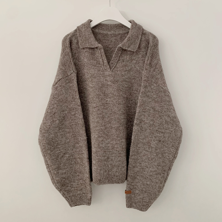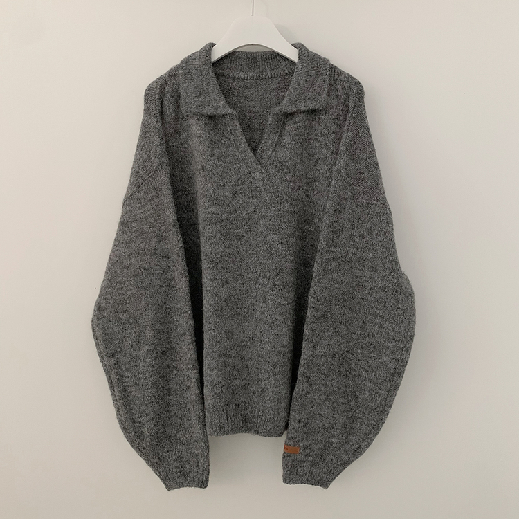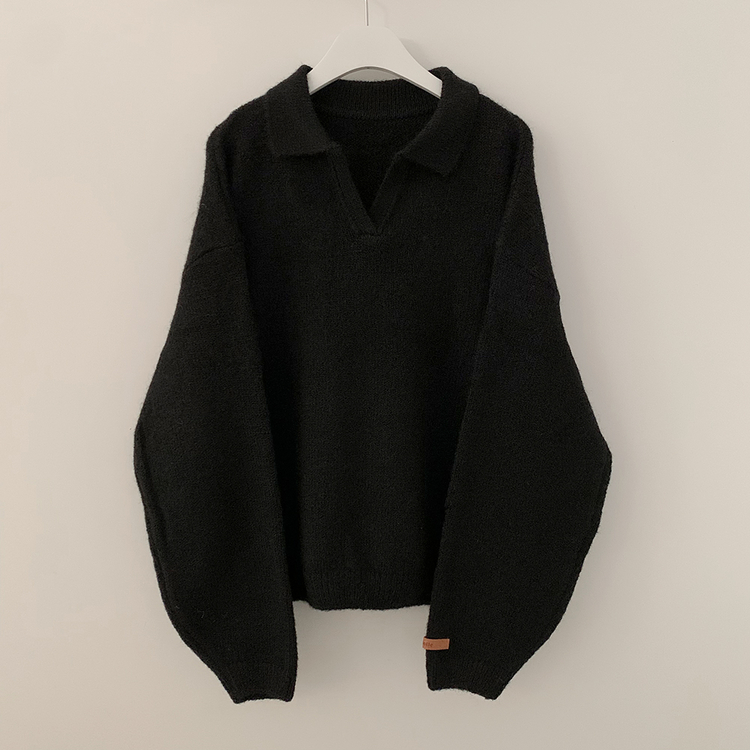SNT34280 도톰따뜻 손목라벨 패치 보카시 오버핏 카라넥 아방핏 벌룬니트 빅사이즈 체형커버