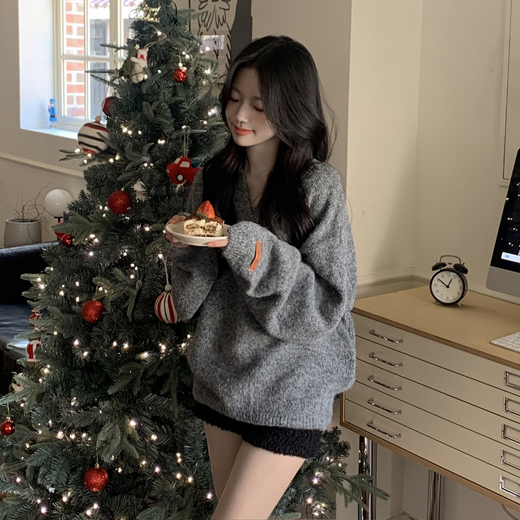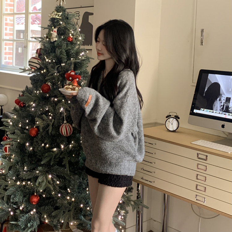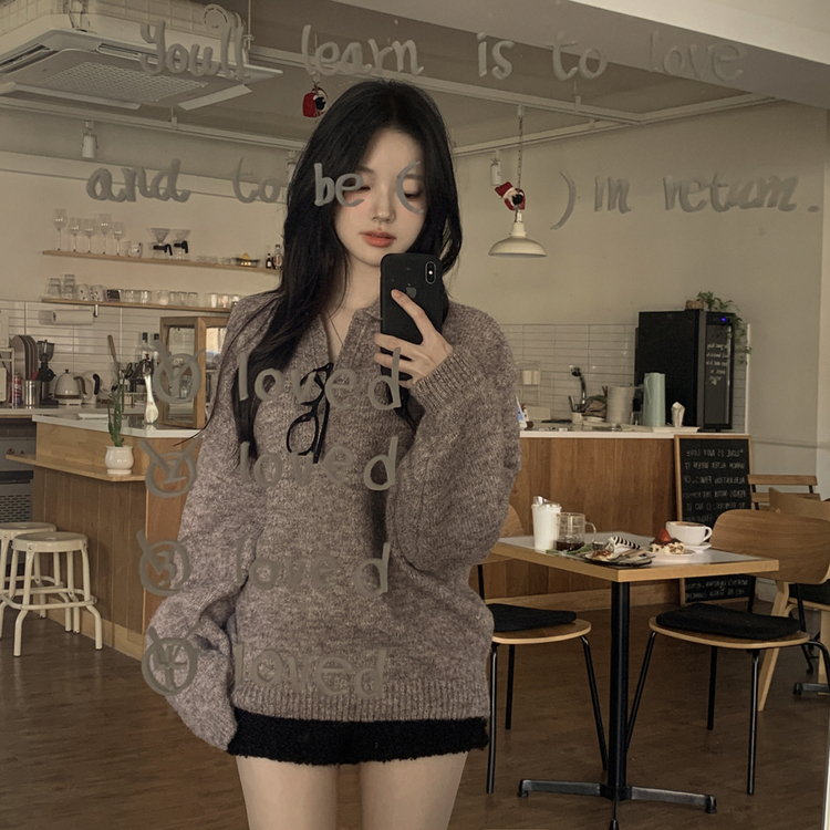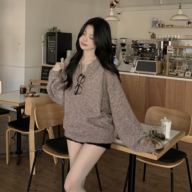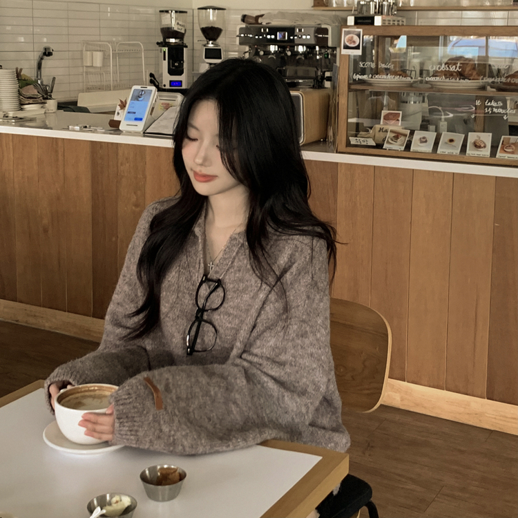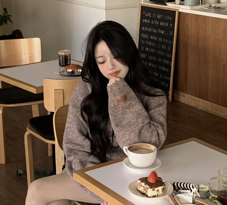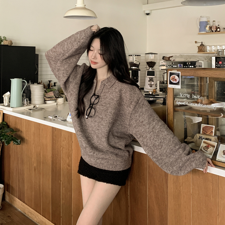 SNT34280 도톰따뜻 손목라벨 패치 보카시 오버핏 카라넥 아방핏 벌룬니트 빅사이즈 체형커버