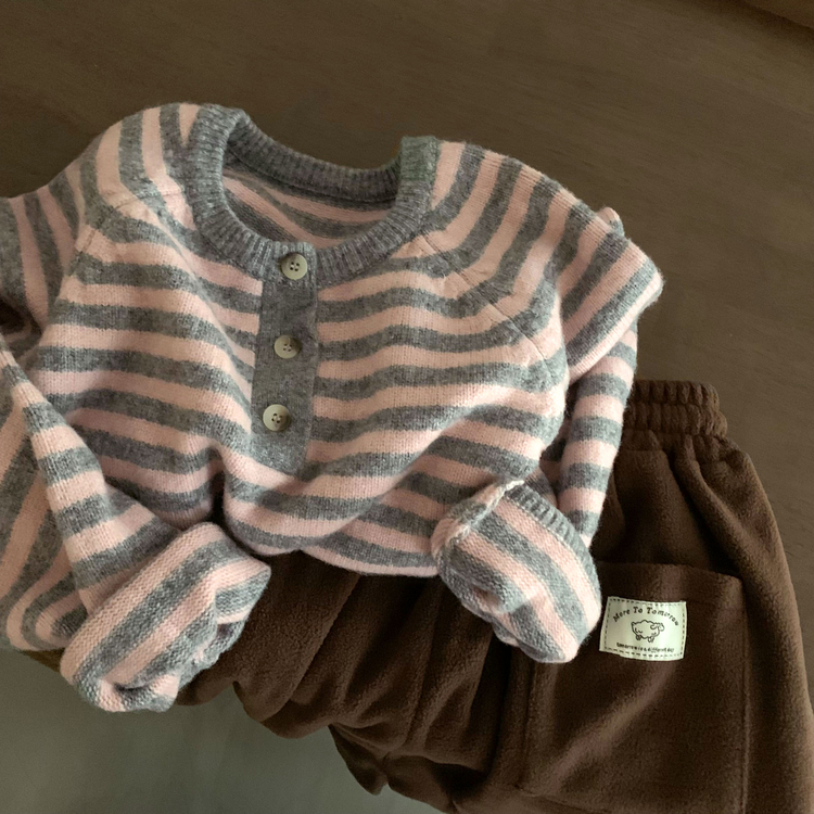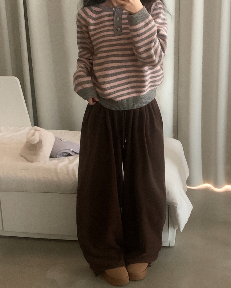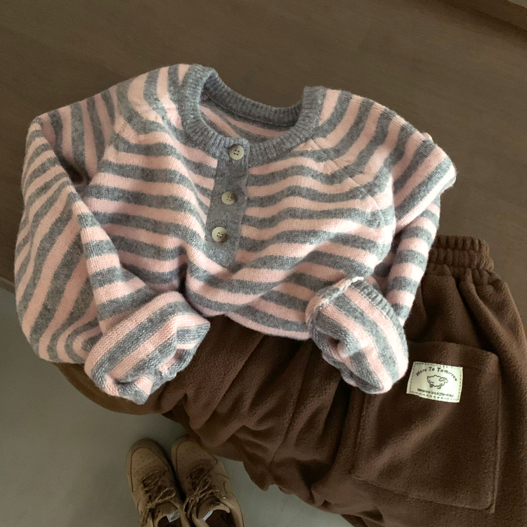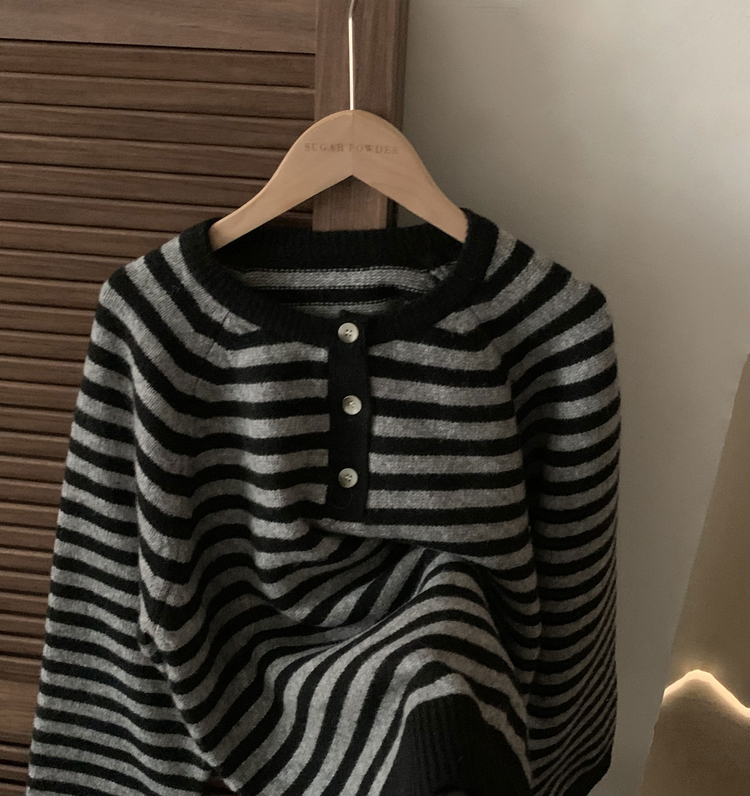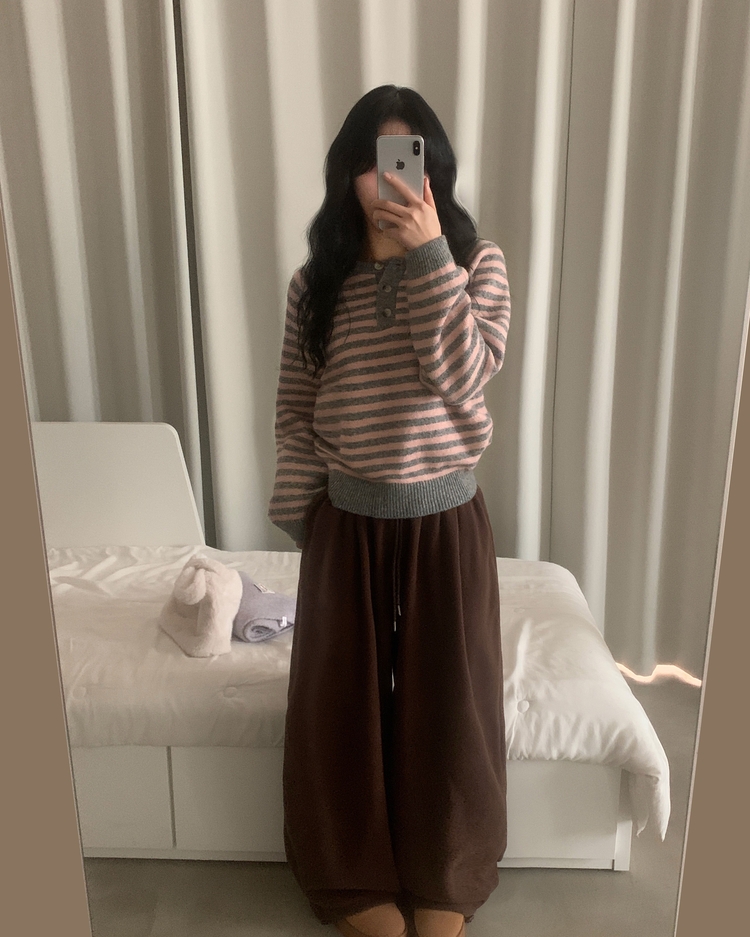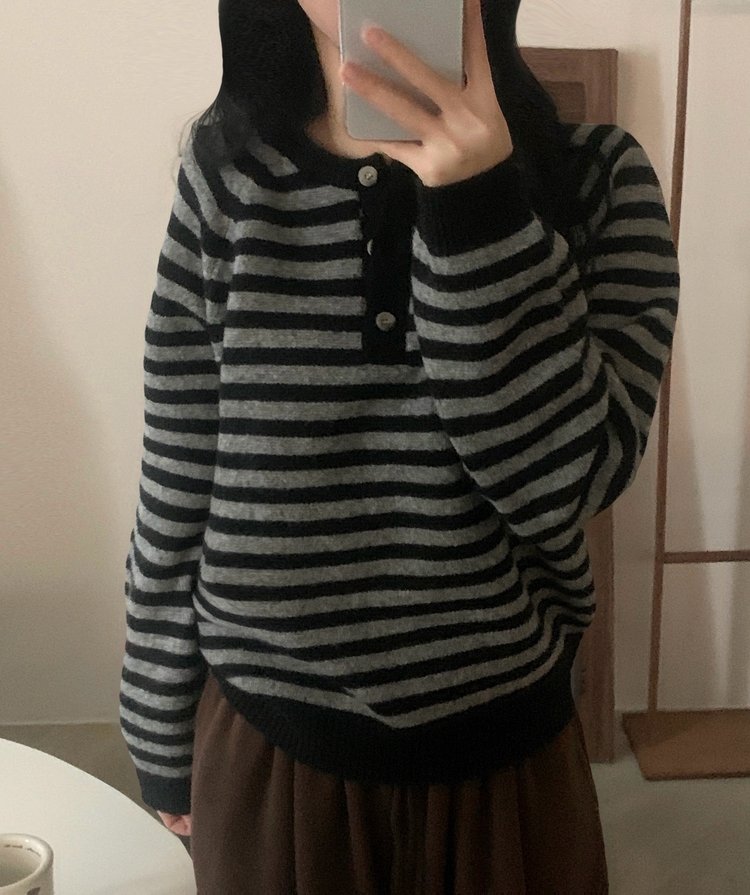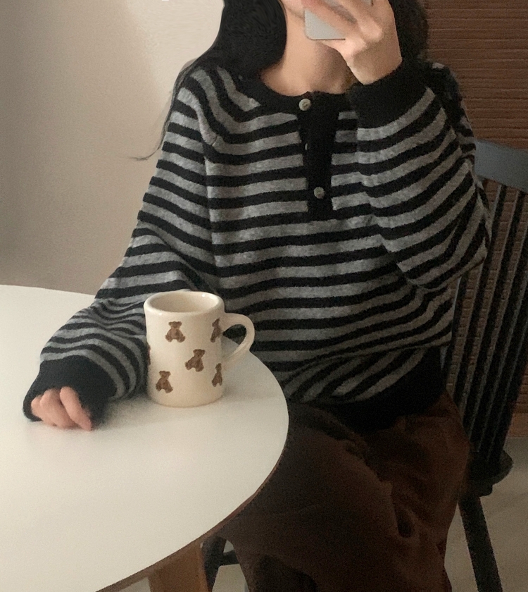 SNT34316 홀리 헨리넥 버튼 스트라이프 긴팔 울니트