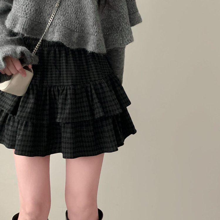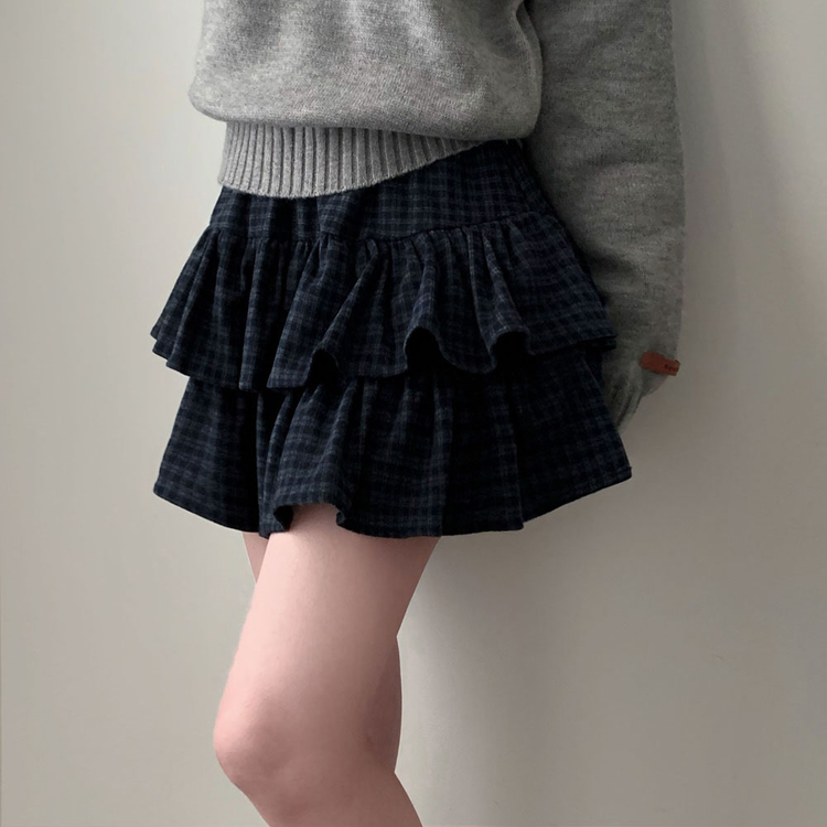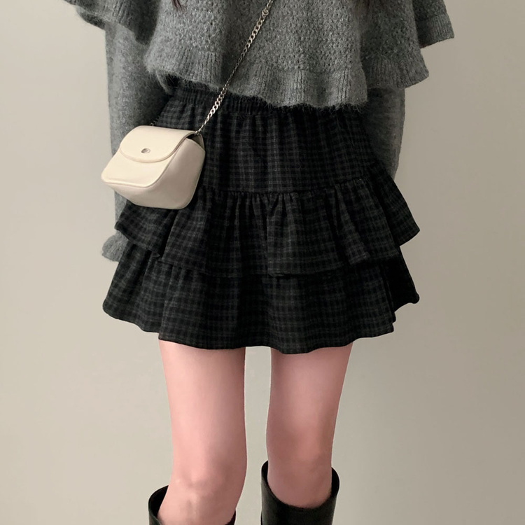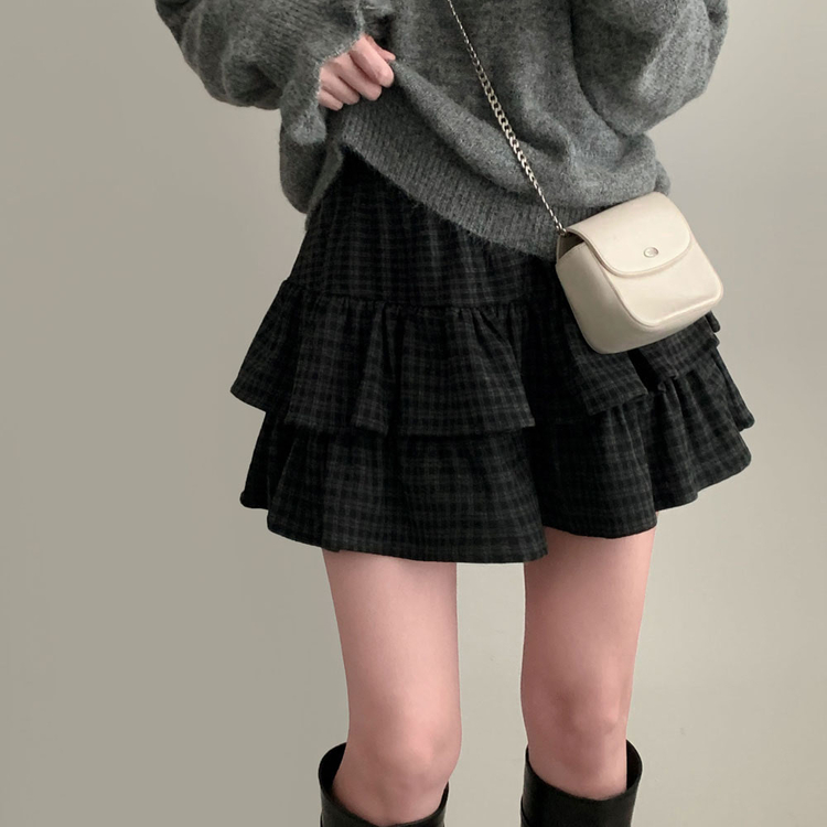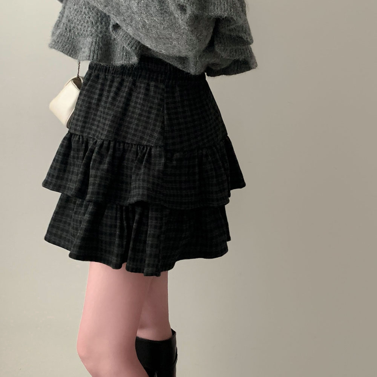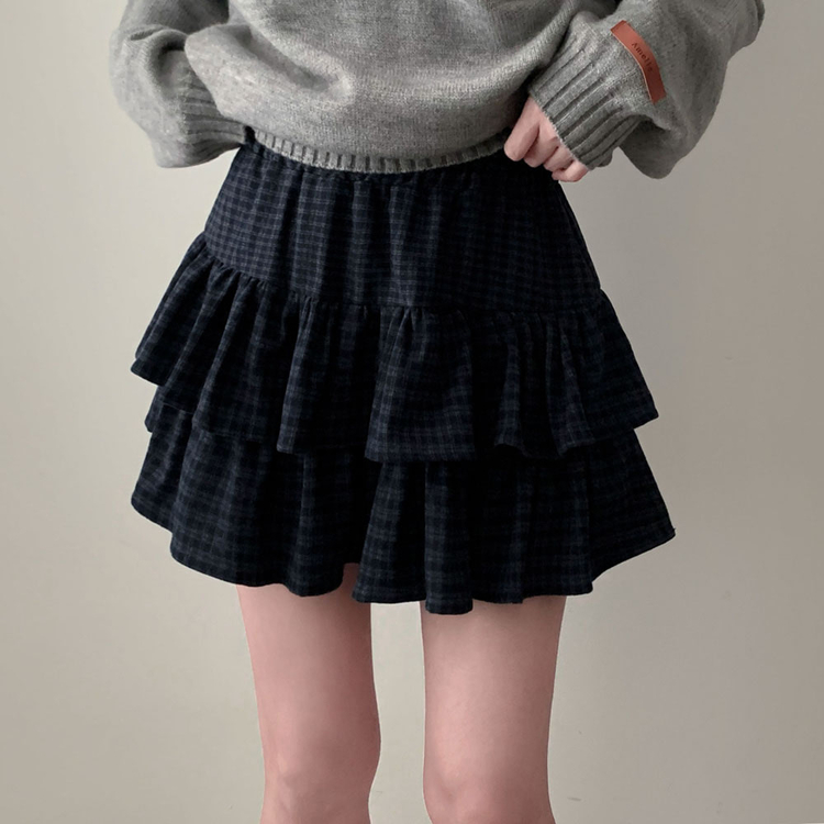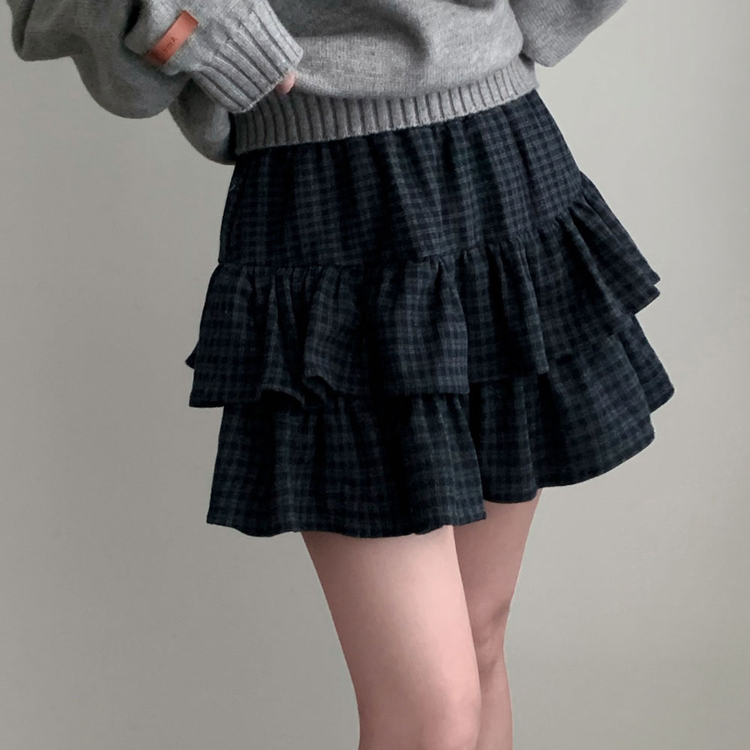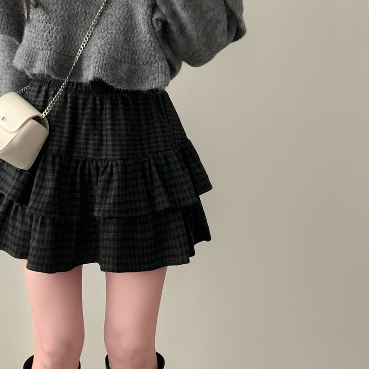 SSK25459 겨울에도 러블리함을 포기못한다면톤다운 분위기 체크 모직 캉캉 미니 밴딩 스커트