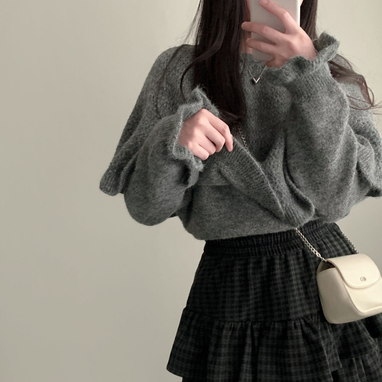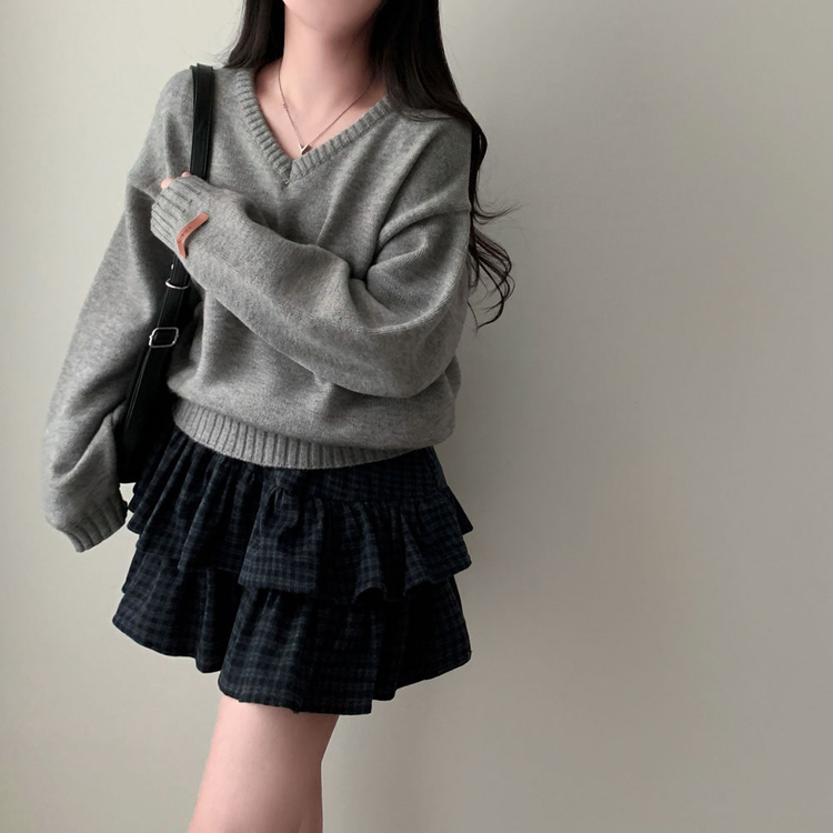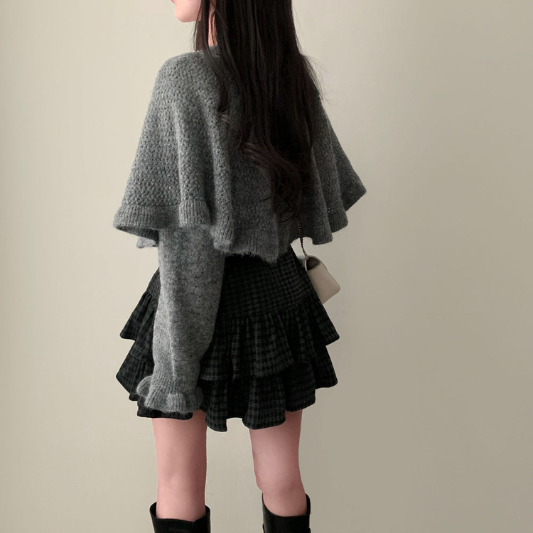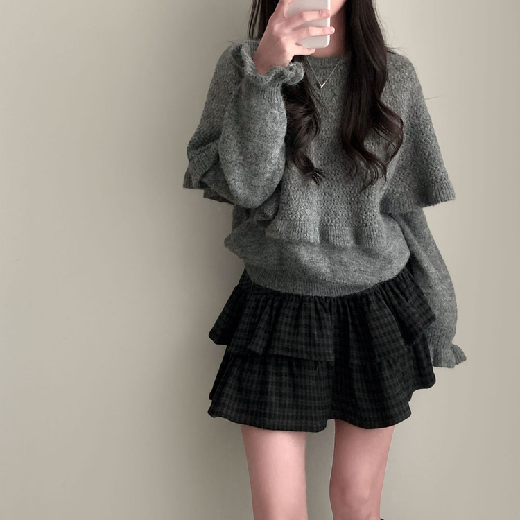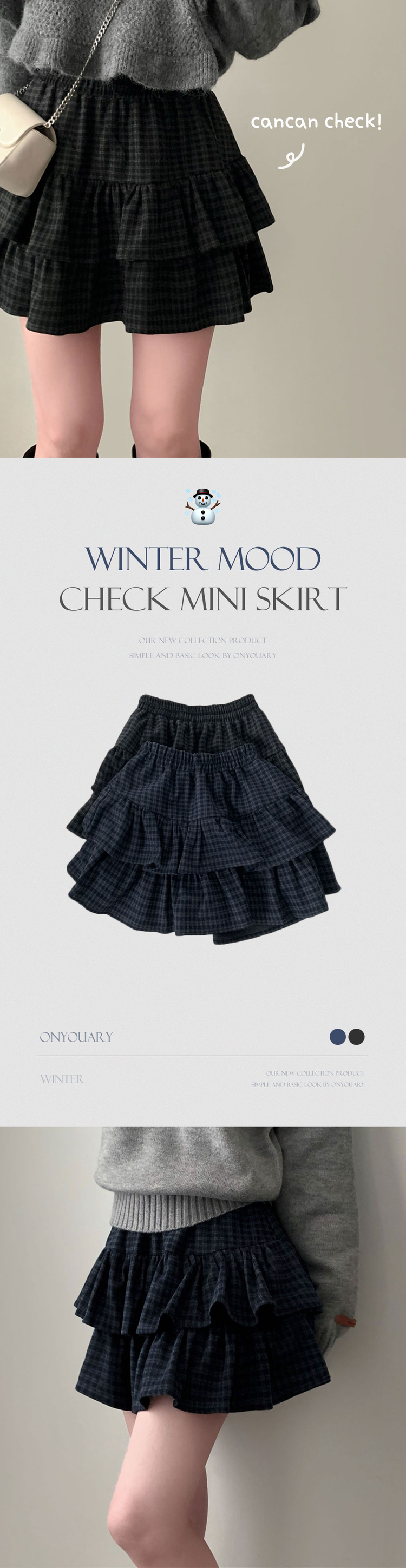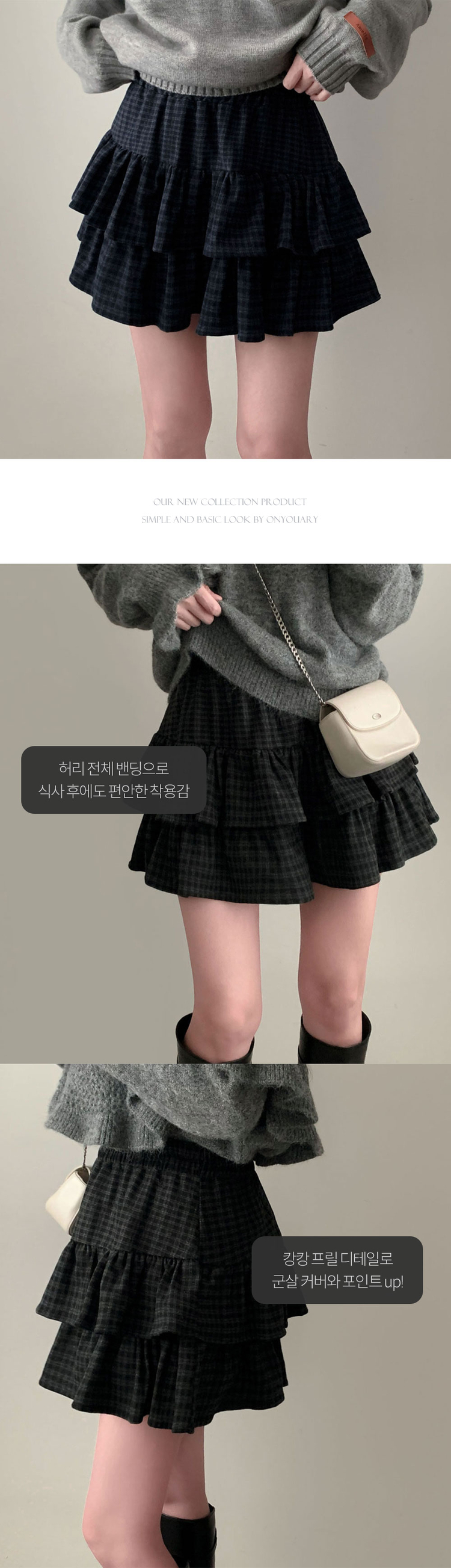 SSK25459 겨울에도 러블리함을 포기못한다면톤다운 분위기 체크 모직 캉캉 미니 밴딩 스커트