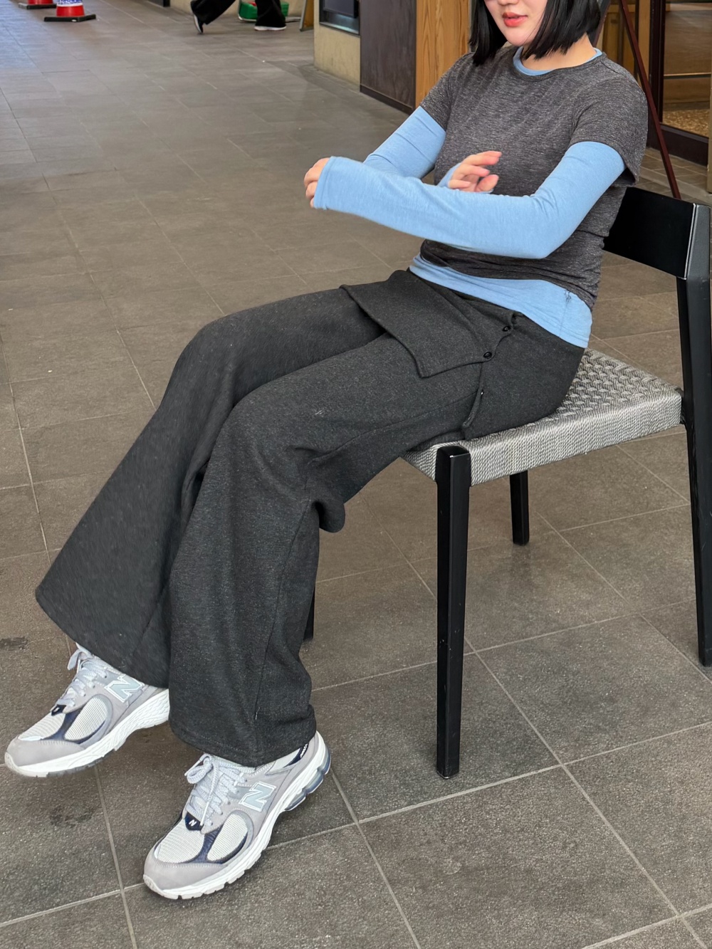 STS74227 톤배색 라운드 레이어드 티셔츠